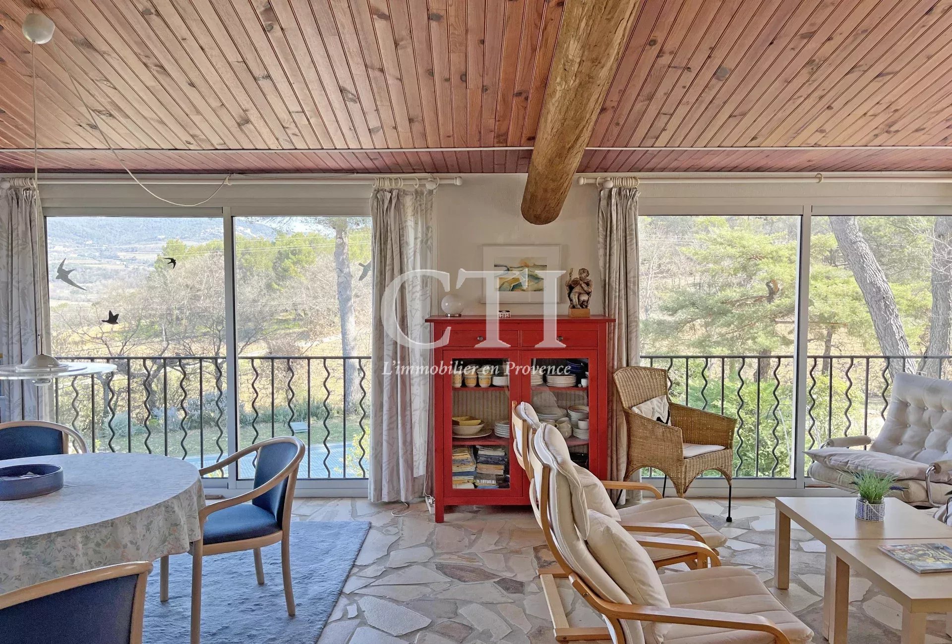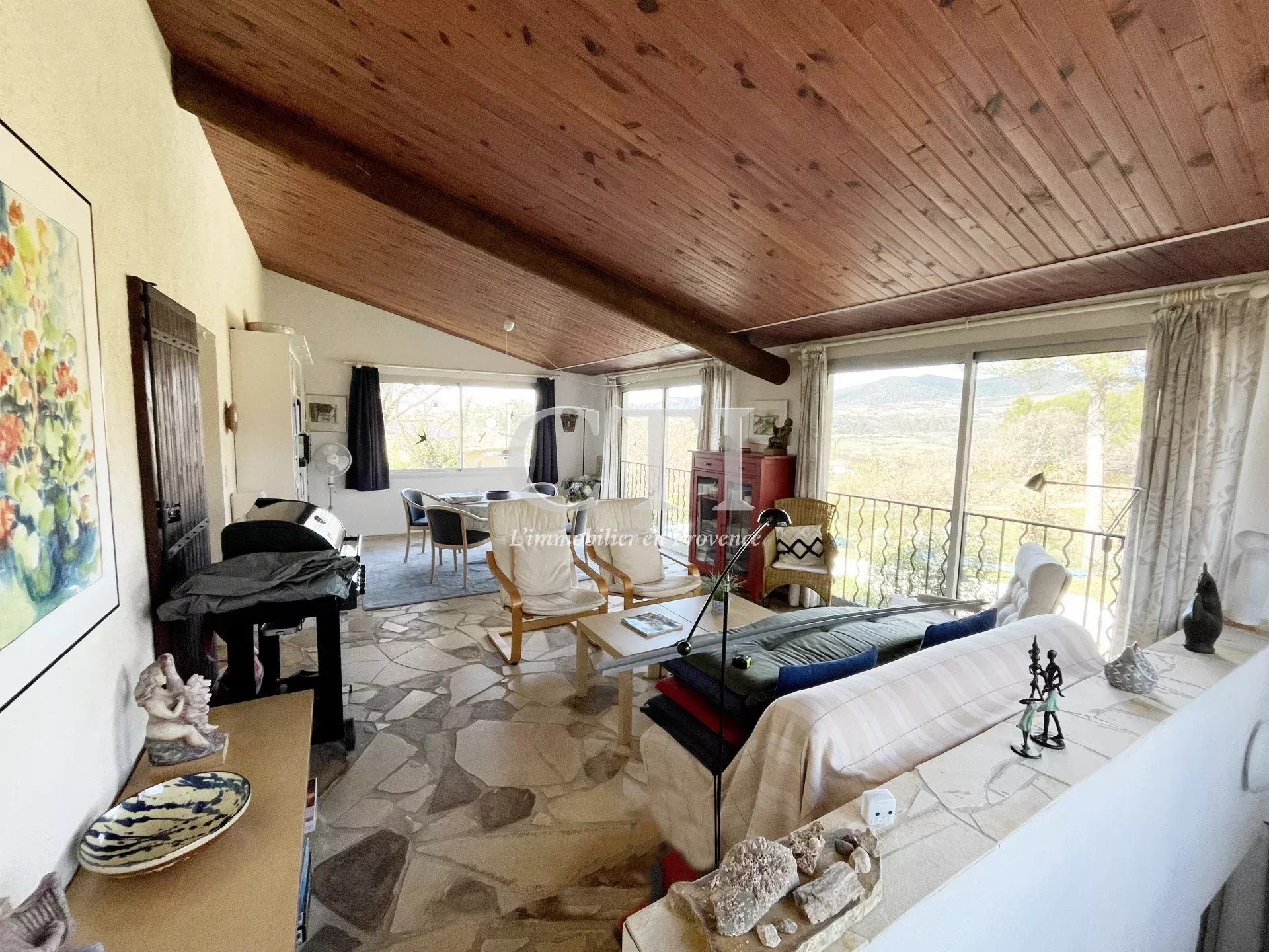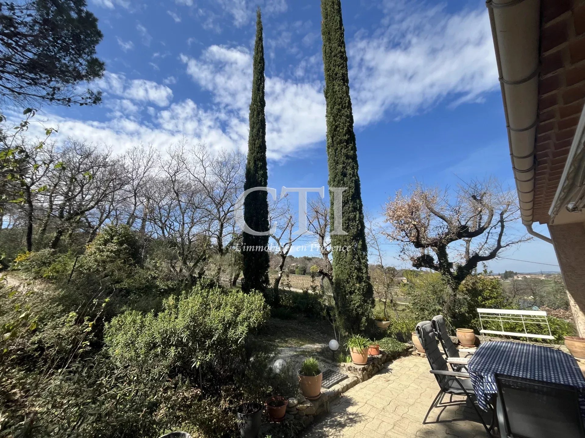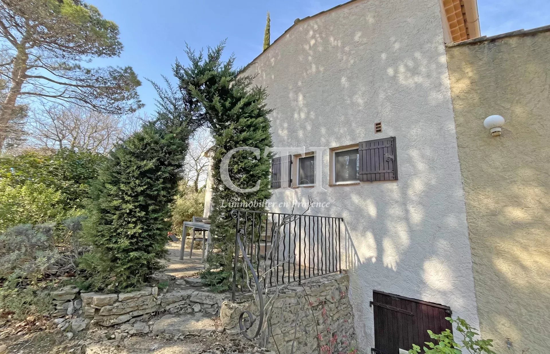 Exclusivité - Située à flanc de colline avec une très jolie vue sur les collines et villages environnants, cette charmante villa est implantée sur un terrain de 1504m² arboré et dotée d'un espace piscine.