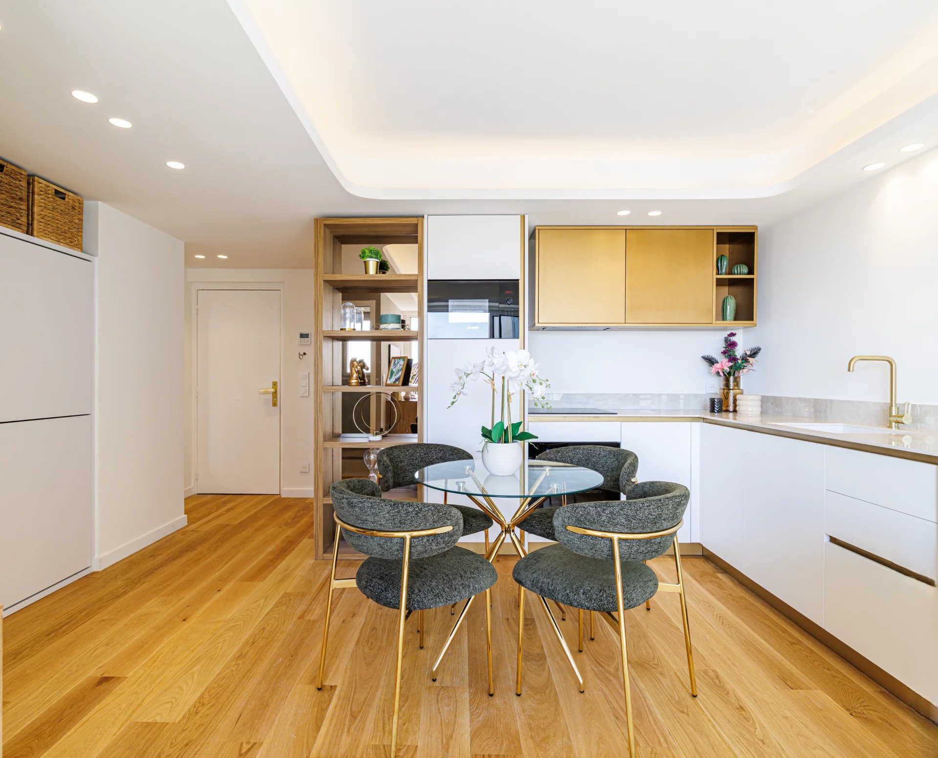 Au sein d’une résidence de standing, en étage élevé, ce bien entièrement rénové séduit par la qualité de ses prestations et de ses matériaux haut de gamme.