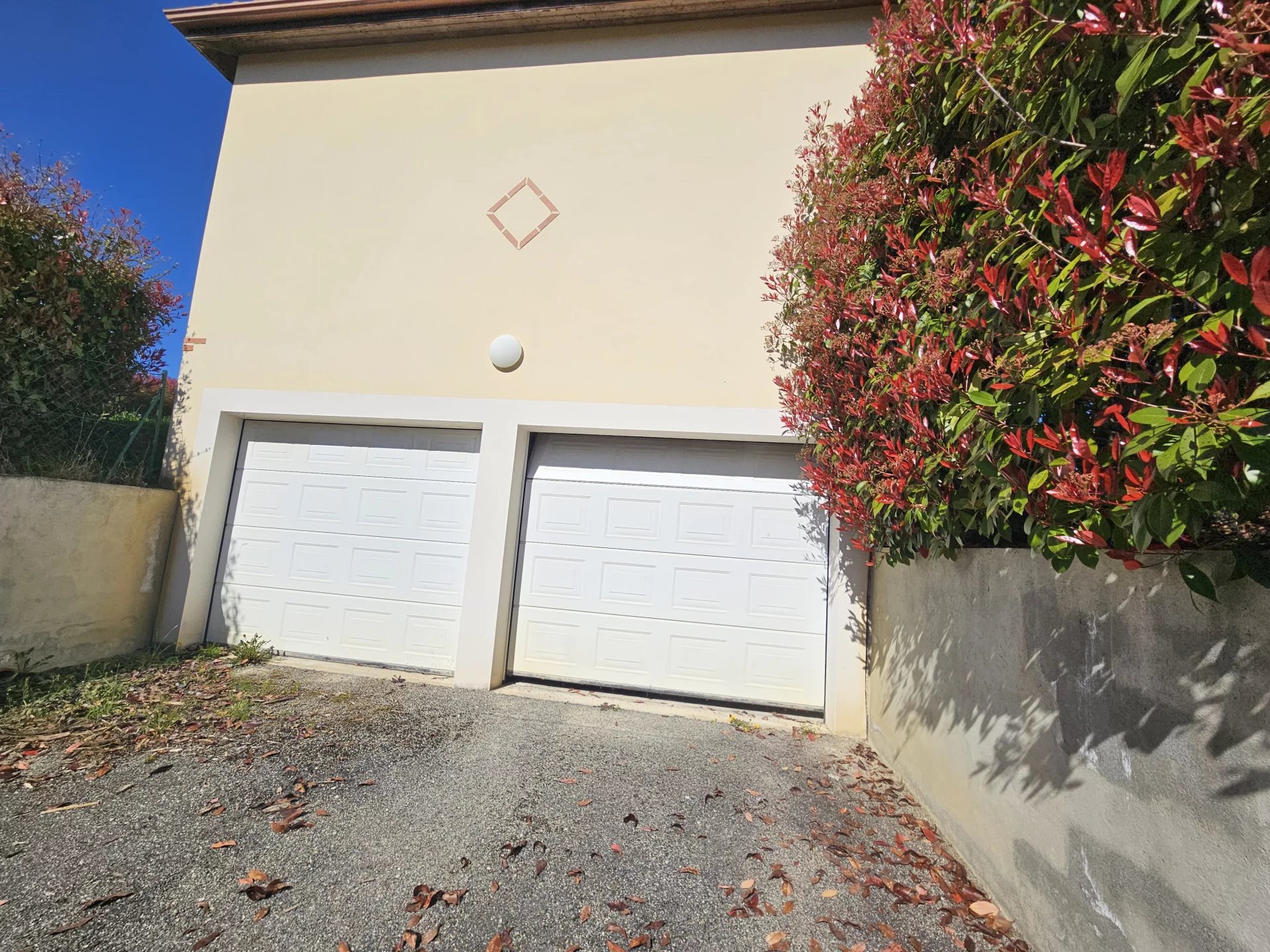 Le sous-sol, accessible directement depuis la buanderie, abrite un grand garage double avec porte électrique, offrant un espace de stationnement et de rangement très appréciable.
