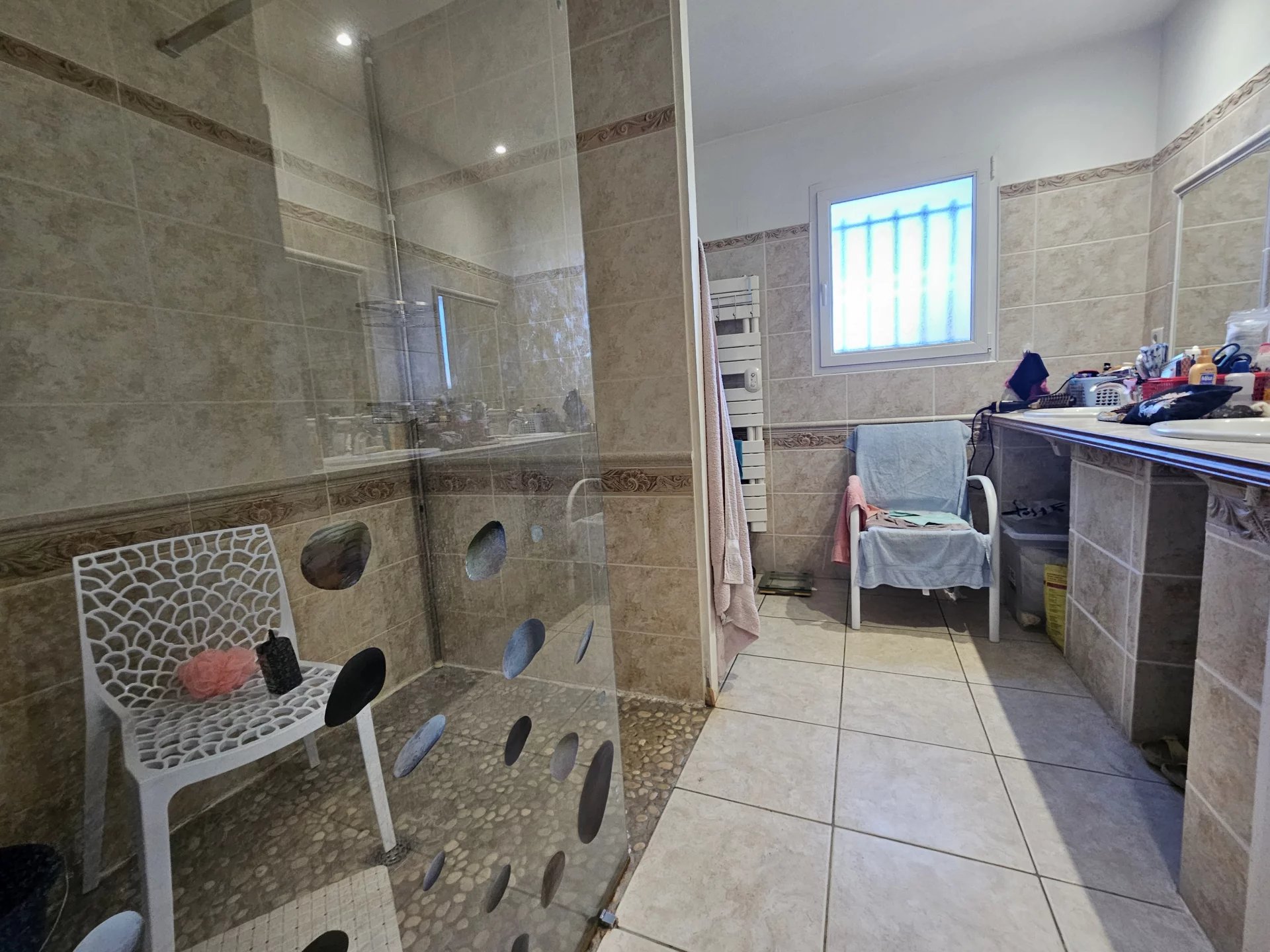 Le rez-de-chaussée permet également une vie de plain-pied grâce à une spacieuse chambre avec son dressing attenant, une seconde chambre confortable, ainsi qu’une grande salle de bain équipée d’une douche à l’italienne, d’une double vasque et d’un bidet. Des toilettes indépendantes avec lave-mains complètent ce niveau.