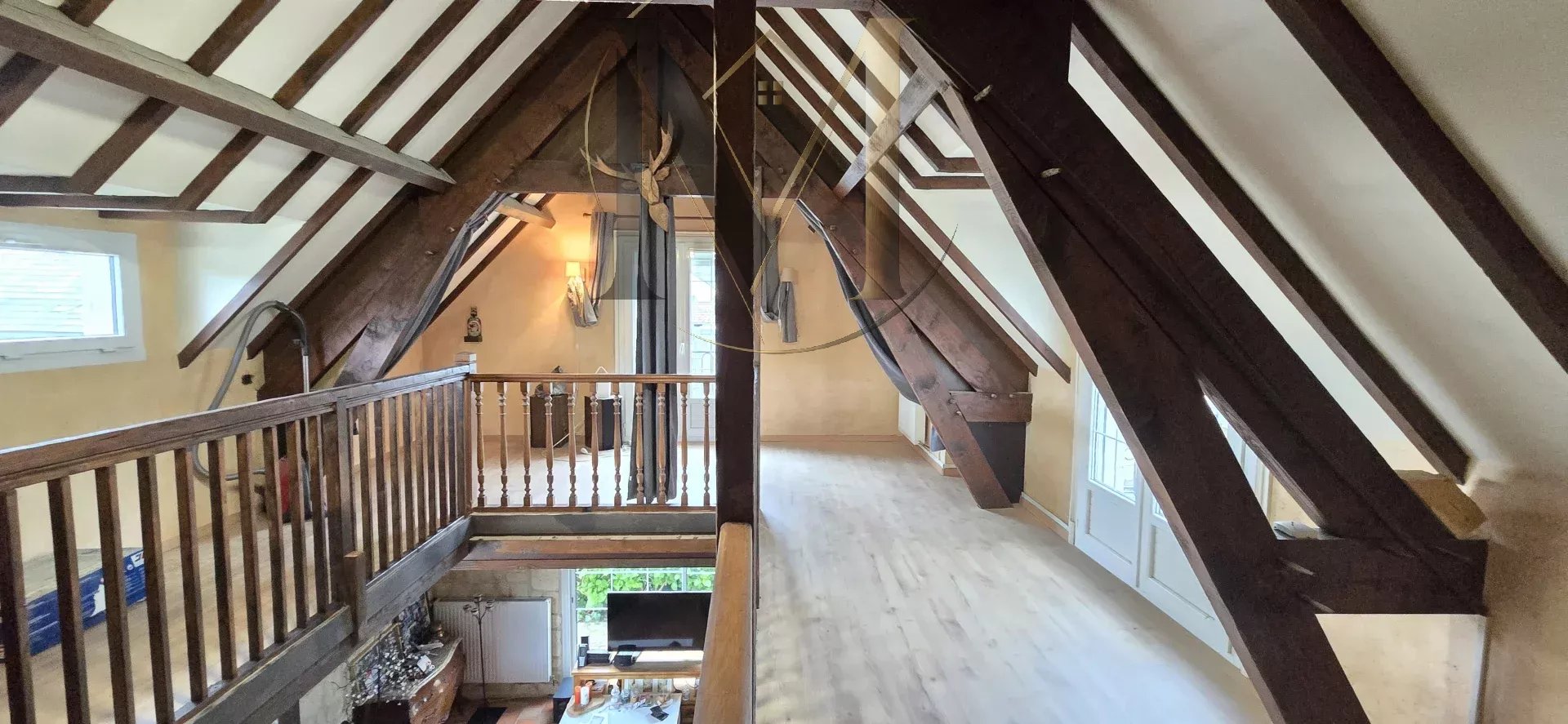 Dès l’entrée, vous serez séduits par une entrée majestueuse ouvrant sur un espace de vie d’environ 60 m² avec séjour cathédrale et mezzanine, baigné de lumière.