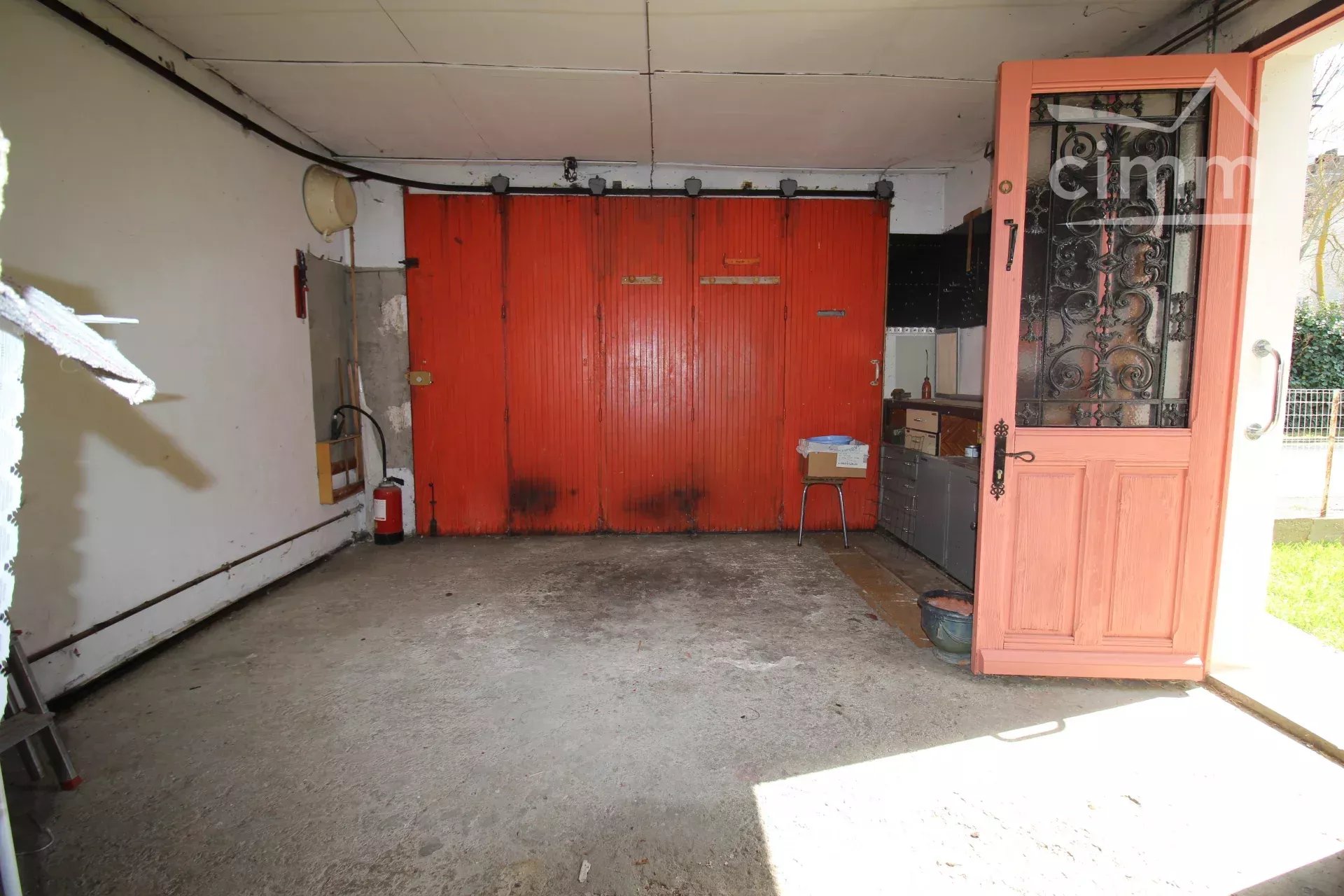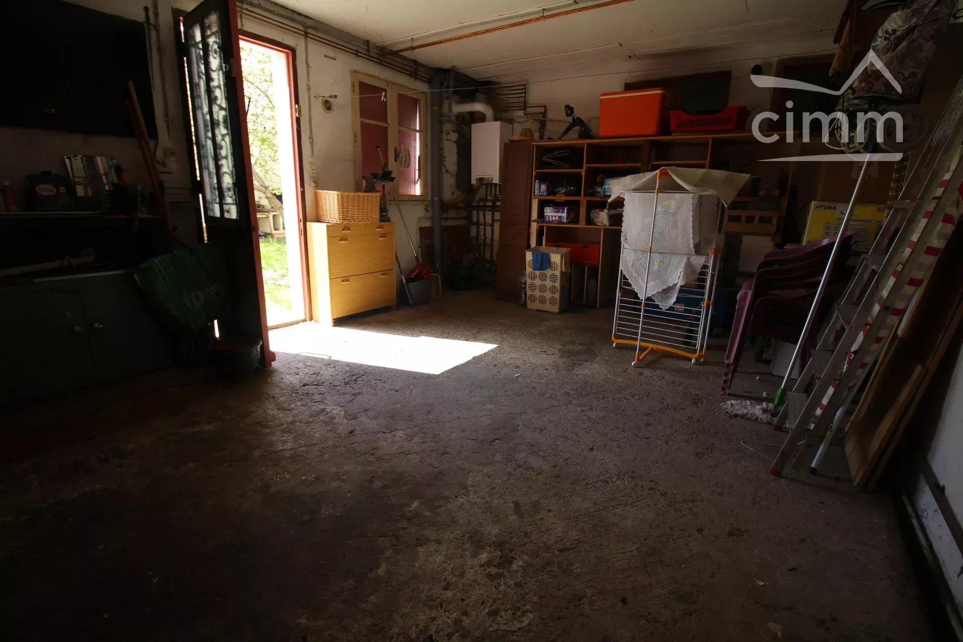 Le salon donne sur un jardin de 120m² entièrement clôturé, qui dispose d'un cabanon de 7,5m².