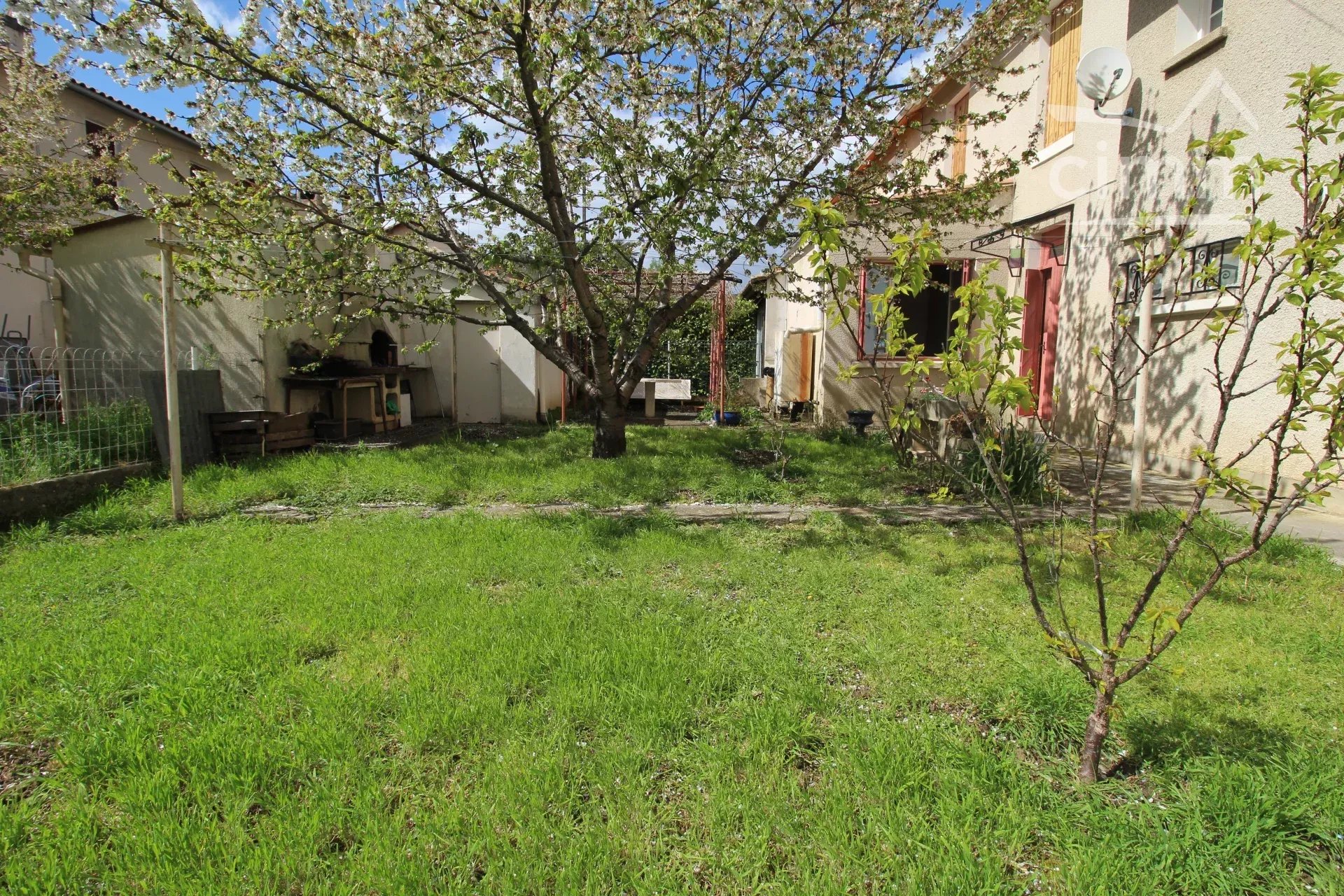A vendre une maison de 94 m² à rénover avec un jardin.