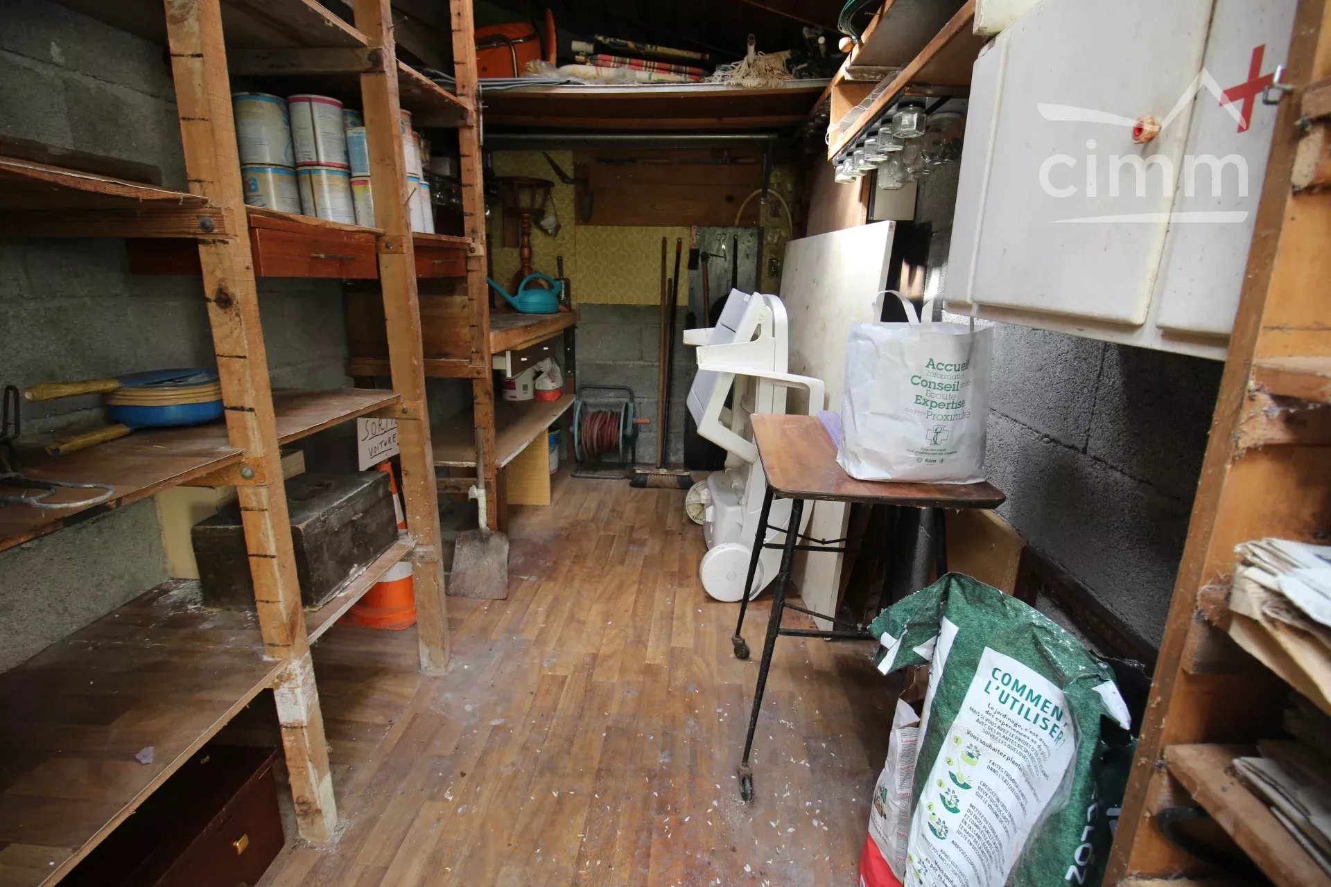 Au rez de chaussée se trouvent un salon de 23m², une cuisine et une arrière cuisine, ainsi qu'une salle d'eau WC. Un garage de 23m² termine le rez de chaussée.