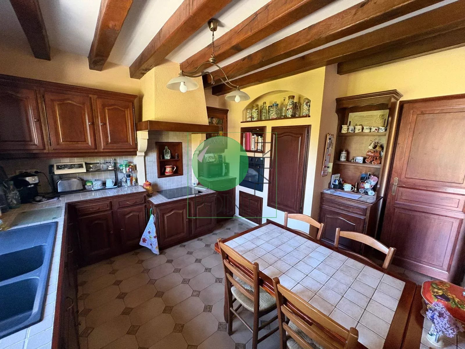 De plus : terrasse arrière, store-banne devant et derrière, éclairage extérieur automatique, abri bois sur dalle béton, portail motorisé, grand garage pour 2 véhicules, atelier, buanderie, pièce fermée et cave en terre sous la terrasse.
