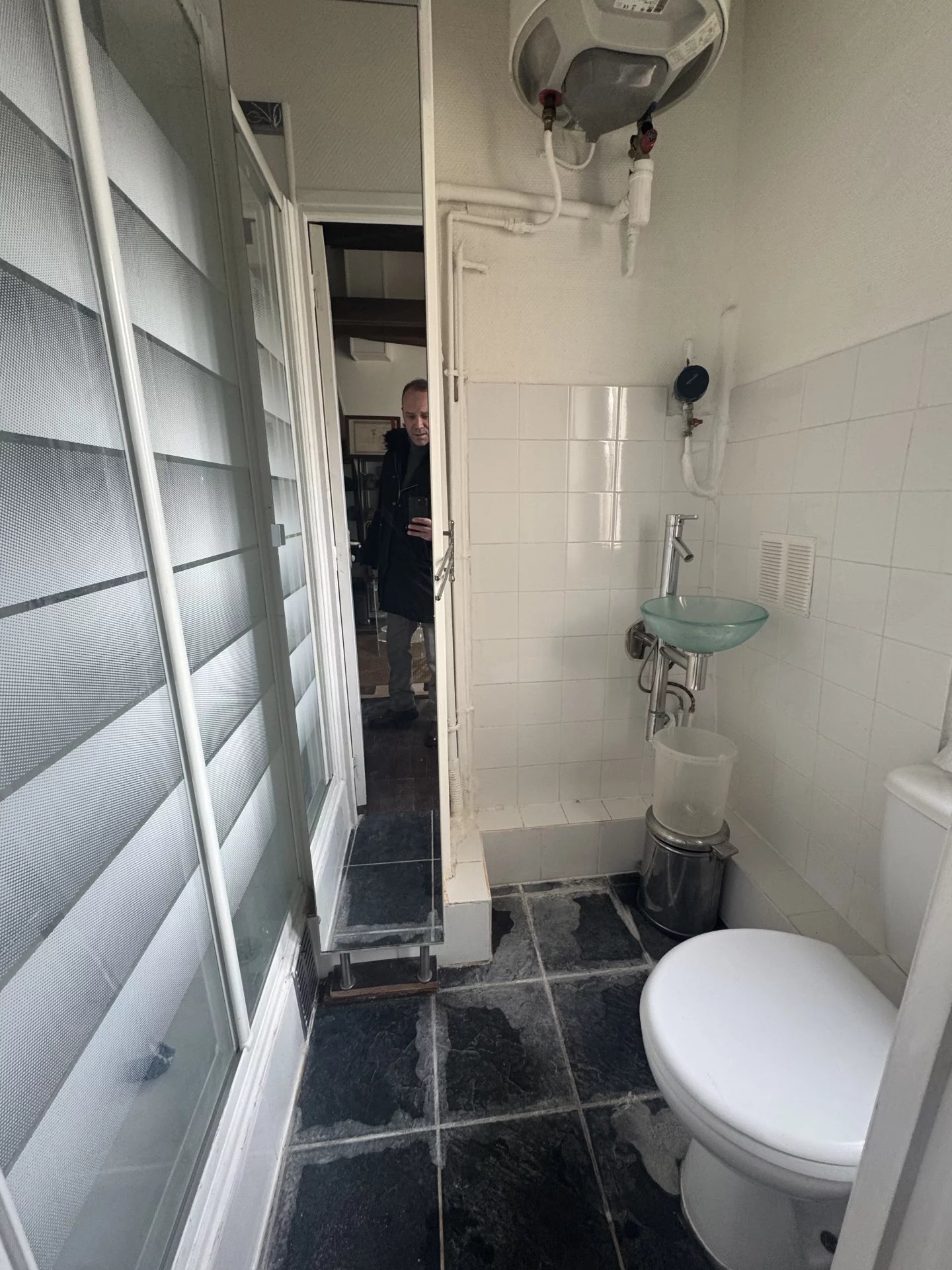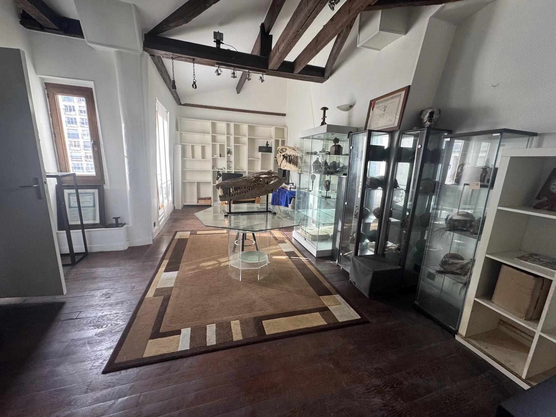 Au 6eme et dernier étage avec ascenseur dans un immeuble en pierre de taille, un appartement de trois pièces de 52 m² Loi Carrez, 54m² au sol, composé d'un salon avec cuisine ouverte, deux chambres séparées, une salle d'eau avec WC. Belle hauteur sous plafond. Traversant. Cuisine à aménager. Une cave.