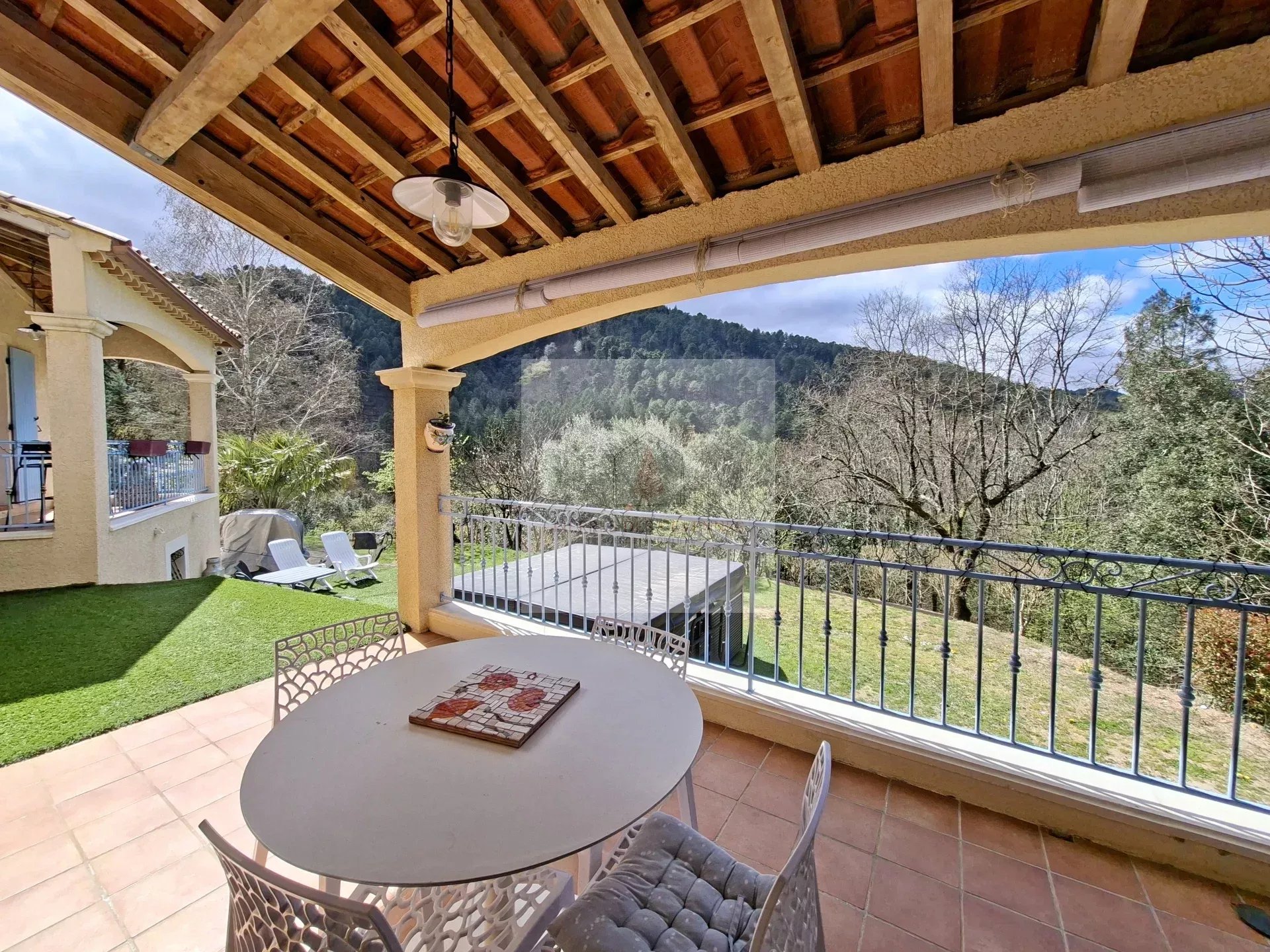 Edifiée sur un terrain boisé et clôt de 8225 m² en 2003, villa en excellent état de 127m², habitable immédiatement. Elle se compose d’un cuisine équipée neuve et son cellier, ouverte sur un séjour avec son poêle à bois, une grande entrée un bureau, 2 chambres salle de bains et toilettes, à l’étage une suite parentale. En rez de jardin accès au garage et tout le sous-sol de 135 m². Cette belle villa lumineuse dispose de plusieurs terrasses en Est avec barbecue et en ouest avec sa vue magnifique, et son jacuzzi de 7 places, le terrain est très bien entretenu, clôt et arboré. Elle est situé dans le village de Sénéchas au calme, à votre disposition pour planifier une visite.