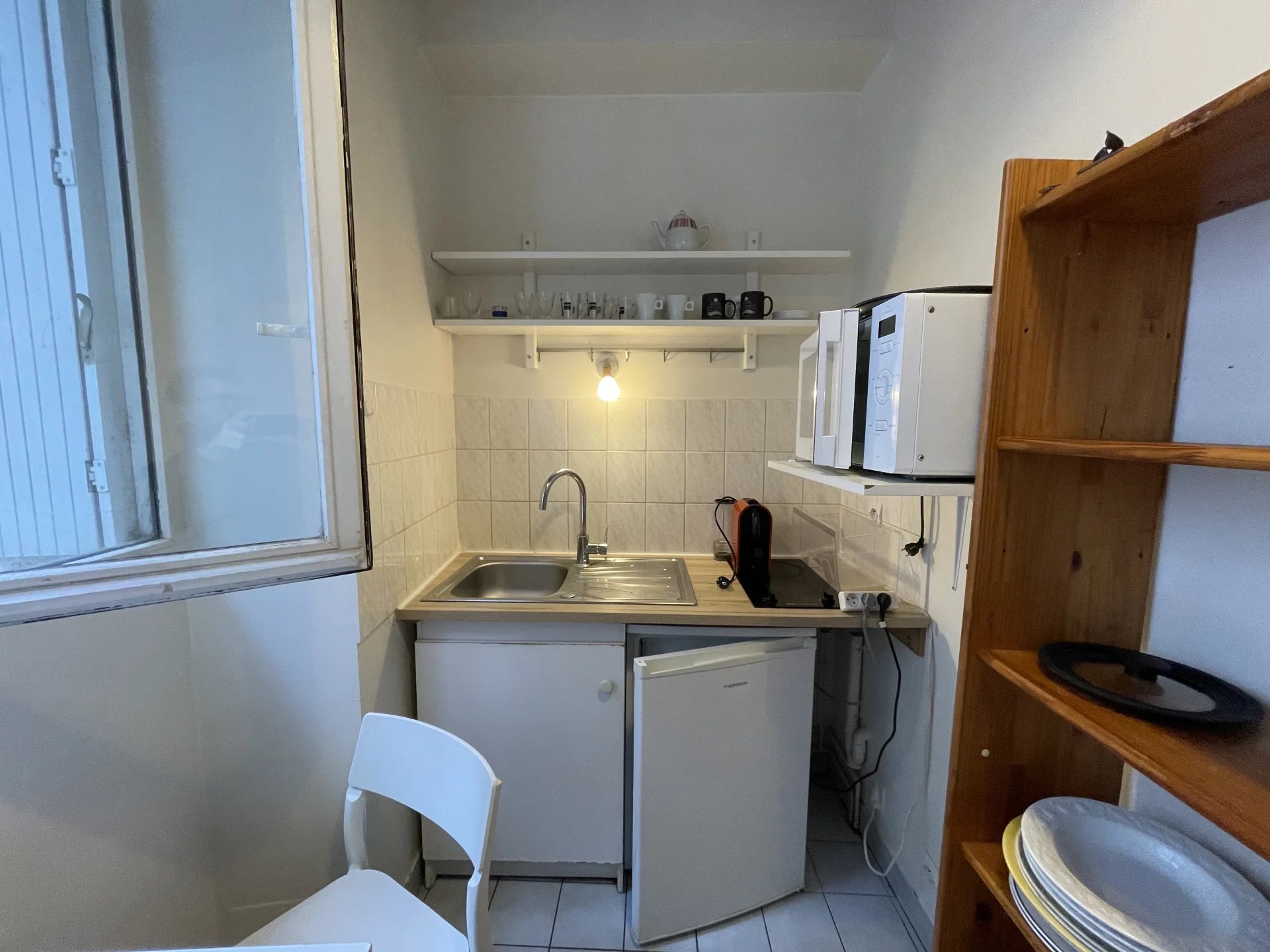 TOURS CENTRE - PLACE CHATEAUNEUF Dans un petit immeuble en retrait de la place, découvrez ce charmant appartement exposé plein sud, offrant une belle luminosité et une vue sur une petite cour paisible ainsi que sur la place Châteauneuf. Loué meublé, il se compose d’une pièce principale aménagée avec un lit gigogne, un bureau et des espaces de rangement. Vous disposez d'une cuisine séparée aménagée et équipée, une salle d’eau avec WC et machine à laver. Un bien clair et particulièrement calme, idéal pour profiter d’un cadre de vie agréable en centre-ville. Loyer comprenant les charges de copropriété et l'eau froide Electricité individuelle A rajouter par mois, 7€ pour les ordures ménagères (FGI) Les informations sur les risques auxquels ce bien est exposé sont disponibles sur le site Géorisques : www.georisques.gouv.fr
