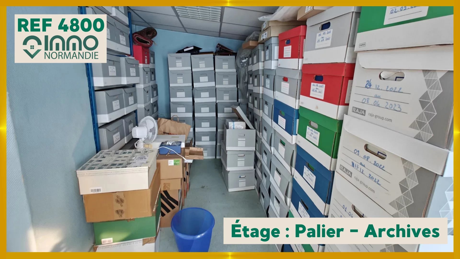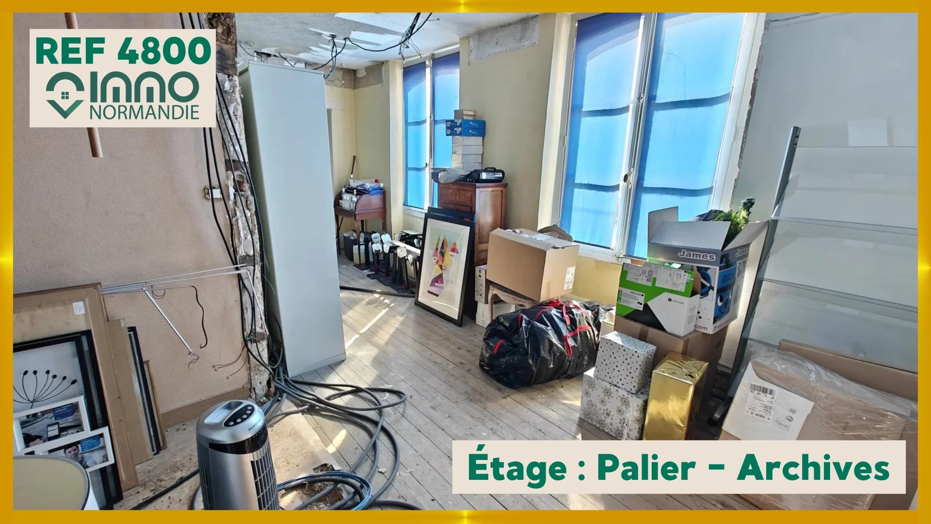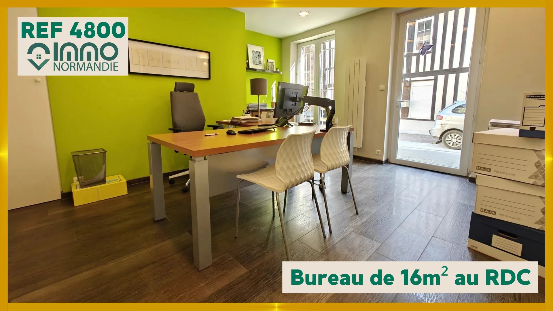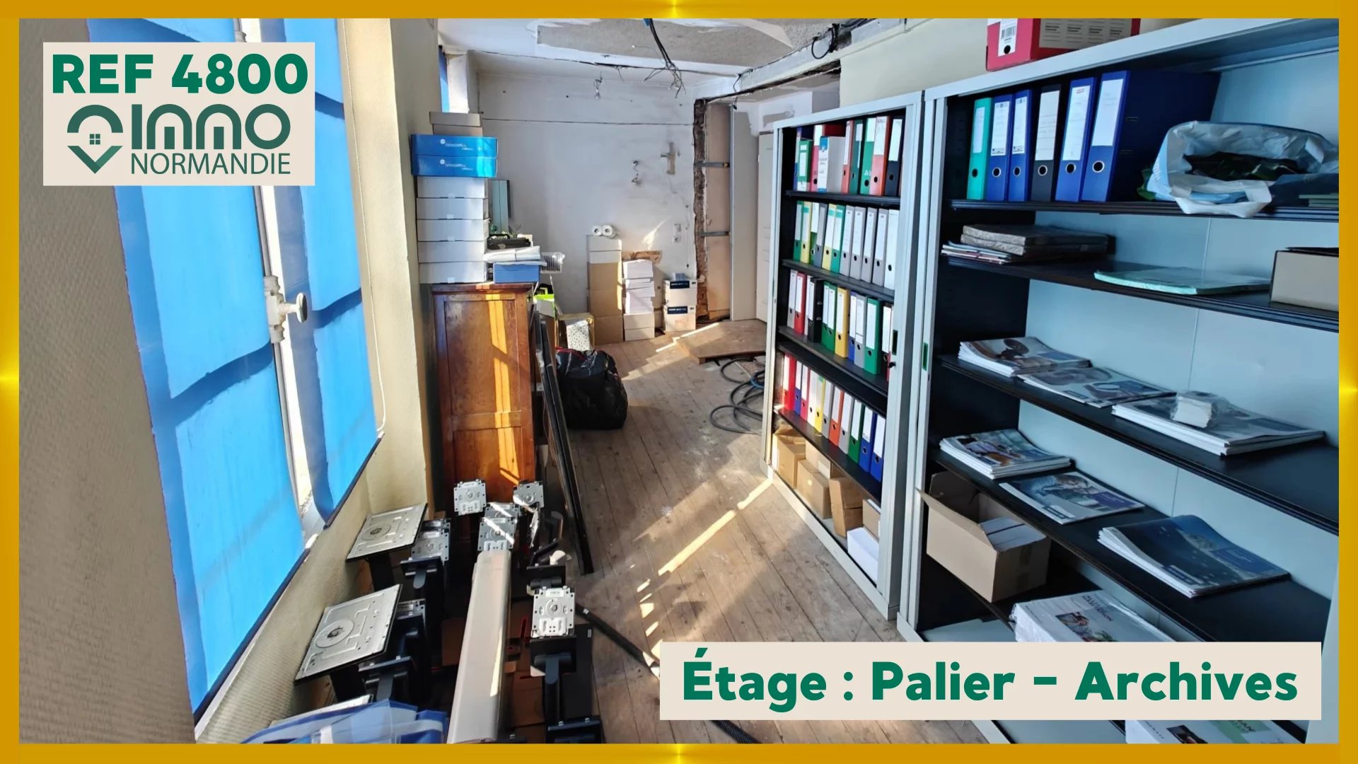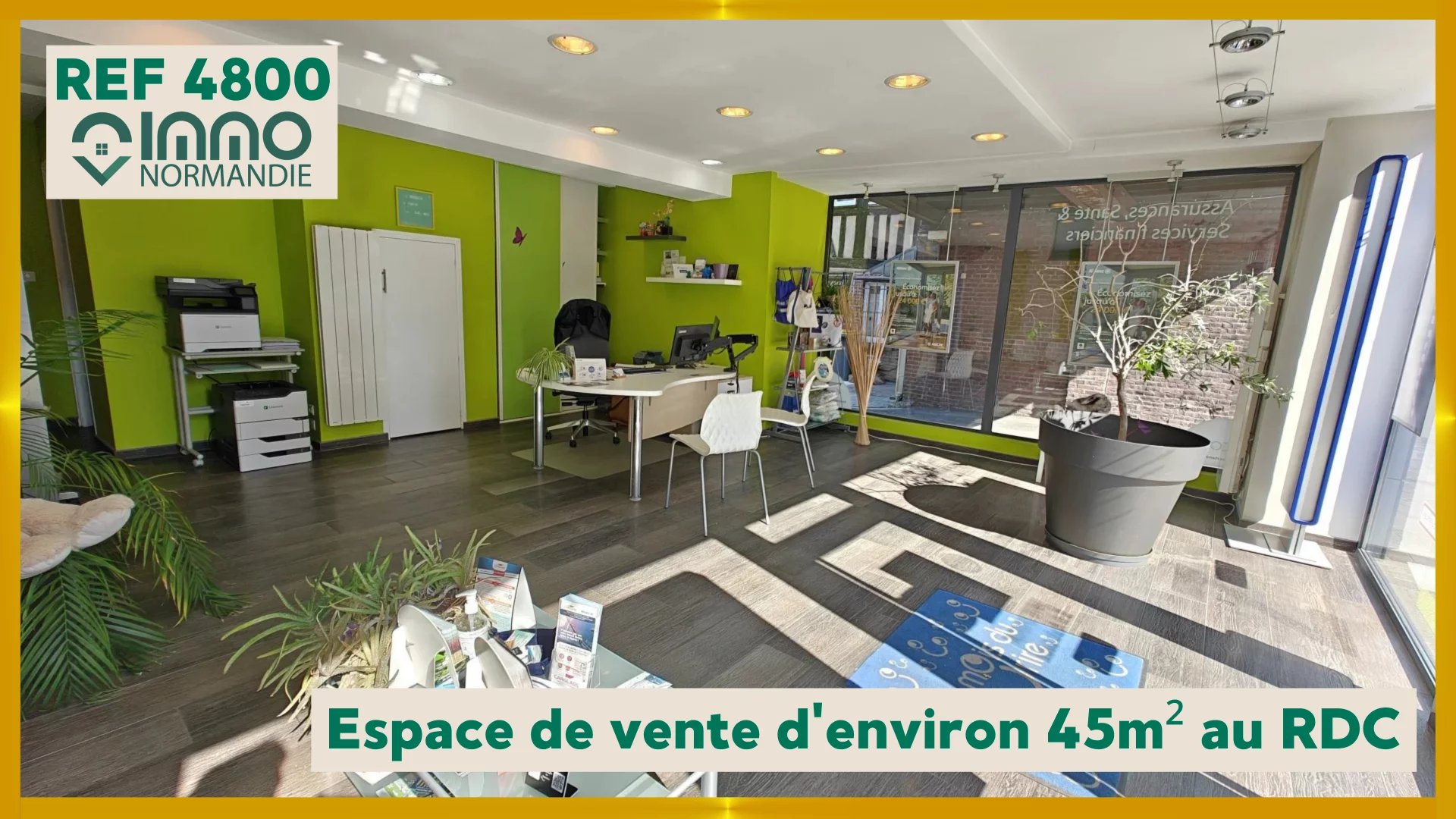 Local commercial BRIONNE : Idéalement situé dans la rue commerçante de la ville ! Au rez-de-chaussée : espace de vente d'environ 45m², bureau de 16m² et WC. A l'étage : palier, archive. Grenier en 2nd étage. Double vitrage, chauffage électrique, tout à l'égout. Local/remise indépendant.