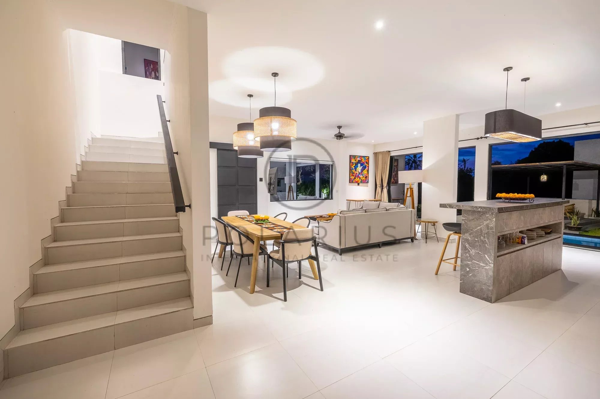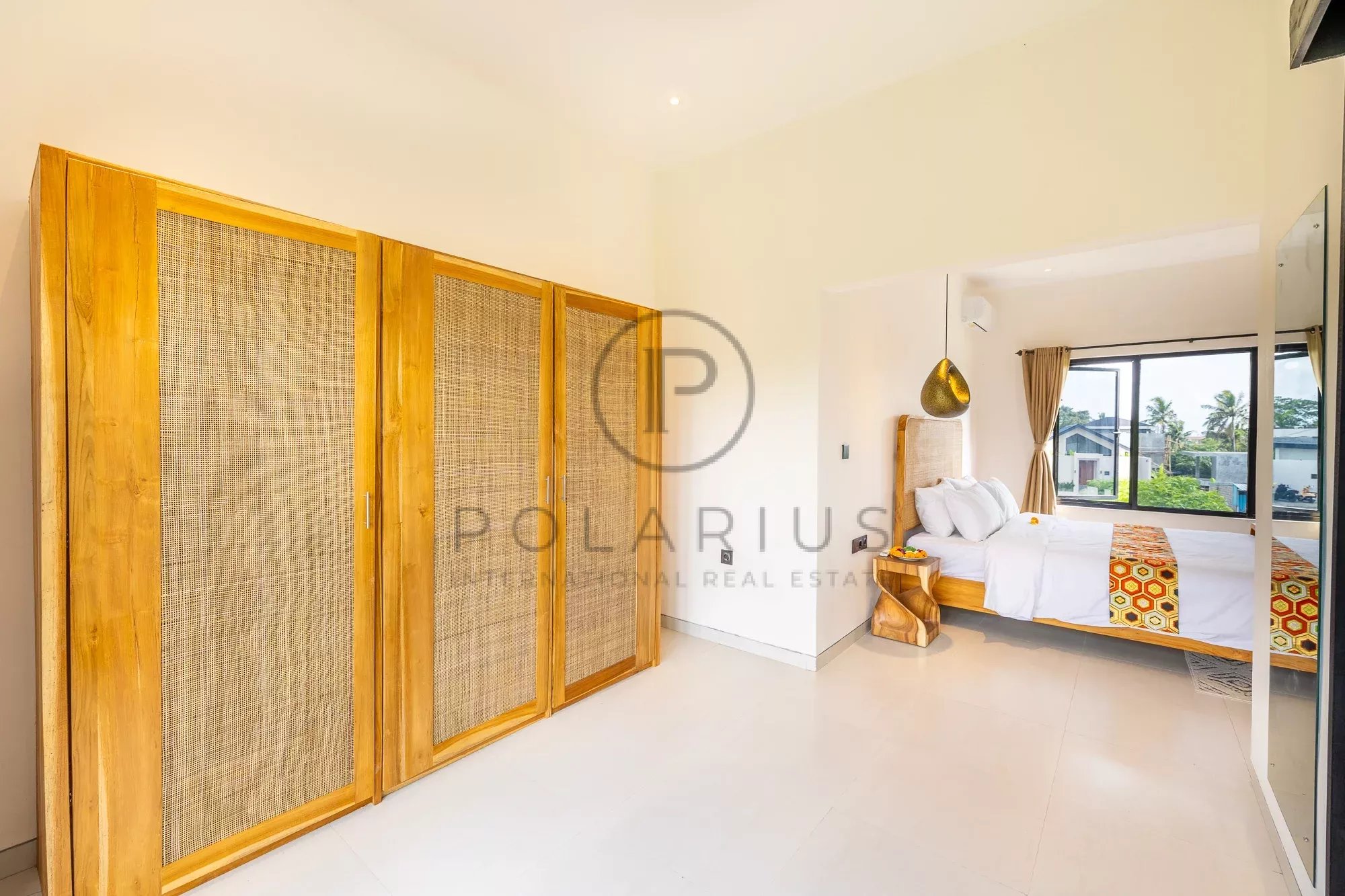 Questa splendida villa di design moderno si trova nel cuore di Canggu, una delle zone più richieste di Bali. Gli ambienti ampi e luminosi sono caratterizzati da un elegante stile contemporaneo e da finiture di pregio, offrendo il massimo comfort e una piacevole atmosfera. Il soggiorno open space si affaccia direttamente sulla piscina privata esterna, regalando una perfetta fusione tra l'interno e l'esterno grazie alle grandi vetrate scorrevoli.