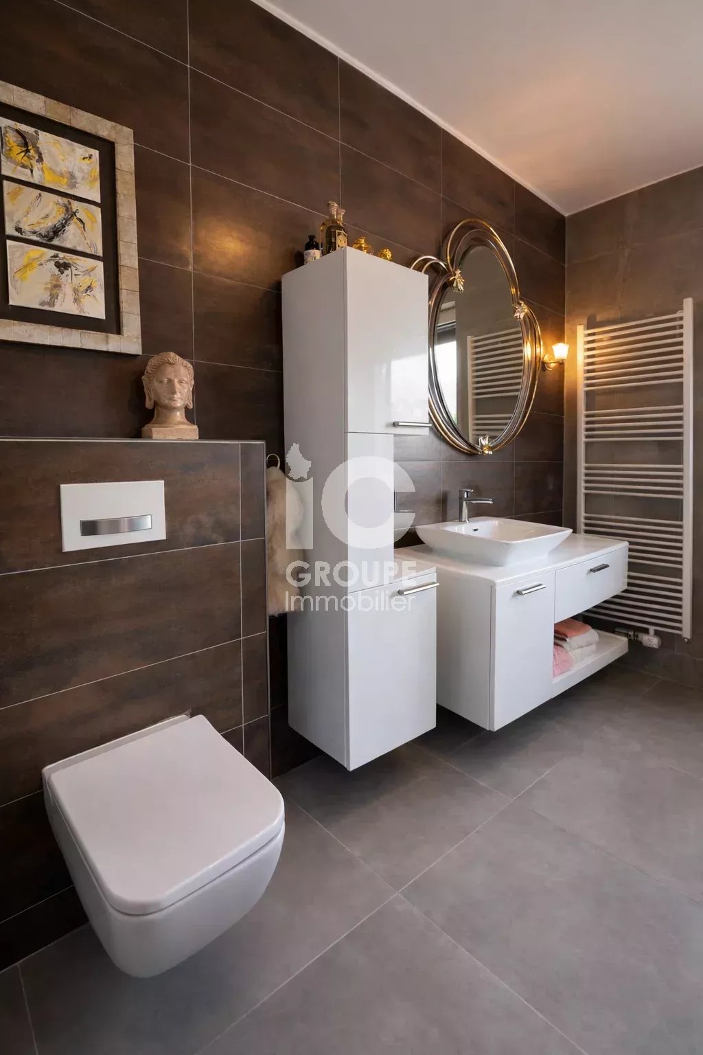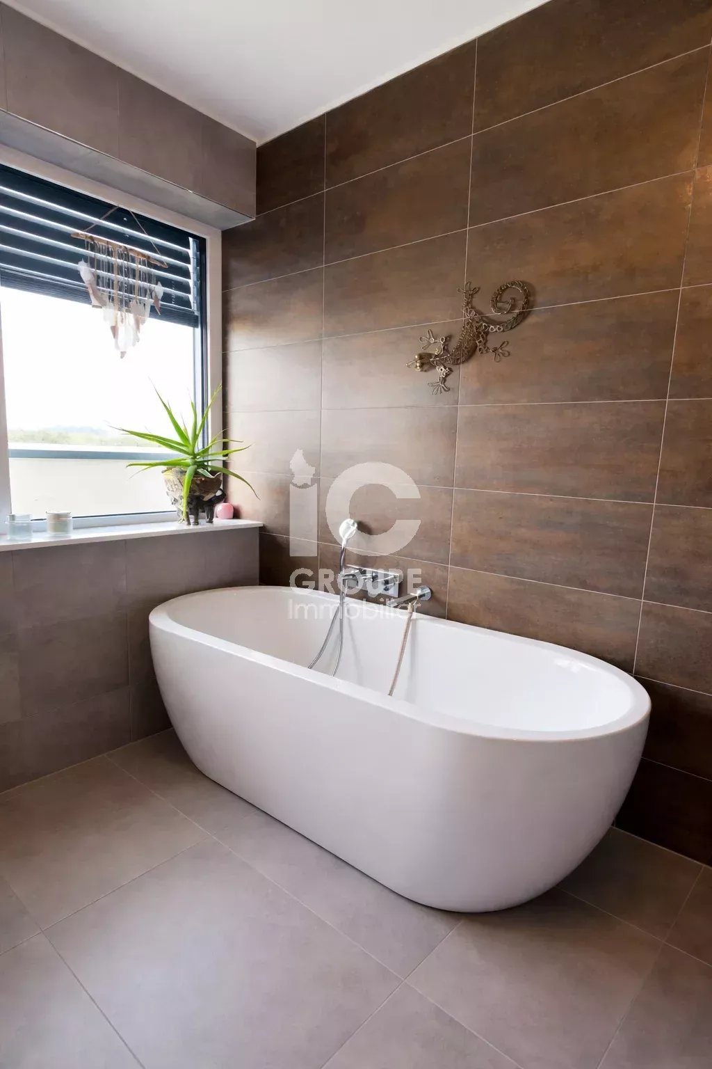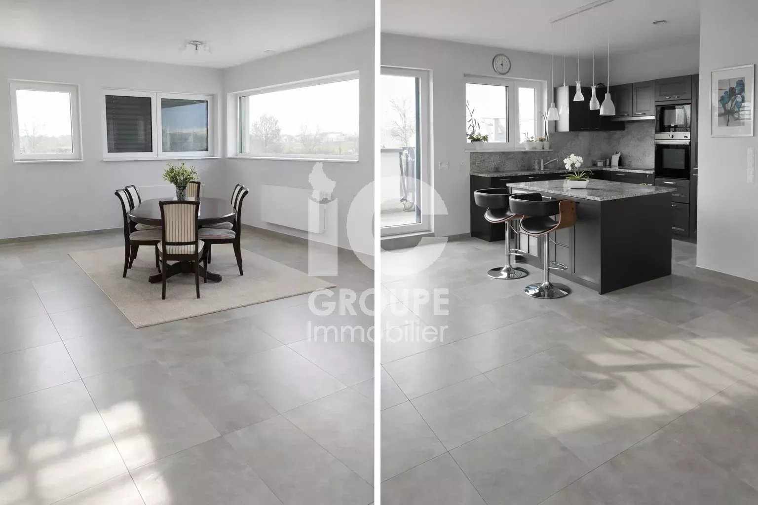 Situé au dernier étage d’une résidence contemporaine construite en 2018, ce penthouse rare allie intimité, volumes généreux et prestations haut de gamme. L’ascenseur dessert directement l’appartement, renforçant le caractère exclusif du bien. Dès l’entrée, la luminosité naturelle et la fluidité des espaces séduisent immédiatement. Le vaste séjour, véritable cœur du penthouse, est entouré de deux magnifiques terrasses, créant une continuité harmonieuse entre intérieur et extérieur. Agencement & prestations • Grand séjour avec salle à manger, baigné de lumière • Cuisine moderne ouverte parfaitement intégrée • Suite parentale avec salle de bains privative et dressing • Deuxième chambre avec sa propre salle de douche • Toutes les salles d’eau disposent d’une fenêtre • Accès direct aux terrasses depuis les chambres • Espace cosy en bout de couloir, actuellement aménagé en bureau • WC séparé • Débarras avec raccordements pour machine à laver et sèche-linge • Deux emplacements de parking côte à côte en sous-sol inclus dans la vente Espaces extérieurs Les deux terrasses qui entourent le séjour offrent un véritable prolongement de l’espace de vie et permettent de profiter pleinement des beaux jours, dans un cadre résidentiel agréable. Les deux terrasses sont chacune équipées de stores bannes électriques, garantissant une protection solaire optimale et un confort maximal pour profiter pleinement des espaces extérieurs. Localisation – Sanem Sanem figure parmi les communes les plus recherchées du sud du Luxembourg grâce à : • Sa proximité immédiate avec Esch-sur-Alzette et Belval • Son accès rapide vers Luxembourg-Ville • Ses écoles, infrastructures sportives et commerces • Son environnement résidentiel calme et verdoyant Un emplacement stratégique combinant qualité de vie et excellente accessibilité. Disponible immédiatement pour visite. Pour tout renseignement complémentaire ou pour organiser une visite, merci de nous contacter au +352 621 198 178.