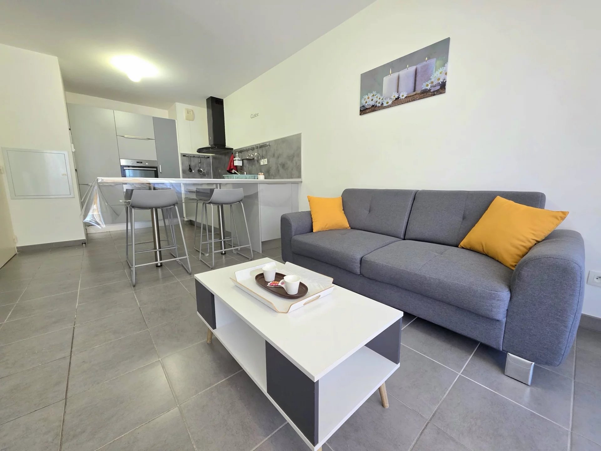 Nous vous proposons à la location cet appartement de type 2 meublé situé dans une résidence fermée et sécurisée. Le logement se compose d'un hall d'entrée, d'un séjour avec une cuisine ouverte, le tout donnant sur une terrasse d'environ 9m², d'une chambre, d'une salle de bains et des WC. Le logement est loué avec une place de parking privative.