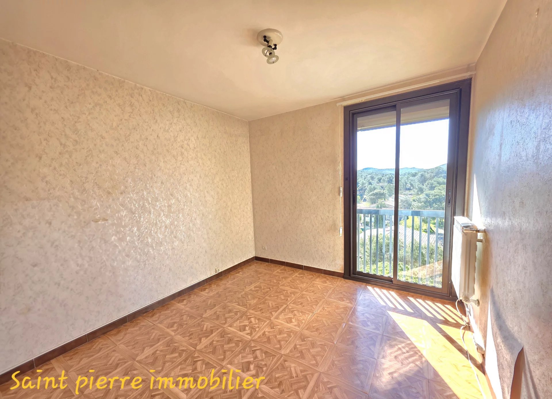 Ca fait du bien de prendre de la hauteur de temps en temps, histoire de laisser ces problèmes loin de vous, tout en bas...C'est exactement ce que vous allez ressentir dans ce grand appartement au dernier étage. Personne au-dessus de vous mis à part les mouettes et le ciel bleu de Provence. Alors certes il y a des travaux de rafraîchissement, mais au final la possibilité d'avoir un appartement génial avec une vue dégagée sur les collines et la pinède d'un côté et sur la ville de l'autre. Côté composition, un séjour avec balcon sans vis-à-vis, une cuisine avec une buanderie, trois chambres, un dressing, une petite loggia, une salle d'eau, un toilette et une cave complètent la distribution. En bas, la résidence possède un très grand parc pour se promener avec votre chien et les enfants, et possède de nombreuses places de parking. Ah encore une chose et ça c'est pour moi, offert par la maison, votre séjour orienté sud sud-est vous offrira tous les jours de superbes couchers de soleil.