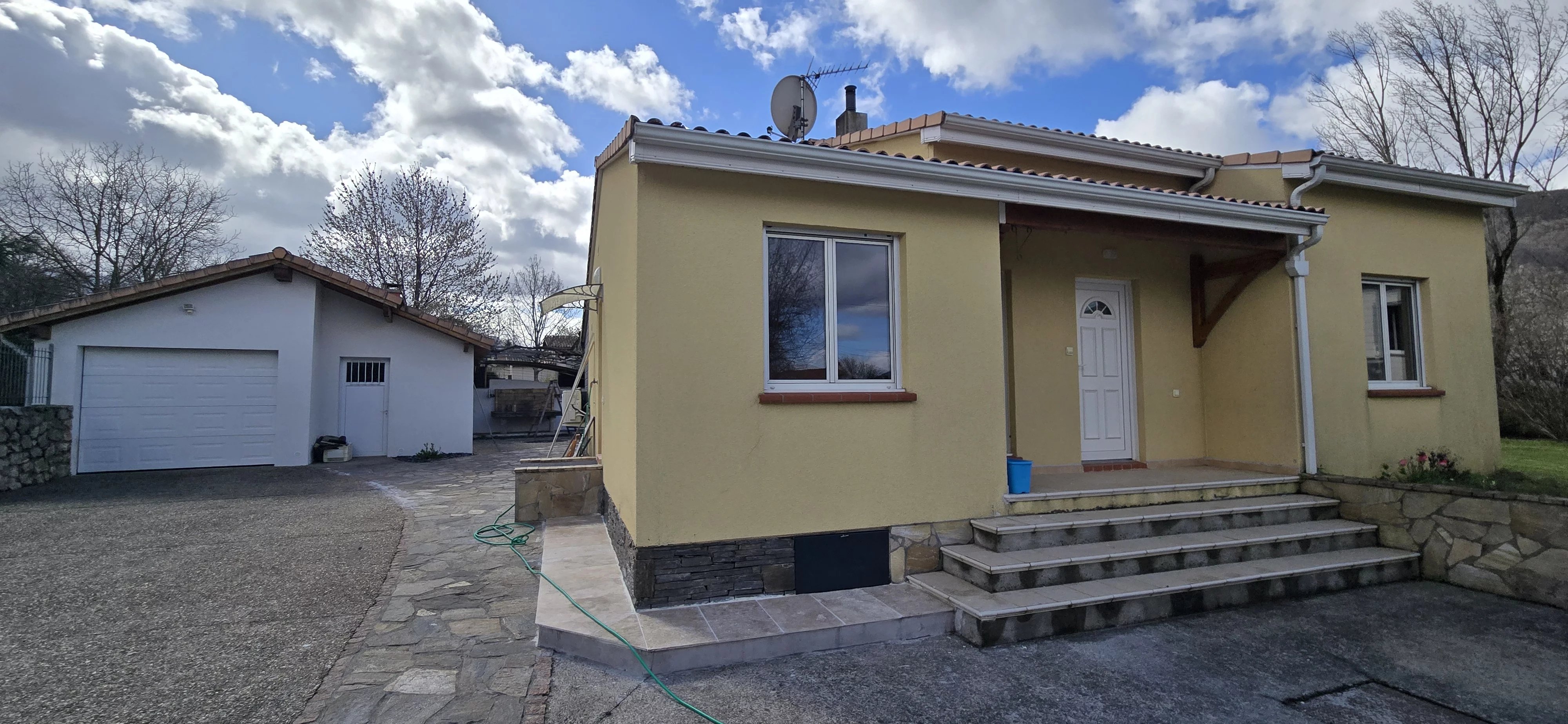 Un garage indépendant, aménagé avec un coin cuisine et une cave offre un espace supplémentaire appréciable.