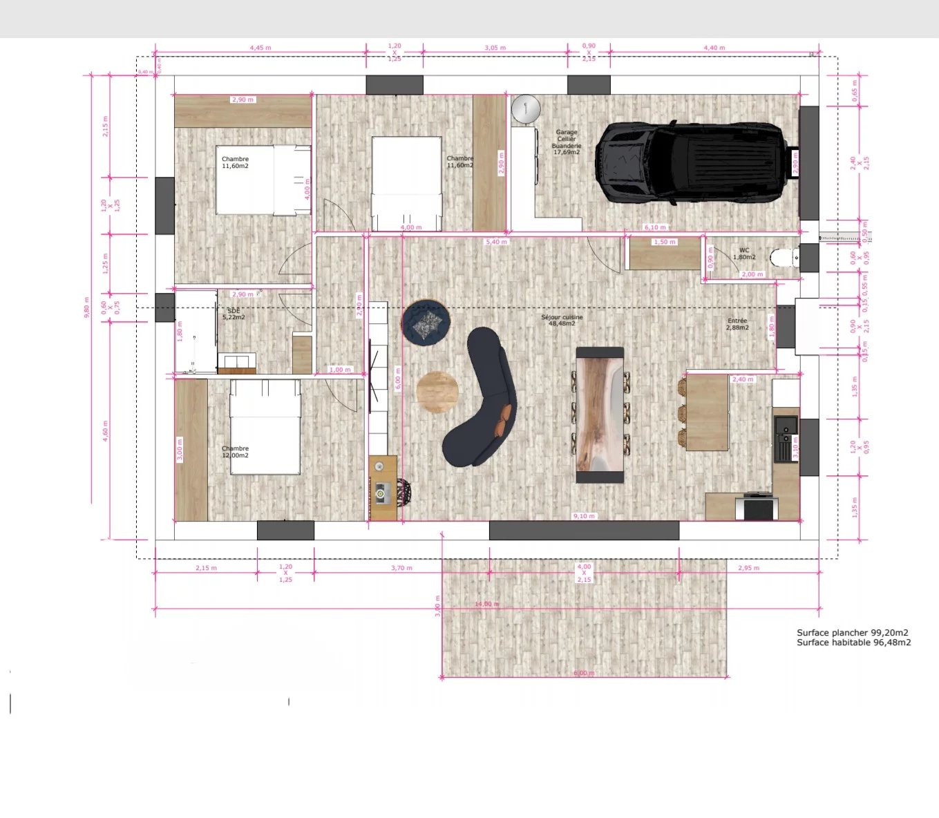 Trois belles chambres avec dressing.