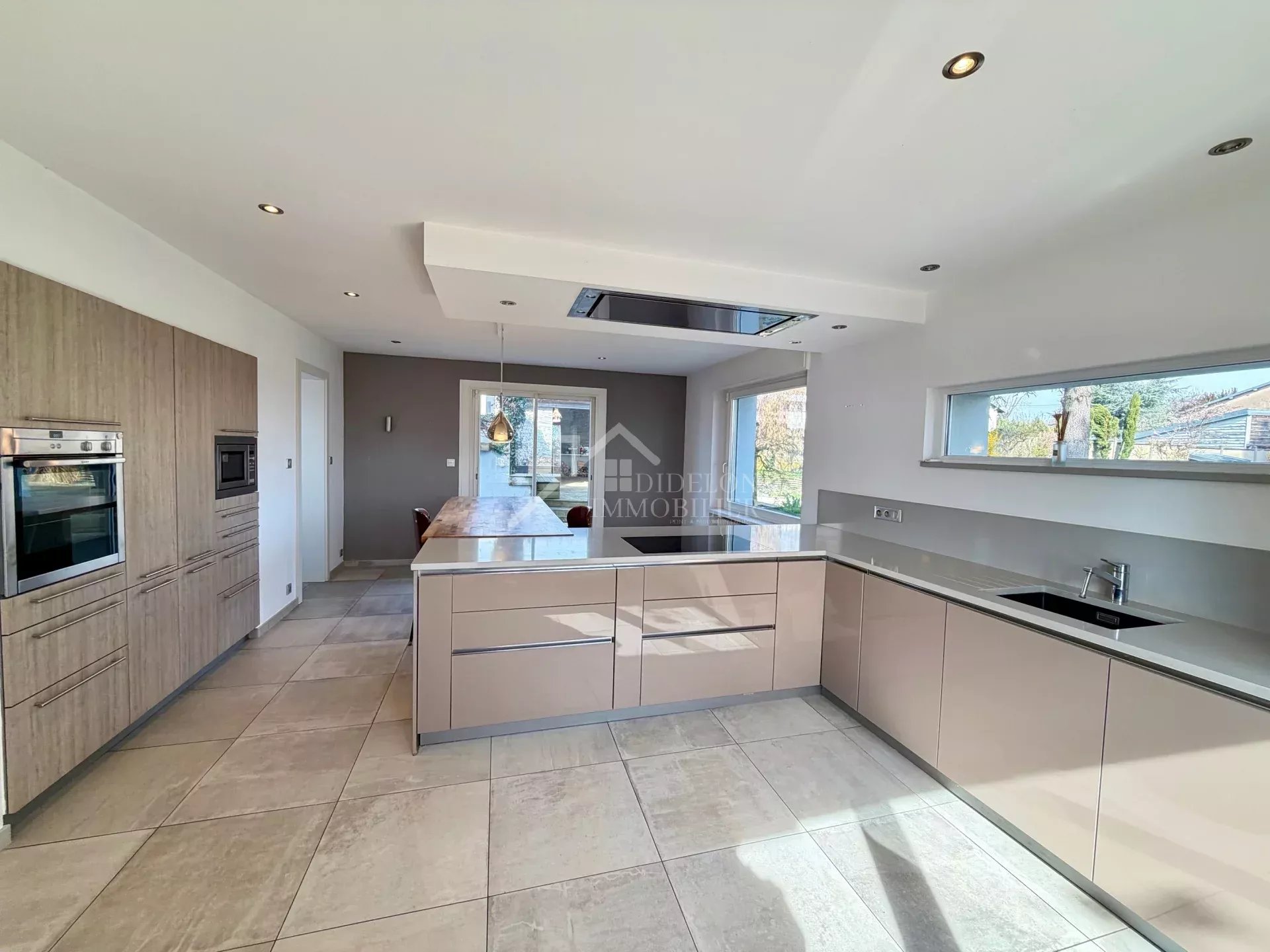 - au RDC : vaste entrée, cuisine équipée avec accès direct sur l'extérieur, pièce de vie de 50 m², buanderie, cellier, wc