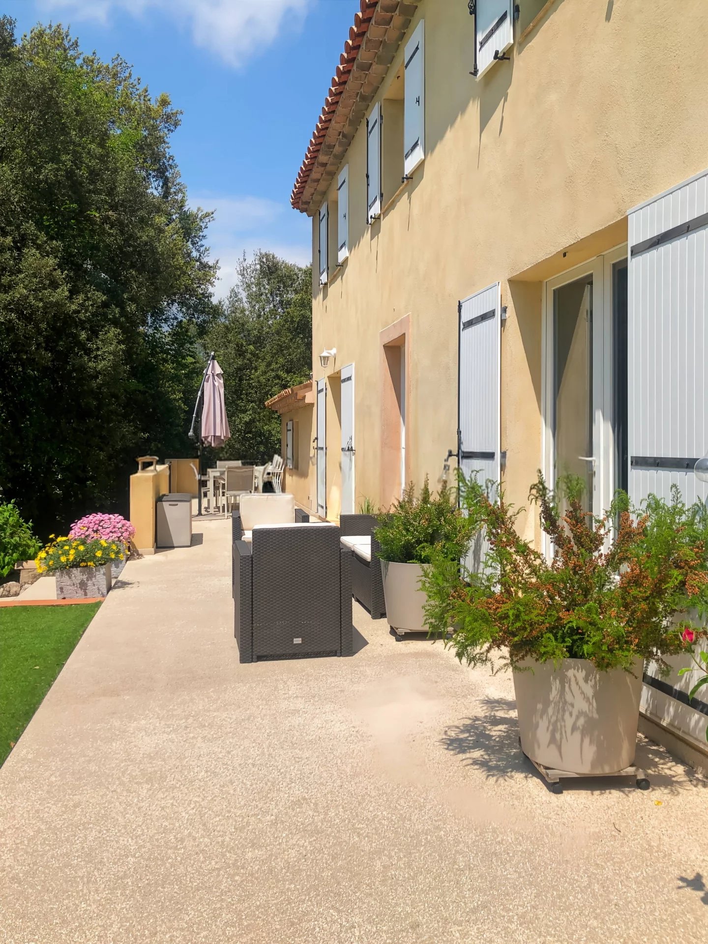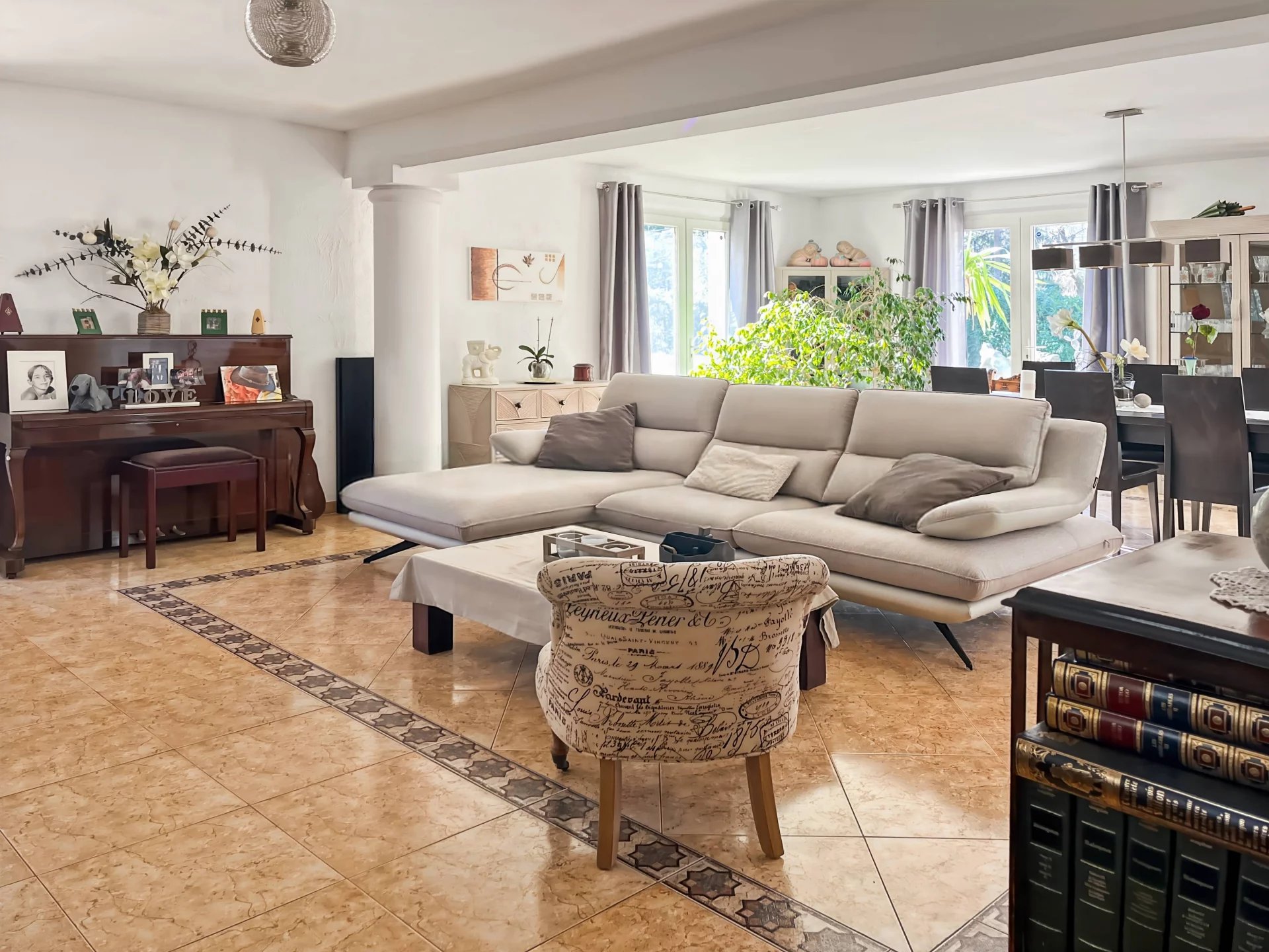 Villa de 220m2 + T3 de 45 m2 situés dans un environnement calme avec jardin clos de 2100 m2 à mi-chemin entre Cannes et Nice. Les pièces de la villa sont spacieuses et lumineuses: le salon, la salle à manger et la cuisine donnent sur des terrasses exposées plein sud dont une est couverte. Le jardin plat et verdoyant inclut une grande piscine 11X4.5 M avec plage immergée et un espace parking pour 3 voitures+ garage de 100m2 Au rez-de-chaussée : - Cuisine indépendante toute équipée donnant sur terrasse - 1 grande pièce à vivre de 70 M2 donnant sur terrasse - 1 grande chambre de 16 M2 avec son coin douche - 1 WC indépendant - 1 grande buanderie - Terrasse sur toute la façade sud avec salon de jardin et barbecue et une terrasse couverte avec salon de jardin. A l’étage : - 1 chambre de 24 M2 avec un lit double de 160 cm - 1 chambre de 16 M2 avec un lit double de 140 cm - 2 chambres de 16 M2 avec 1 lit double de 160 cm - 2 salles de bain - 1 WC indépendant Toutes commodités sur place au village: le centre se compose de différents commerces : boucherie-traiteur, primeur, boulangerie, Intermarché, restaurants, magasins bio, magasin circuits-courts, coiffeur, médecins, centre de radiologie et d’IRM, pharmacies, opticien, dentistes, laboratoire d’analyses, esthéticienne cinéma, etc…. Et pour les enfants : crêche, maternelle, primaire et collège avec classes internationales. Square avec jeux d’enfants. Nice aéroport 20 min, Cannes croisette 25 min, Grasse 20 min, plages 15 min.