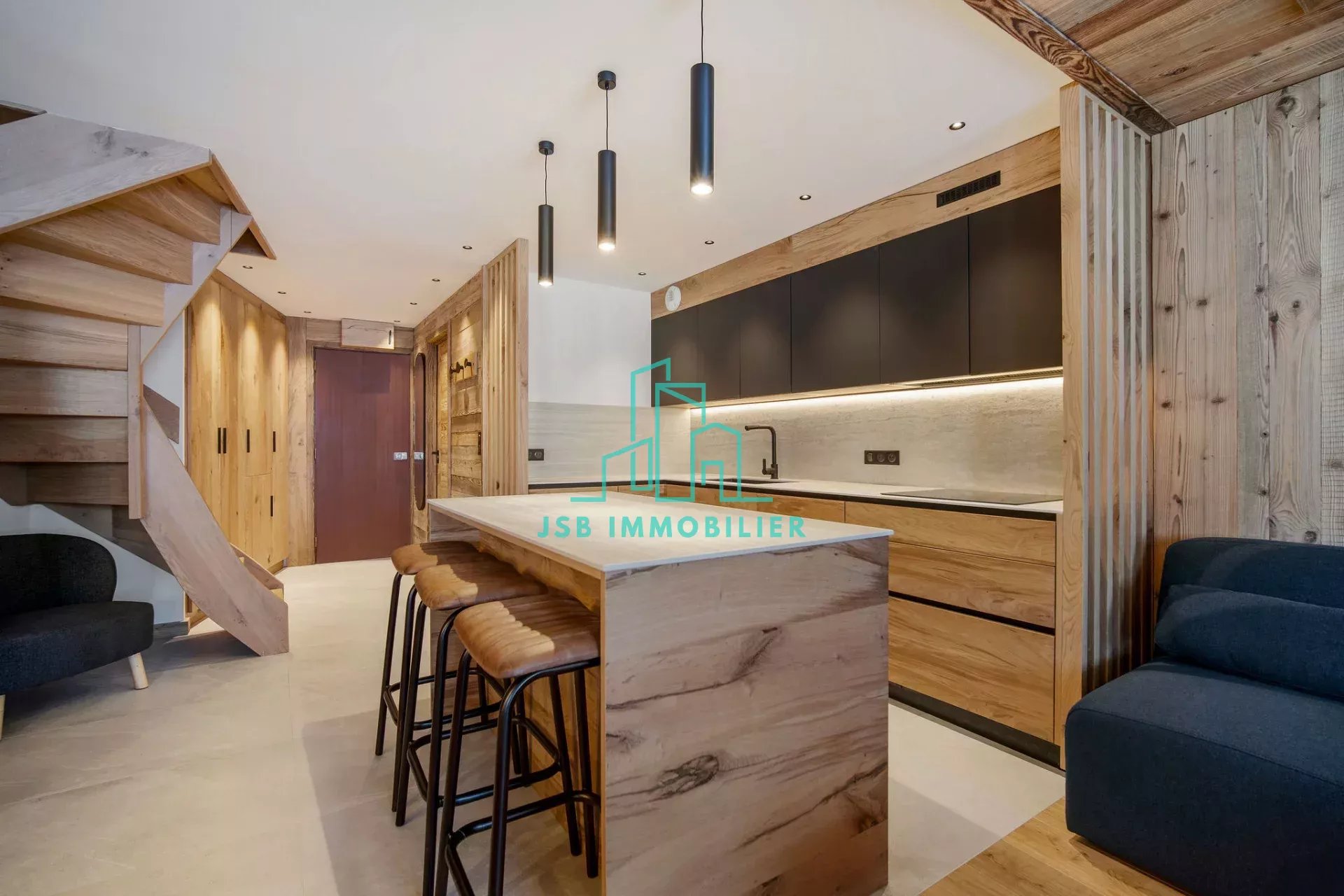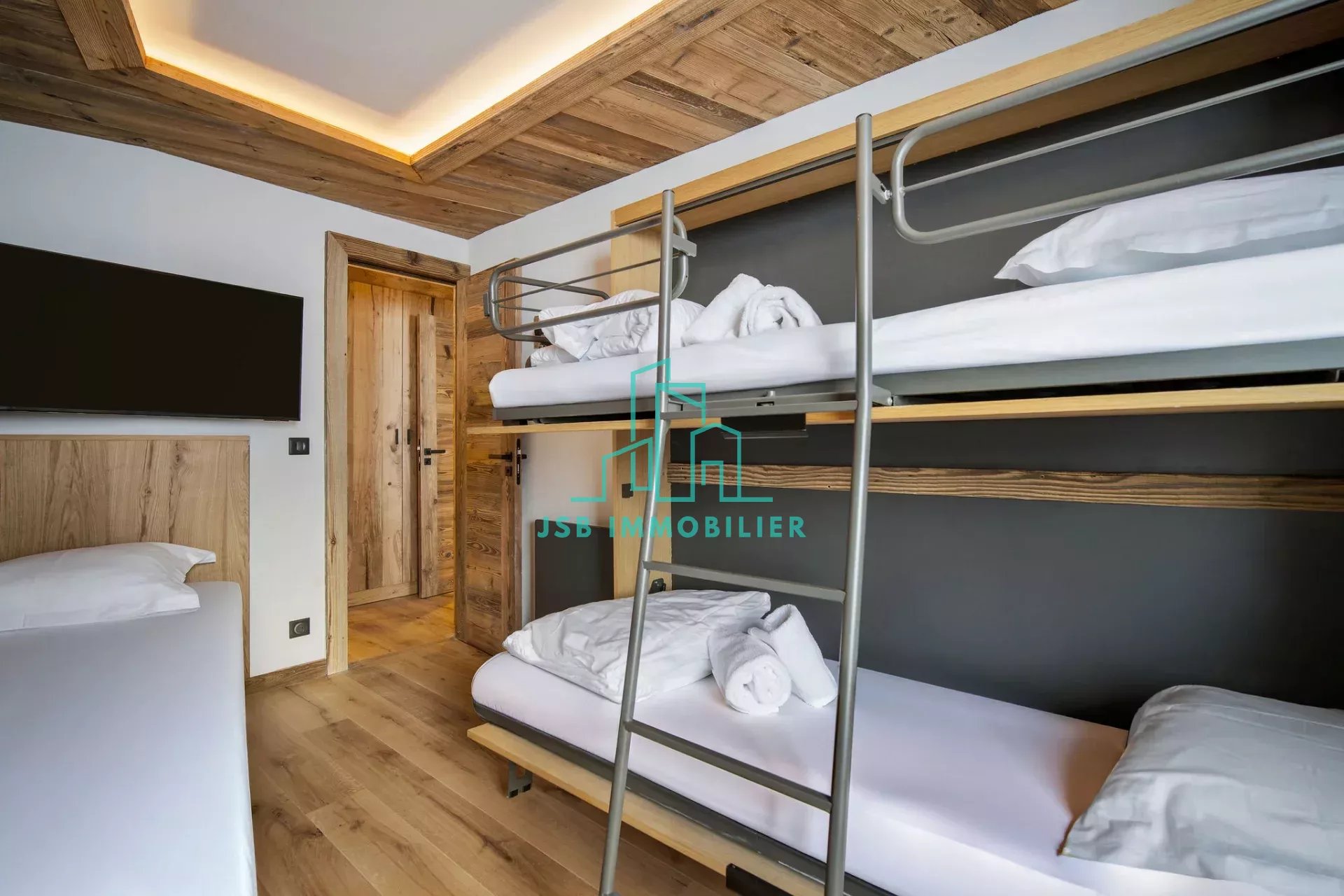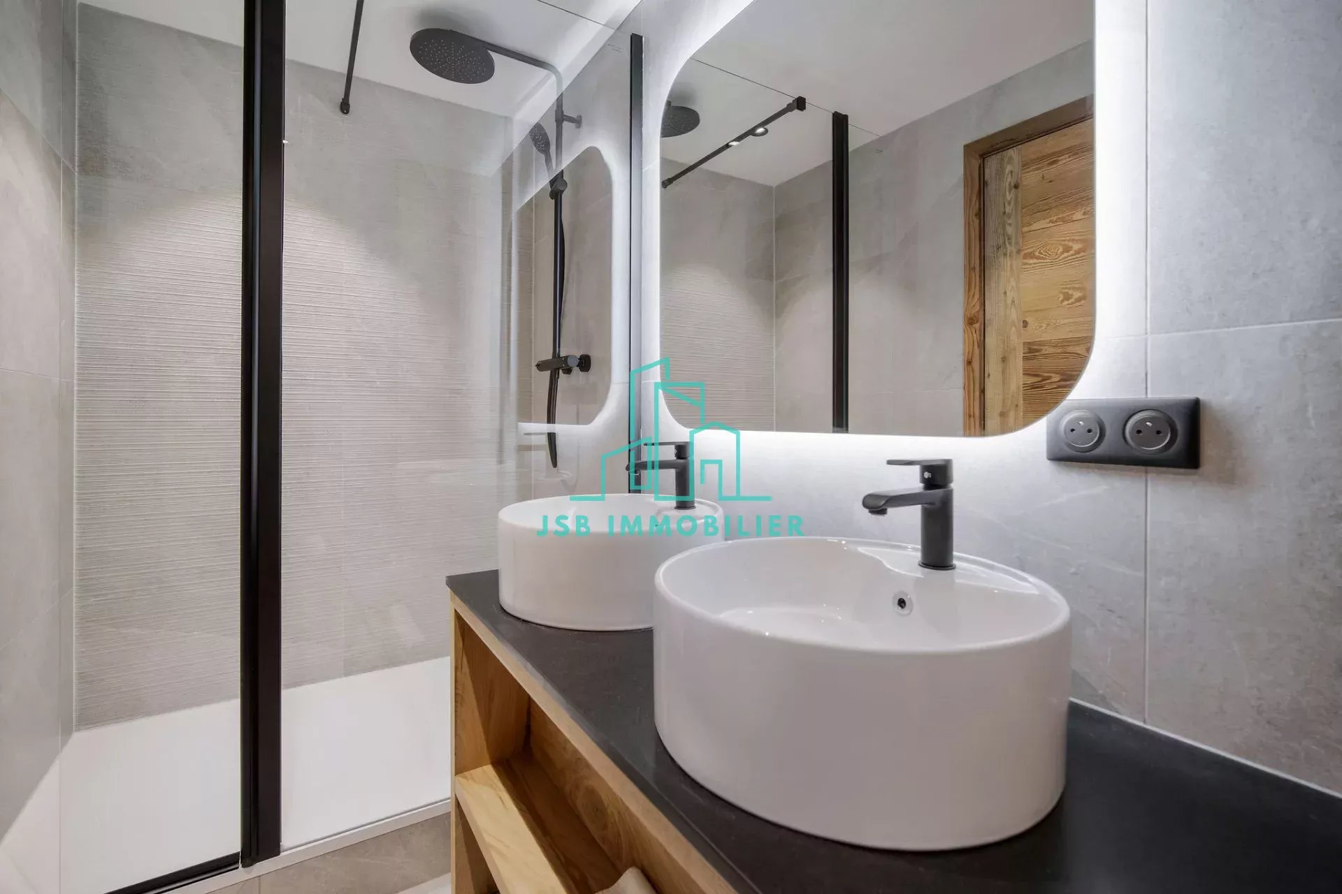 Cet appartement en duplex se distingue par ses volumes généreux : composé de 2 appartements réunis, il a été entièrement repensé lors de sa rénovation afin de répondre aux attentes des personnes qui recherchent un appartement de grand standing à la montagne : un espace séjour / salon très spacieux, une cuisine moderne et conviviale pouvant accueillir un îlot central, des chambres confortables et tranquilles, sans bruit de voisinage, des salles de bain modernes, de qualité et très fonctionnelles.