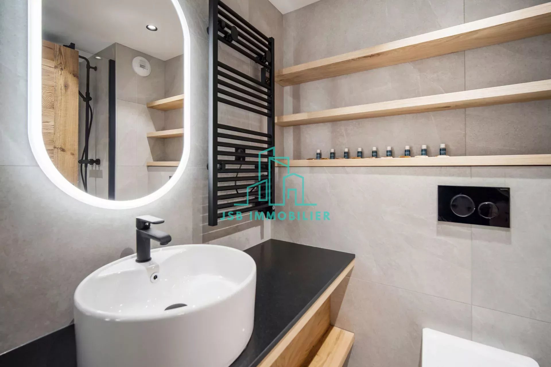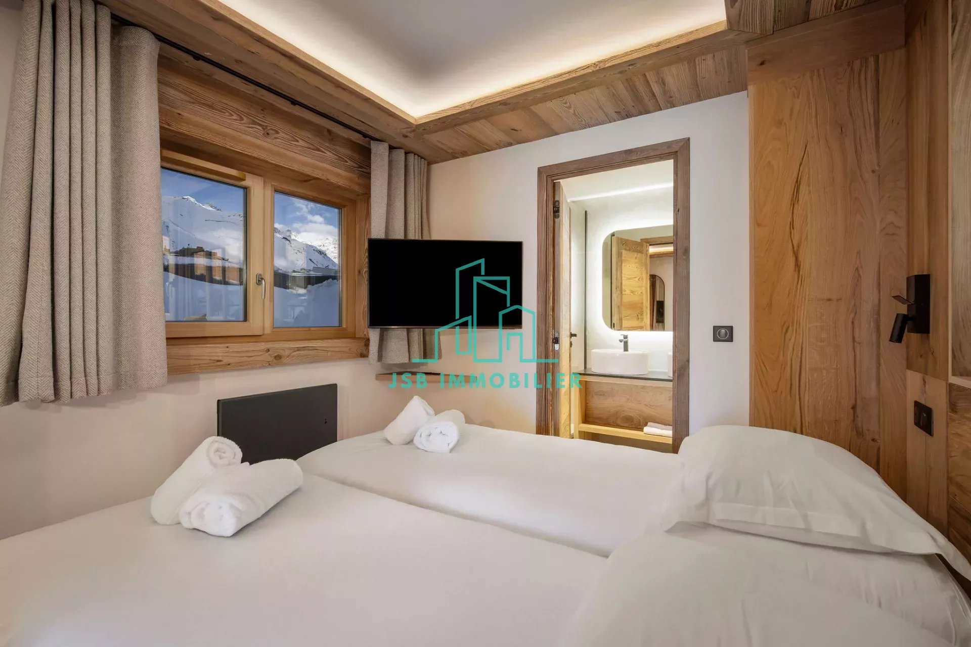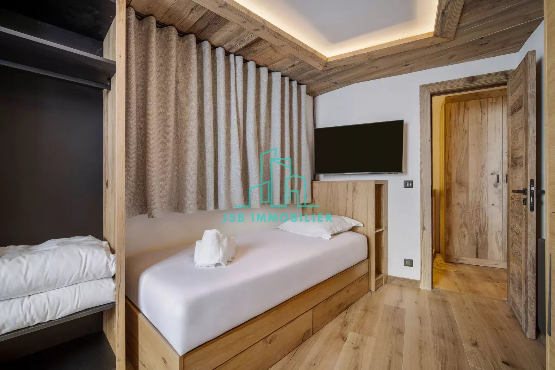 Cet appartement en duplex se distingue par ses volumes généreux : composé de 2 appartements réunis, il a été entièrement repensé lors de sa rénovation afin de répondre aux attentes des personnes qui recherchent un appartement de grand standing à la montagne : un espace séjour / salon très spacieux, une cuisine moderne et conviviale pouvant accueillir un îlot central, des chambres confortables et tranquilles, sans bruit de voisinage, des salles de bain modernes, de qualité et très fonctionnelles.