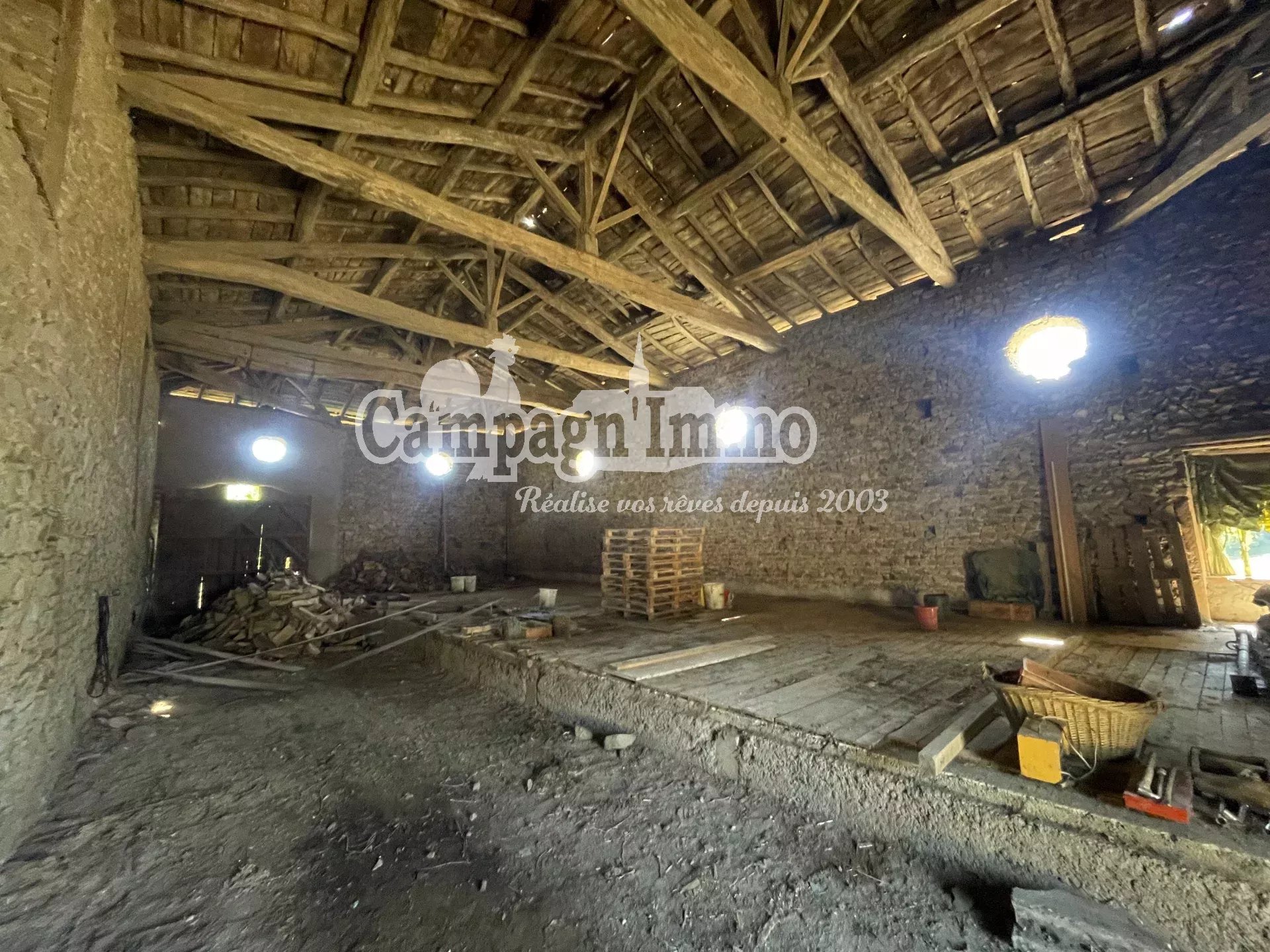 CAMPAGN'IMMO vous propose de venir découvrir cette ancienne grange d'environ 290 m² d'emprise au sol comprenant une partie à démolir et une partie à rénover sur 1 900 m² de terrain environ.