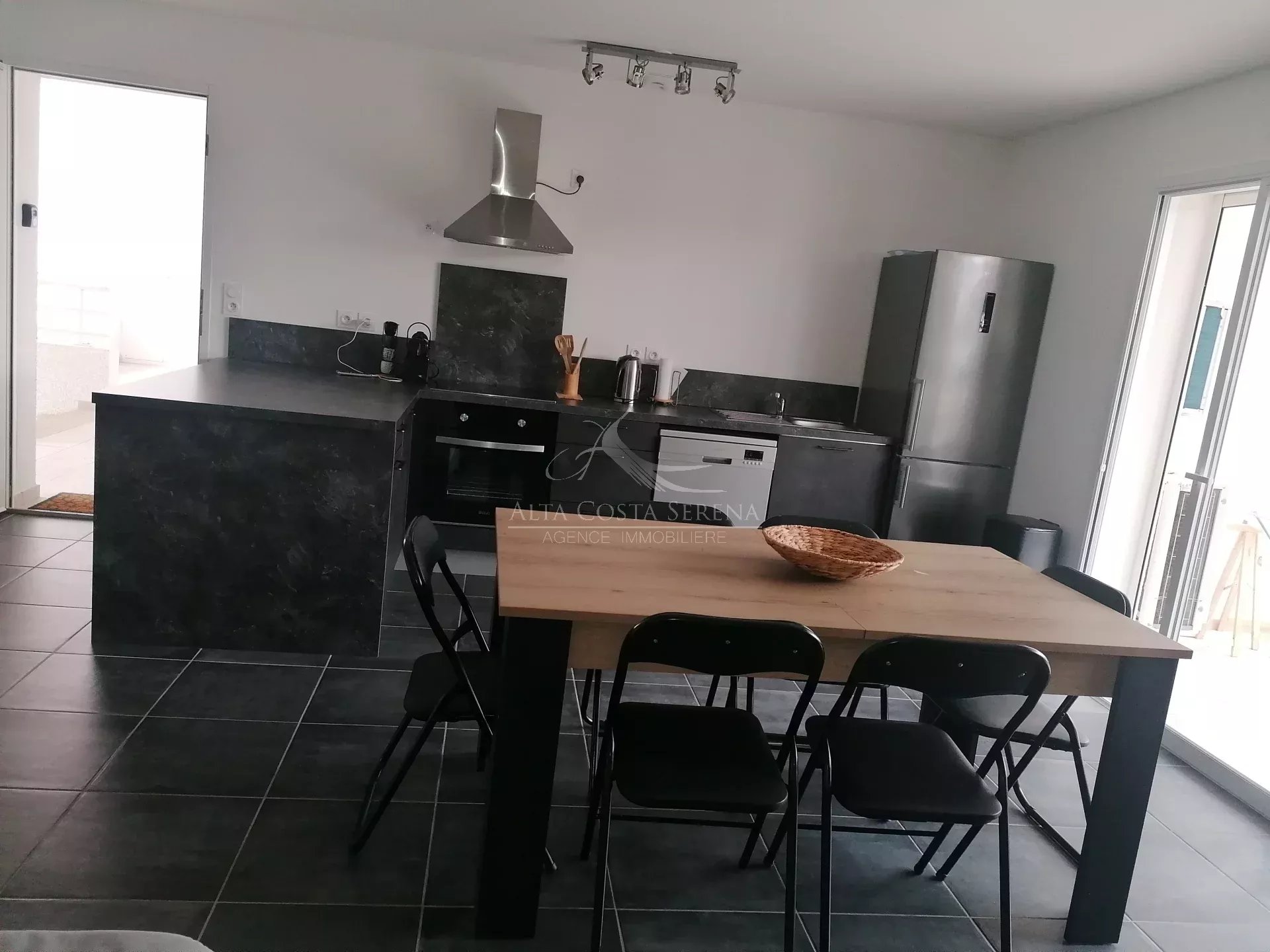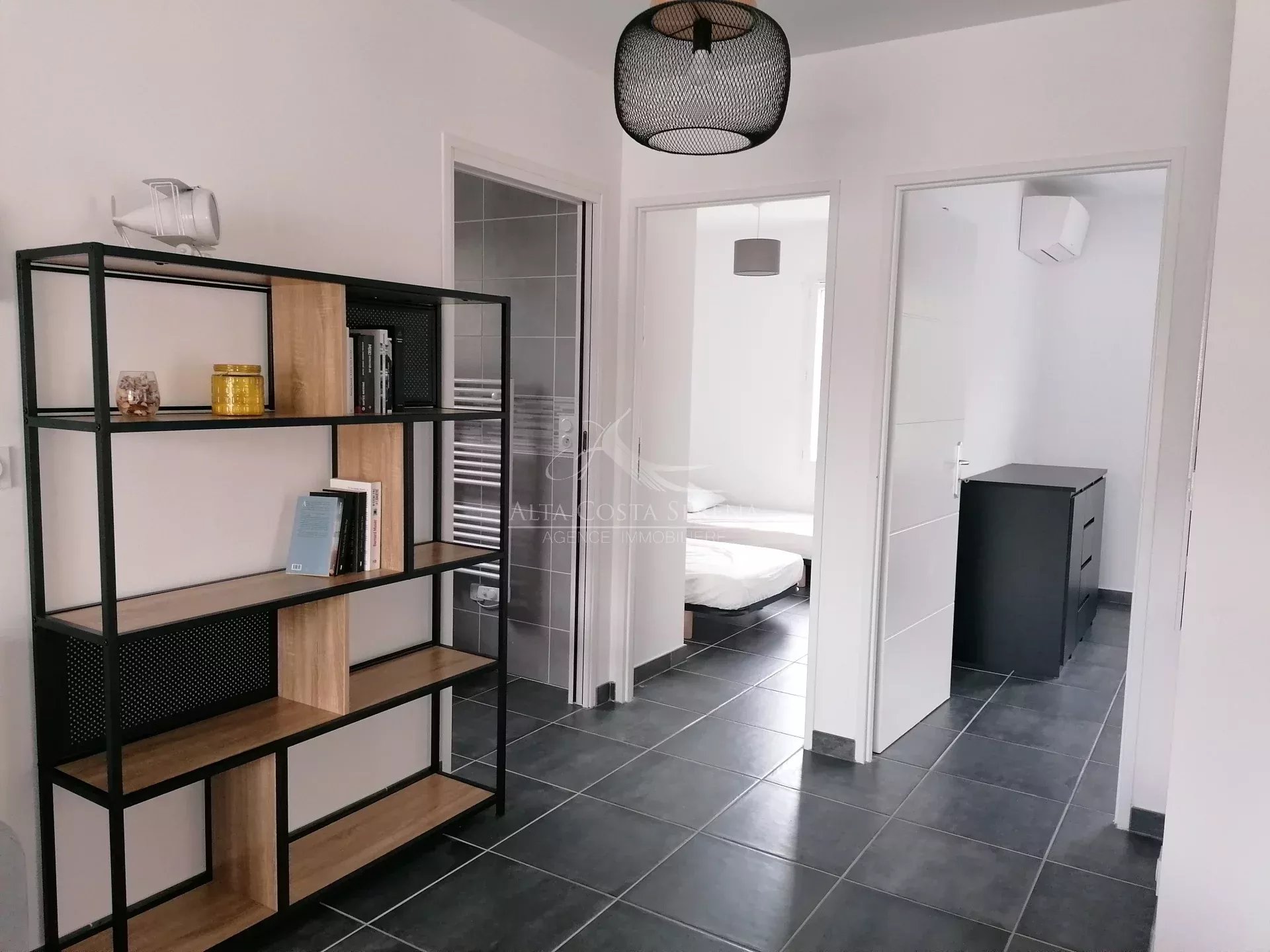 Appartement de type T3 meublé ,climatisé ,situé au 1 er étage d'une résidence calme en bordure de nationale, proche de la mer .