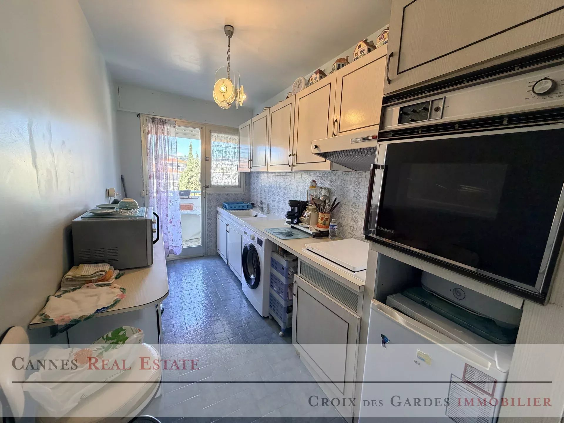 Cannes Petit Juas. Appartement 3 pièces en étage élevé, lumineux et traversant, situe à proximité immédiate de tout commodités, des plages et des transports. Il offre un cadre de vie agréable et pratique au quotidien. L'appartement se compose d'un hall d'entrée, d'un vaste séjour ouvrant sur une terrasse exposé plain sud avec un aperçu des Iles de Lérins, de deux chambres, d'une cuisine avec un grand balcon, bénéficiant d'un calme absolu. Une salle de bains, une salle d'eau ainsi que des toilettes séparèes. Un garage de 21m2 et une cave complètent ce bien. Copropriété de 83 lots principaux - Appel de fonds annuel prévisionnel: 4200€, dont copropriété, Eau CH, Chauffage, Gaz cuisine et Loi ALUR. Dossier complet sur demande
