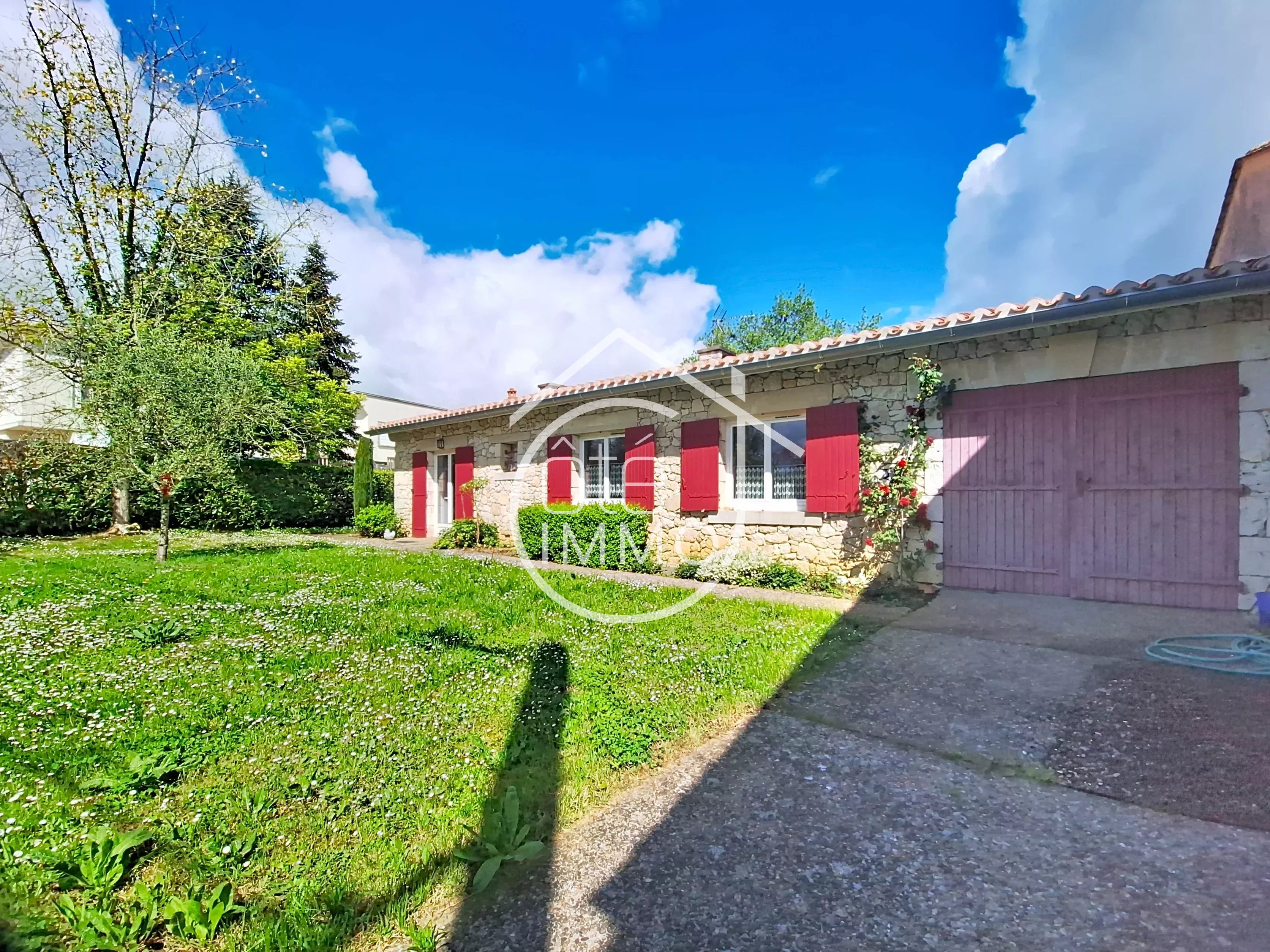 EXCLUSIVITÉ – Côté Immo Pays Foyen A 5 minutes de Pineuilh, laissez-vous séduire par cette charmante maison de plain-pied de 92 m² mitoyenne, idéalement située dans un environnement calme et verdoyant, à seulement quelques minutes des commodités. Dès l’entrée, vous découvrirez un espace de vie chaleureux et lumineux, composé d’un séjour avec insert, ouvert sur une cuisine semi-ouverte conviviale — parfait pour partager de bons moments en famille ou entre amis. L’espace nuit offre trois chambres confortables, une salle d’eau moderne ainsi qu’un WC indépendant, répondant parfaitement aux besoins du quotidien. Un garage attenant de 28 m² (non communicant) complète ce bien et offre un espace de rangement appréciable. À l’extérieur, vous profiterez d’une belle parcelle de 975 m², idéale pour vos projets d’aménagement, de jardin ou de détente en plein air. Un cadre de vie paisible, une maison fonctionnelle et pleine de potentiel : une opportunité à ne pas manquer !