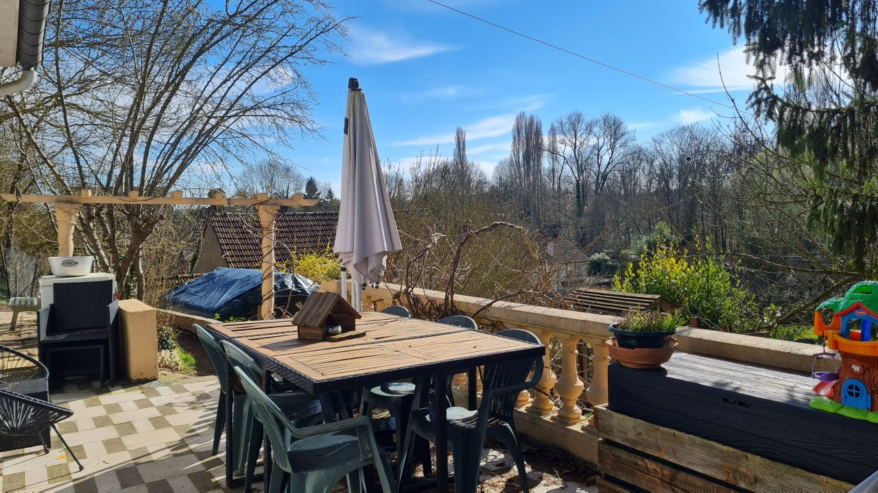 L'Agence LA CHAUMIERE vous présente en EXCLUVISITE à MAINTENON cette maison composée de : Entrée, salle à manger, salon avec cheminée (foyer ouvert), cuisine aménagée, dégagement, salle de bains, deux chambres, wc avec lave-mains. A l'étage : dégagement, suite parentale (chambre avec salle de bains), débarras/lingerie, wc, chambre. Terrasse - Grand garage sur rue Le tout édifié sur un terrain arboré et clos de plus de 1320 m². Chauffage pompe à chaleur - DPE : D Réf : M203694 (6.00 % honoraires TTC à la charge de l'acquéreur.)