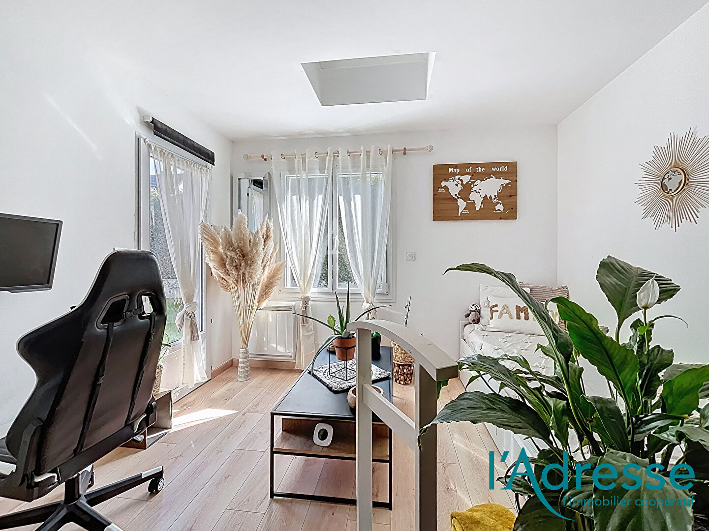 Votre agence l'Adresse vous présente en exclusivité ce joli plain pied intégral construit en 2007, idéalement situé en fond d'impasse, au calme absolu, à deux pas des commerces, des transports et de toutes les commodités. D'une surface d'environ 78 m², cette maison séduit immédiatement par sa fonctionnalité, ses normes PMR et son atmosphère chaleureuse. La pièce de vie, lumineuse et conviviale, s'ouvre sur une cuisine aménagée et équipée, tandis que le poêle à bois promet de douces soirées d'hiver. La partie nuit se compose de deux chambres, d'une salle d'eau avec douche à l'italienne, d'un WC indépendant avec lave mains ainsi que d'un bureau, parfait pour le télétravail ou une chambre d'appoint. Côté annexes, vous apprécierez le grand garage de 30 m² avec porte motorisée, offrant un bel espace de stockage. A l'extérieur, le terrain clos et sans vis à vis, exposé plein sud, vous garantit tranquillité et intimité pour profiter pleinement des beaux jours. Un bien rare, pratique, lumineux et idéalement situé à proximité immédiate des commodités. A découvrir sans tarder ! DPE : C (178) REF : 37160-CE