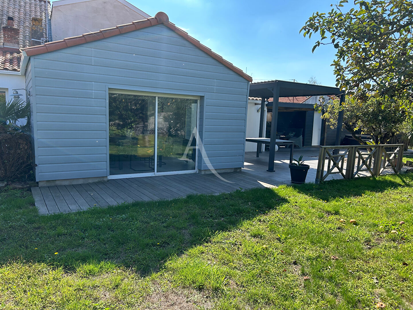 L'Adresse Jade Immobilier vous présente : LA BERNERIE EN RETZ A 450m des commerces et de la plage. Au calme de son impasse, maison avec de beaux volumes et en parfait état comprenant : un salon cathédrale ouvert sur une cuisine aménagée et équipée, une salle à manger, deux chambres avec dressing, 6 chambres dont 3 au rez-de-chaussée, 2 salle d'eau, 1 salle de bains, 3 wc. L'espace extérieur se compose d'une cour végétalisée et d'une terrasse à l'avant et à l'arrière d'une seconde terrasse donnant sur un joli jardin arboré et clos de murs de pierres. Un garage attenant de 24m² complète le tout. Venez poser vos valises dans cette confortable maison idéalement située alliant charme de l'ancien et atout du contemporain ! (3.80 % honoraires TTC à la charge de l'acquéreur.)