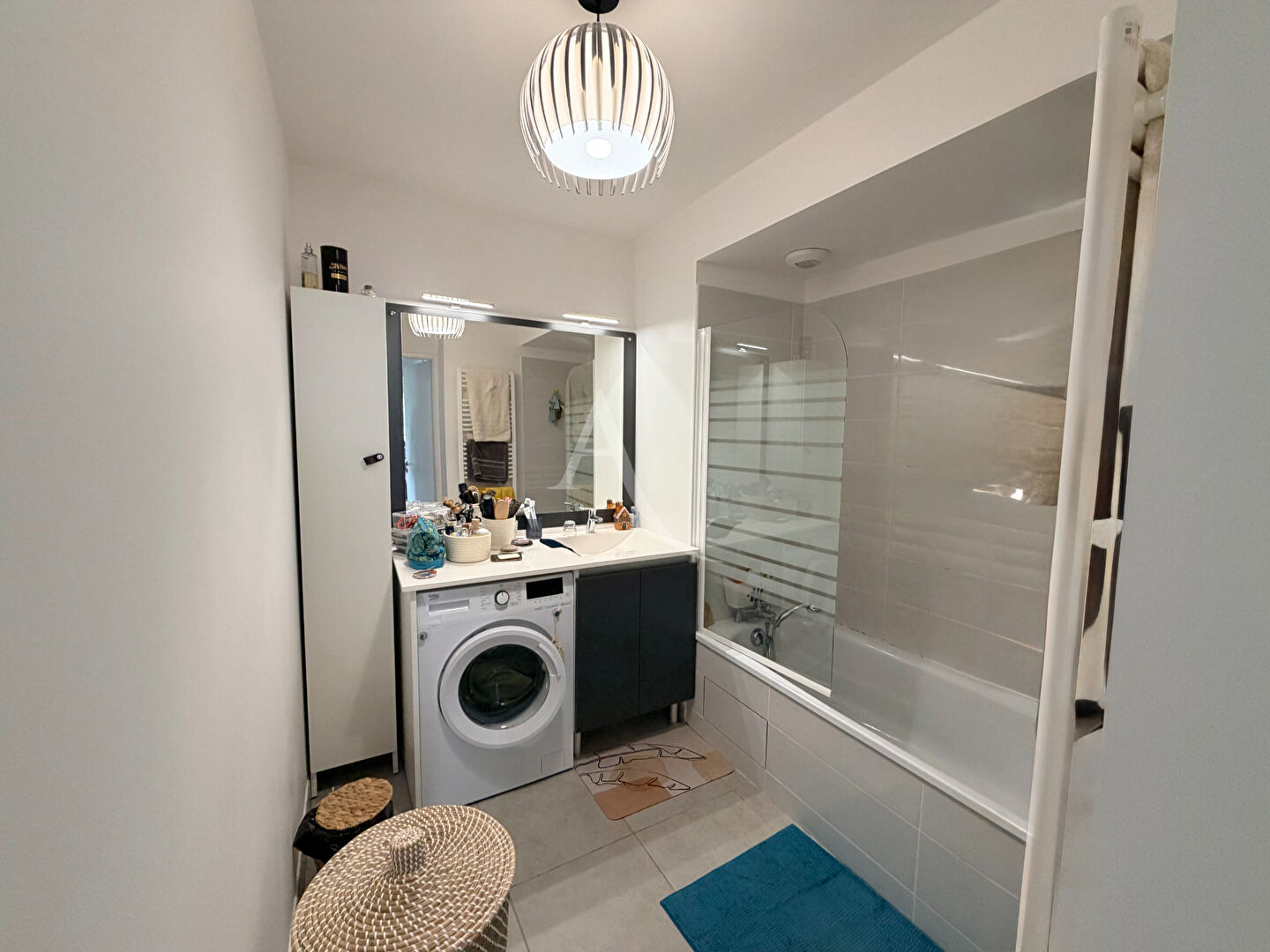 IDEAL INVESTISSEUR! Située au nord-ouest de Toulouse, la commune d'Aussonne conjugue dynamisme économique et qualité de vie. Idéalement localisé, proche du futur Parc des Expositions et de la ligne T1 du tramway et par bus TISSEO. La résidence se trouve à proximité des écoles, commerces et de l'aéroport de Blagnac. Vous pourrez rejoindre le centre-ville d'Aussonne véritable petit village, en 5 min à pied seulement. Cet appartement au 1er étage de 58.40m² comprend un espace de vie de 28m² avec cuisine meublée avec électroménager donnant sur un balcon exposé SUD, côté nuit, 2 chambres (9.10 et 11.75) avec placard aménagés, 1 salle de bain entièrement équipée et avec lave linge et un WC séparé. Et une place de parking en sous-sol. Bail en court jusqu'au 15/09/2028. Copropriété de 22 lots. Charges annuelles : 1300 euros.
