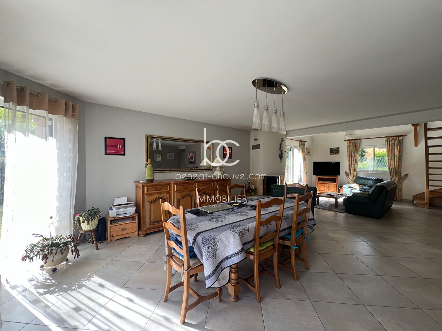 Le Cabinet Bénéat-Chauvel vous présente cette superbe maison familiale aux volumes généreux, idéalement située à proximité immédiate du bourg de SARZEAU. Bénéficiez d'un cadre de vie privilégié où toutes les commodités, les écoles et les commerces sont accessibles à pied, tout en profitant du calme d'un quartier résidentiel recherché sur la Presqu'île de Rhuys. Le rez-de-chaussée a été conçu pour offrir un maximum de confort avec une véritable vie de plain-pied. Il s'ouvre sur un hall d'entrée desservant un vaste salon-séjour baigné de lumière, agrémenté d'une cuisine ouverte entièrement aménagée et équipée (A/E) et d'un cellier attenant très pratique. L'espace nuit de ce niveau se compose d'une belle suite parentale avec sa salle d'eau privative et un WC indépendant. A l'étage, une grande mezzanine idéale pour un espace bureau ou détente distribue deux chambres confortables, une salle de bains et un second WC. Atout majeur pour l'évolution de votre patrimoine : un grenier aménageable permet de créer facilement une quatrième chambre ou un espace de loisirs selon vos besoins. L'ensemble est édifié sur une jolie parcelle paysagée et dispose d'un grand garage ainsi que d'un abri de jardin. L'alliance parfaite de l'espace et de la proximité : découvrez une maison lumineuse pensée pour la famille, au coeur de la vie sarzeautine ! Prix FAI : 598 500 euros dont 5.00 % honoraires TTC à la charge de l'acquéreur.
