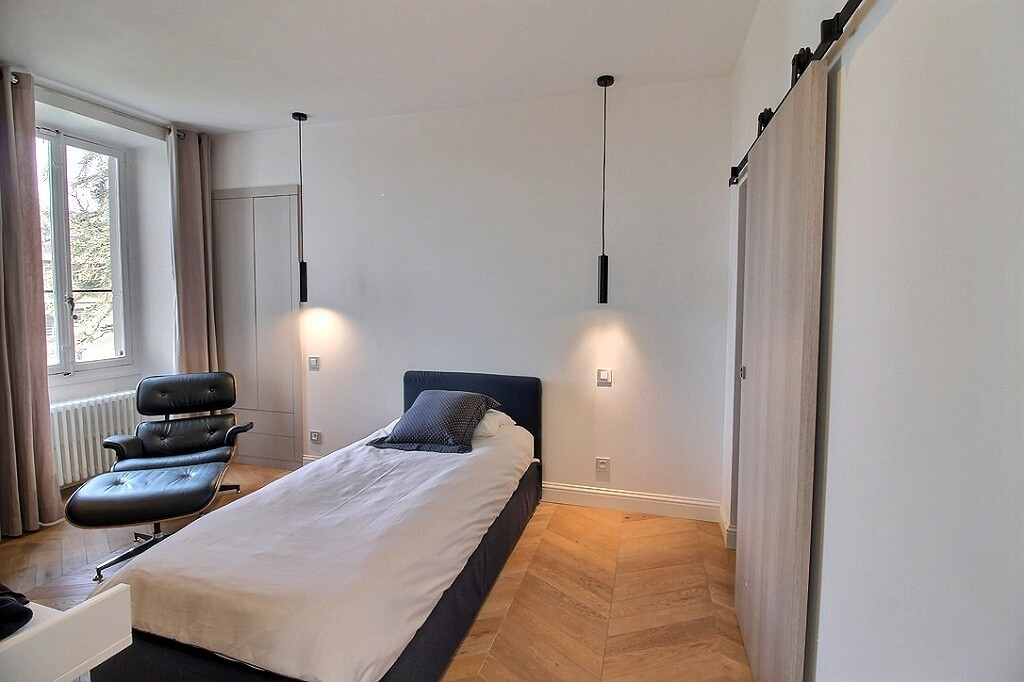 A proximité immédiate de la voie verte, des écoles, des commerces et des lignes de transports en commun, duplex traversant d'exception d'une surface de 118 m² avec un jardin privatif de 249 m² lové dans une magnifique demeure du 17ème siècle côtoyant charme de l'ancien et touches contemporaines. Une salle à manger spacieuse s'ouvre sur une cuisine équipée avec plan dînatoire aux lignes épurées et aux finitions de grand standing. Son salon privé s'ouvre sur sa terrasse permettant d'accéder à la piscine privée de la résidence. On accède à la partie nuit en empruntant l'escalier de la tour du château, un couloir majestueux avec placards distribue 2 grandes chambres avec chacune leur salle de douches et toilette suspendu. Une grande cave, 2 places de stationnement extérieur complètent cette offre de qualité. Coup de coeur assuré ! Copropriété de 43 lots - dont 11 lots habitation. Charges annuelles : 3600 euros.