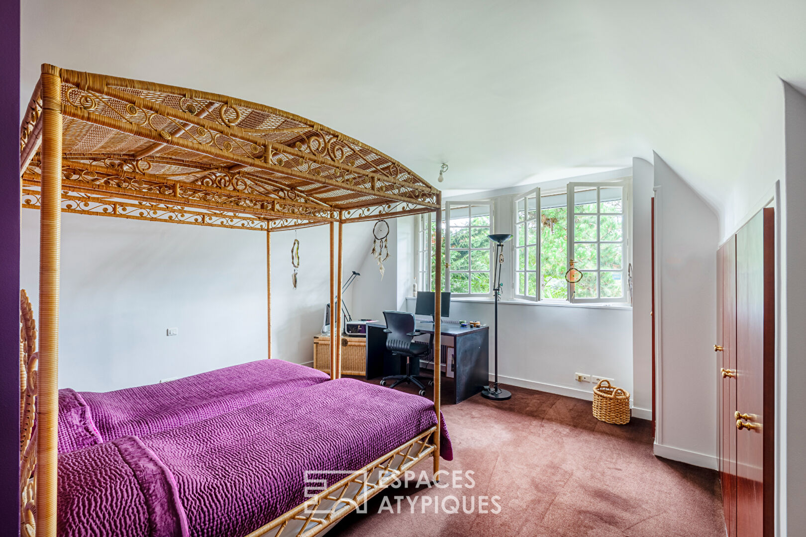 Située quartier des Gressets, dans un environnement paisible et verdoyant, cette chaumière de 182 m² (276,22 au sol) offre une atmosphère sereine et idyllique, parfaite pour ceux qui cherchent à échapper à l'agitation de la ville. A seulement 9 min à pied de la gare de Bougival, elle est lovée dans son superbe jardin paysagé, clos, sans vis à vis, de 1.345 m². L'entrée dessert la salle à manger et sa grande cuisine ouverte et fonctionnelle tournées sur une terrasse exposée ouest. Le salon qui développe une surface de 41 m² profite d'une cheminée comme de la vue sur la terrasse et son jardin savamment organisé. Une jolie chambre de 15 m² avec sa salle d'eau attenante bénéficie de la terrasse exposée Sud/Est. L'étage se compose d'un palier qui distribue deux grandes chambres de 13 et 24 m² et se partagent une salle de bains avec douche. Puis, la suite parentale de 25 m² offre un espace généreux avec un dressing double et une salle de bains avec douche privative pour un confort optimal. Le sous-sol complet s'organise en buanderie de 15 m², une pièce de rangement de 16 m², une cave à vin et un garage carrelé de deux grands stationnements. Cette chaumière est idéale pour les familles, les couples ou les personnes cherchant un refuge paisible à la campagne entourée de chants d'oiseaux. La propriété offre un cadre naturel exceptionnel, avec des possibilités de jardinage et de détente en plein air. Une vie paisible tout en restant connecté à la ville ? Ne tardez pas à visiter cette perle rare ! Piscine envisageable (PLU en zone UGd). Ecoles maternelle et élémentaire à 4 min à pied, Collège Victor Hugo à 12 min à pied Gare de Bougival à 9 min à pied, CLASSE ENERGIE : D/ CLASSE CLIMAT : D. Prix moyen des énergies indexés sur les années 2021, 2022, 2023 abonnements compris 3260 et 4460 euros par an Contact : Sophie 07 61 00 52 78 Sophie STANDERA (EI) Agent Commercial - Numéro RSAC : 832411144 - Paris.