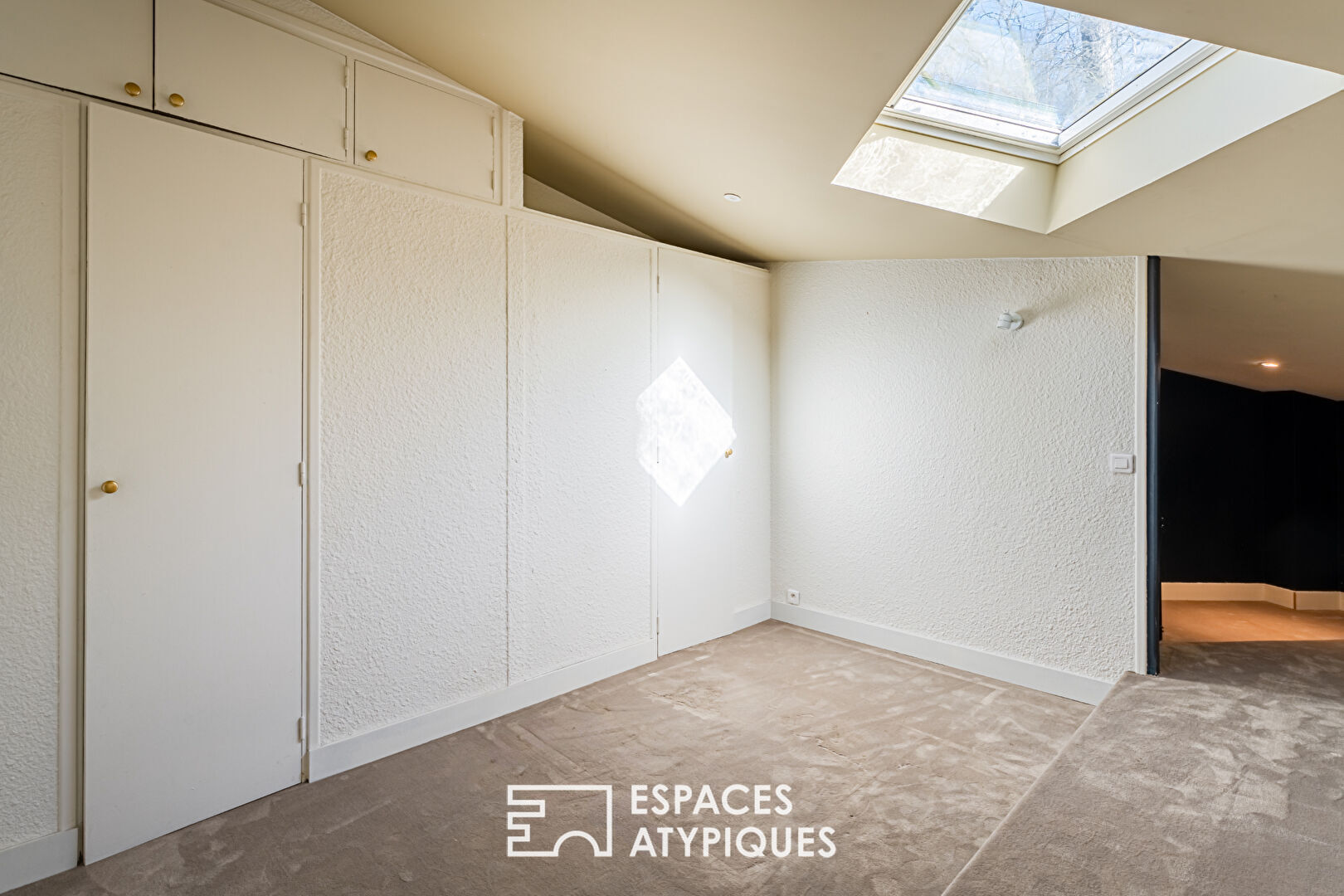 Cette étonnante maison de 253 m², lovée dans un écrin de verdure, s'est installée sur la colline la plus recherchée de Bougival. Elle se situe à seulement 5 min à pied du centre village et à seulement 15 min à pied de la gare pour la ligne L. L'entrée s'ouvre sur le lumineux séjour de 70 m², avec sa grande cheminée centrale qui souligne une belle hauteur sous plafond. La cuisine jouxte la salle à manger, qu'elle rejoint aussi par l'agréable terrasse extérieure. L'espace bibliothèque offre l'accès à la première chambre avec ses rangements, puis mène à la jolie salle de bains. La mezzanine qui surplombe cette spacieuse pièce de réception conduit à un dégagement qui distribue une salle d'eau et une chambre avec terrasse. L'escalier hélicoïdal dessert une chambre, un dressing et un bureau. En rez de jardin, accessible par une entrée indépendante, l'appartement qui développe une surface de 63 m², offre une entrée, une cuisine indépendante avec son cellier/buanderie, un double séjour, puis deux chambres qui se partagent une salle de bains. Un bureau indépendant avec sa pièce d'eau d'une surface de 15 m², un local à vélo et deux stationnements aériens complètent les prestations de ce bien. Toiture de la maison refaite en grande partie en 2020. Cette belle maison totalement atypique, extrêmement lumineuse, aux beaux volumes de réception, enveloppée dans son délicieux jardin bucolique sans vis à vis, nécessitera une jolie rénovation pour lui redonner toute la splendeur dont elle est capable, dans ce secteur particulièrement privilégié ! Gare de Bougival, à 15 min à pied, ligne L en 13 min pour la Défense Ecole EIB de la Jonchère, sections de la maternelle au Lycée. Ecoles maternelle et élémentaire à 13 min à pied. Collège Jean Moulin à Croissy sur Seine accessible par le bus ligne D en 15 min. A 86 à 3 km A13 et A14 à 7 km CLASSE ENERGIE : F / CLASSE CLIMAT : C. Montant moyen estimé des dépenses annuelles d'énergie pour un usage standard, établi à partir des prix de l'énergie de l'année 2021, 2022 et 2023 (abonnement compris) entre 6.780 et 9.220 euros Contact : Sophie 07 61 00 52 78 RSAC Versailles 832 411 144 Sophie STANDERA (EI) Agent Commercial - Numéro RSAC : 832411144 - Paris.