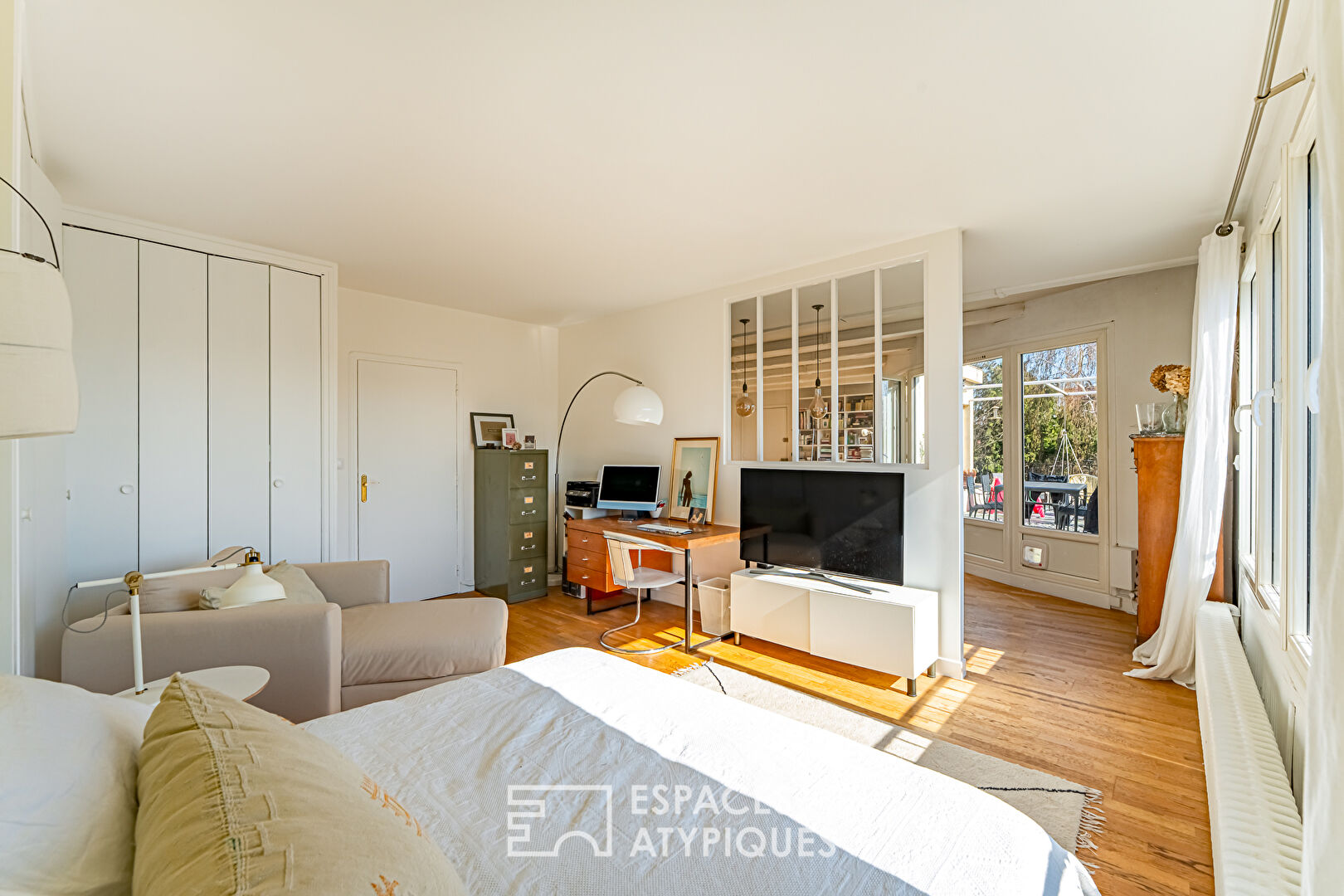 Dans le très recherché quartier Brancas à Sèvres, à proximité immédiate de la section internationale réputée pour son excellence, cette villa chargée d'histoire de 363m2 (311,9m2 habitables), fut autrefois la résidence du célèbre céramiste Taxile Doat. Aujourd'hui, elle offre l'opportunité rare de redonner vie à une demeure singulière, dans un environnement privilégié où le calme et la lumière composent un cadre de vie particulièrement inspirant. Dès l'entrée, la maison dévoile son caractère. Une entrée cathédrale impressionne par sa hauteur sous plafond et un escalier sculptural, annonçant des volumes généreux et des perspectives qui ne demandent qu'à être mises en valeur. Insoupçonnable depuis l'entrée une double réception, rythmée par un parquet ancien, une belle hauteur sous plafond offrant des perspectives encore inexploitées, une cheminée d'époque et baignée de lumière grâce aux larges ouvertures orientées sud-est côté jardin, séduira tous ceux qui aiment recevoir. Cet espace de vie offre une base remarquable pour imaginer une pièce de réception spectaculaire, ouverte vers l'extérieur. Le rez-de-chaussée accueille également deux chambres, un WC indépendant, ainsi qu'une suite parentale avec salle de bain, dressing et WC, permettant d'envisager une vie familiale confortable de plain-pied. Un escalier mène au rez-de-jardin, aujourd'hui organisé autour d'une grande pièce aménagée en cuisine et salle à manger d'été. Cet espace, directement connecté au jardin clos orienté sud-est, constitue un lieu idéal pour créer une grande cuisine familiale ouverte sur l'extérieur. Une chambre, une salle de bain, ainsi qu'un garage, une cave et une chaufferie complètent ce niveau. A l'étage, la maison réserve une surprise inattendue : un appartement baigné de lumière, largement ouvert par une baie vitrée donnant accès à une terrasse de 34,7m2, aux proportions idéales. La vue y est dégagée sur les paysages de la rive gauche de Sèvres. On imagine facilement cet espace devenir un grand lieu de réception estival, mêlant salle à manger extérieure et salon lounge pour profiter des longues soirées d'été. A l'extérieur, le jardin clos, accessible depuis deux rues, compose un écrin de verdure discret qui ne demande qu'à être réinterprété pour retrouver tout son éclat. Nécessitant aujourd'hui une rénovation complète, cette demeure offre une toile blanche exceptionnelle pour imaginer une maison familiale hors normes. Ses 7 chambres, ses volumes généreux et son histoire en font une opportunité rare pour ceux qui souhaitent créer un lieu de vie unique dans l'un des secteurs les plus recherchés de Sèvres. Une propriété inspirante, prête à entamer un nouveau chapitre de son histoire. CLASSE ENERGIE : F / CLASSE CLIMAT : F Montant moyen estimé des dépenses annuelles d'énergie pour un usage standard, établi à partir prix moyens des énergies indexés sur les années 2021, 2022, 2023 (abonnements compris) : entre 11 320 euros et 15 360 euros. Les informations sur les risques auxquels ce bien est exposé sont disponibles sur le site Géorisques : https://www.georisques.gouv.fr Contact: Matthieu: 06 13 81 26 54