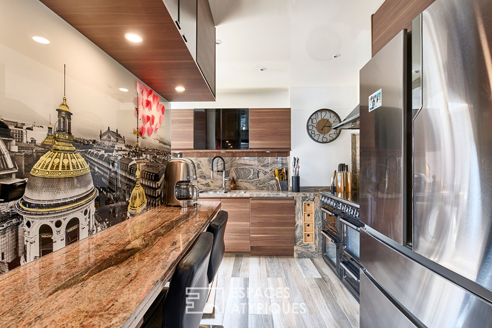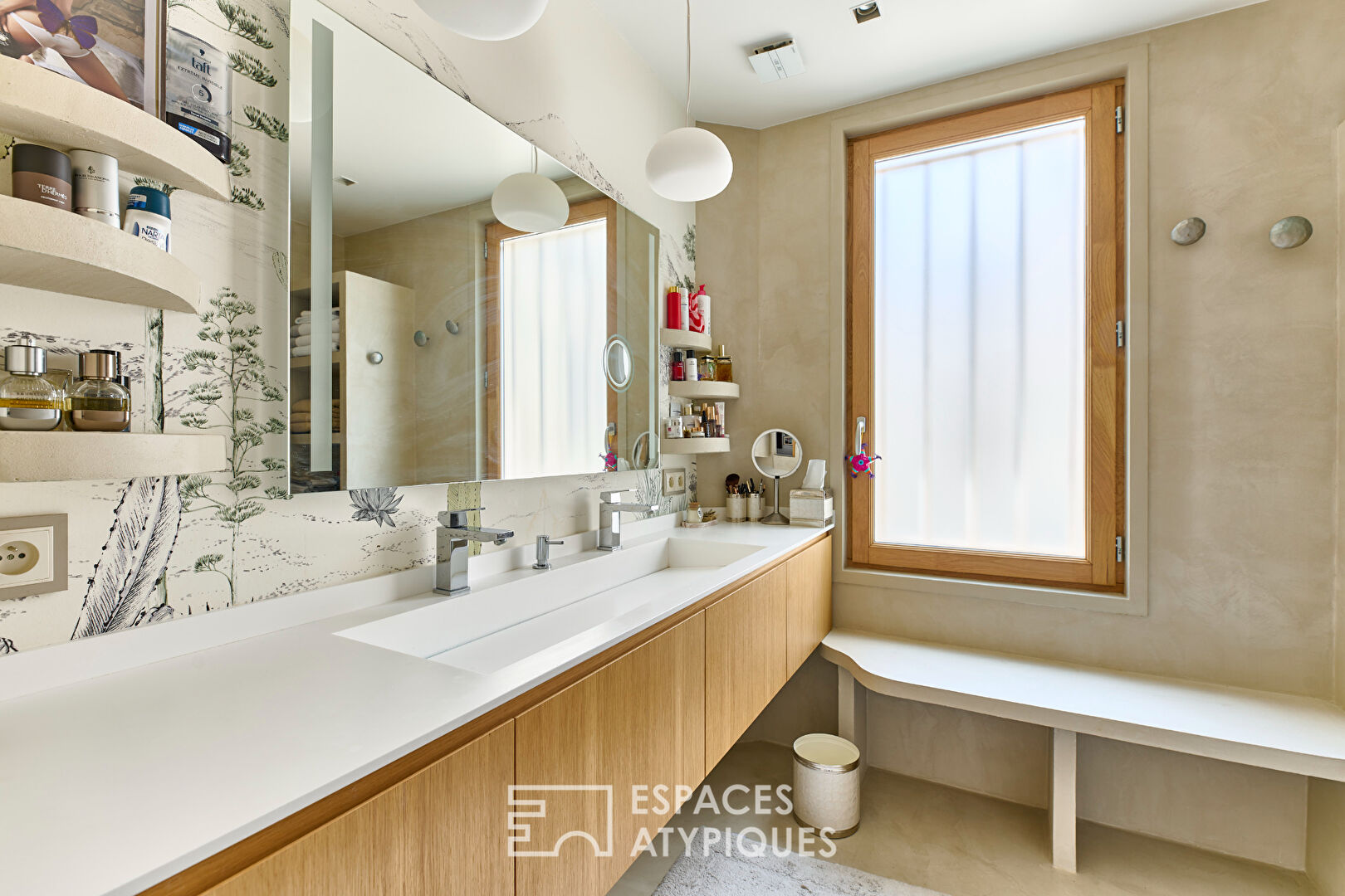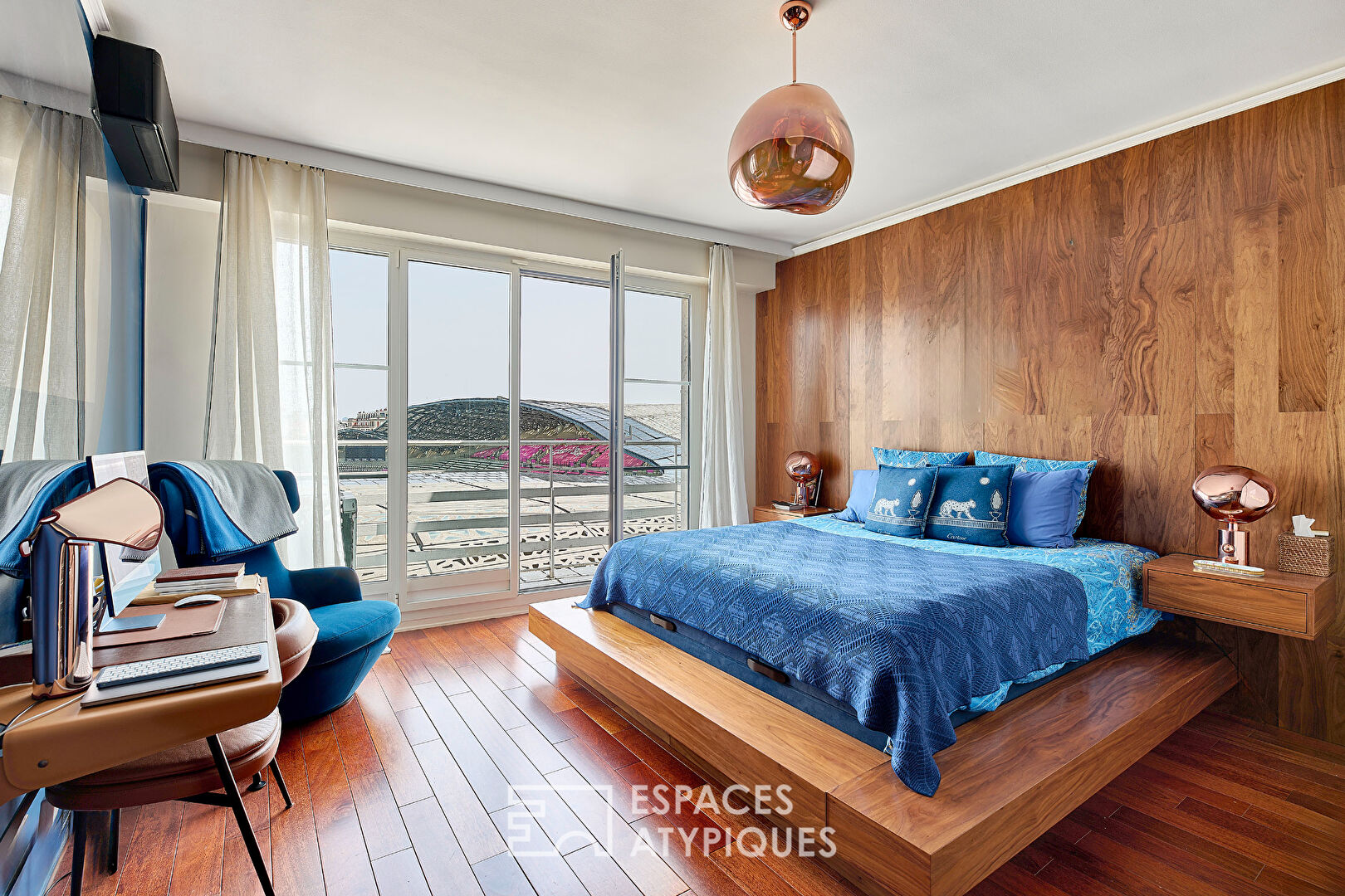 A quelques pas de l'iconique Piscine Molitor, au 6e étage par ascenseurs d'un immeuble art déco sécurisé avec gardien datant de 1933, cet élégant appartement climatisé a fait l'objet d'une rénovation haut de gamme. Il développe une surface de 138,65 m2 (137,73 m2 Carrez) avec trois balcons totalisant 9,32 m2, et bénéficie de vues dégagées ainsi que d'un ensoleillement privilégié. Dès l'entrée, une galerie aux lignes raffinées de 26,5 m2, pensée comme un véritable espace de réception avec rangements sur mesure et mini-bar, donne le ton. Elle dessert un vaste double séjour de 49 m2 baigné de lumière, sublimé par une cheminée décorative. Les encadrements de portes, au design affirmé, renforcent l'élégance de l'ensemble. Deux balcons orientés est prolongent l'espace de vie, offrant une vue imprenable sur le stade Jean Bouin rénové par l'architecte Rudy Ricciotti, ainsi que sur la porte Molitor et ses alentours arborés. La cuisine indépendante de 12 m2, réalisée sur mesure, allie esthétique et performance grâce à des équipements haut de gamme. Côté nuit, une première chambre de plus de 19 m2 avec placards dressing intégrés profite d'un lit surélevé conçu sur mesure, et d'un troisième balcon sans vis-à-vis. Une seconde chambre de 12,5 m2, exposée ouest sur cour, fait actuellement office de vaste dressing sur mesure. La salle d'eau de 7 m2, inspirée des hammams orientaux, crée une parenthèse apaisante. Deux toilettes séparées, une cave saine de 7 m2 et un chauffage collectif complètent les prestations de ce bien soumis au régime de copropriété. Métro Porte de Saint-Cloud (Ligne 9) Contact : Evrard +33 6 85 36 76 69 Copropriété de 24 lots - dont 24 lots habitation. Charges annuelles : 6598 euros. Evrard LAROUSSE (EI) Agent Commercial - Numéro RSAC : 843 067 737 - PARIS.
