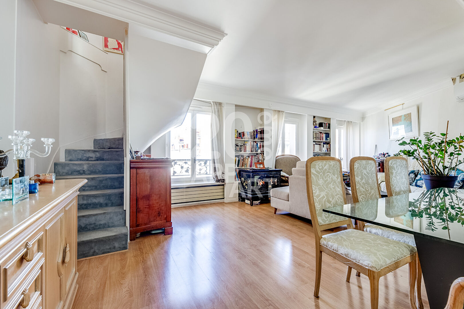 Appartement d'exception de 120 m² au sol, en duplex aux 3ème et 4ème étages (dernier étage), traversant Est Ouest et baigné de lumière toute la journée, avec magnifique terrasse de 35 m² offrant une vue dégagée et au calme sur le parc de Ménilmontant, superbe pièce de vie de 45 m² avec cuisine ouverte, trois chambres dont une suite matrimoniale de 23 m² avec salle de bain ouverte, deux autres chambres de 12 m² et 15 m², toutes avec accès direct à la terrasse, seconde salle de bain indépendante et dressing, appartement ensoleillé du matin au soir avec couchers de soleil exceptionnels et espace extérieur idéal pour recevoir, chauffage central au gaz, climatisation réversible, DPE C, faibles charges, bien rare sur le marché. (4.00 % honoraires TTC à la charge de l'acquéreur.) Copropriété de 20 lots - dont 15 lots habitation.