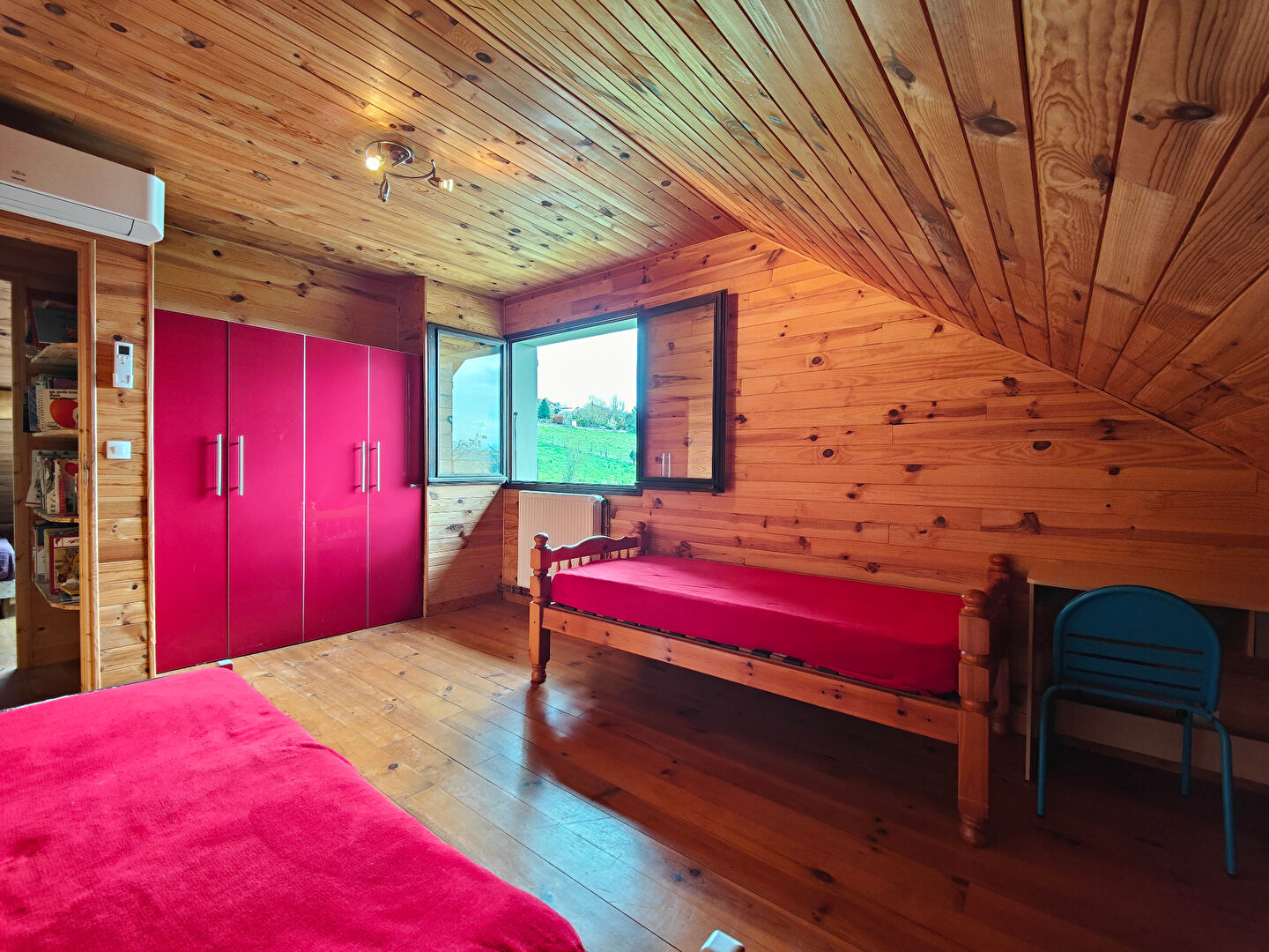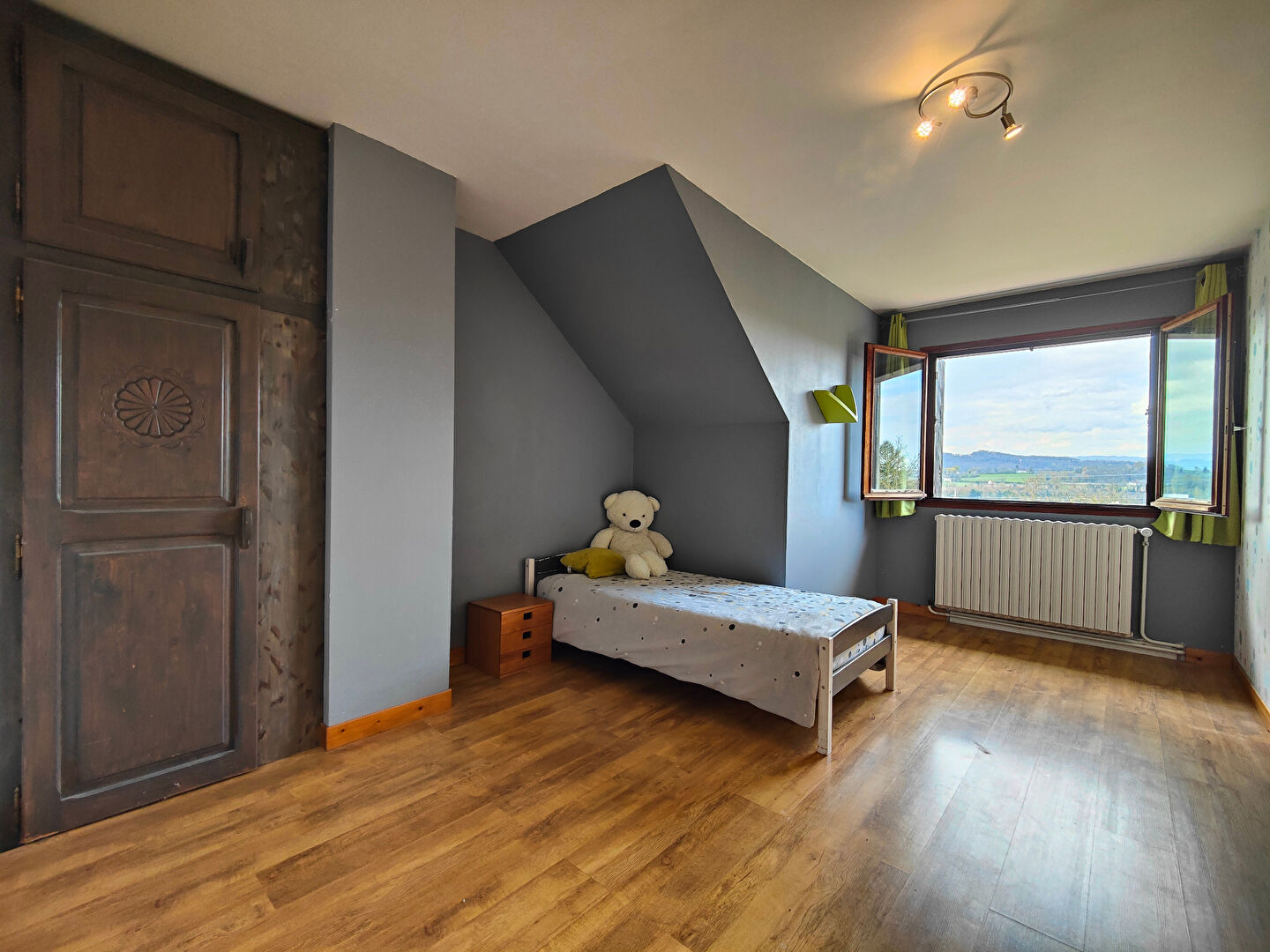 Maison lumineuse des années 80, rénovée en 2013 aux normes pour recevoir une famille d'accueil, édifiée sur un sous-sol complet et implantée sur un terrain de 1 200 m² offrant une vue dégagée. Rez-de-chaussée : Une entrée avec placard dessert une cuisine équipée récemment installée, ainsi qu'un séjour agrémenté d'un poêle à bois. L'espace nuit comprend deux chambres, dont l'une dispose d'un espace douche et l'autre d'un balcon avec accès direct au jardin. Salle d'eau indépendante, espace buanderie et WC complètent ce niveau. Une porte permet l'accès au sous-sol, composé d'une chaufferie, de deux garages et d'un espace de rangement. A l'étage : Un dégagement dessert trois chambres avec placards intégrés, deux bureaux utilisés comme chambre, ainsi qu'un WC indépendant. A l'extérieur : Une cour partiellement goudronnée mène à un vaste jardin arboré entourant la maison. Celui-ci offre une terrasse couverte avec cuisine d'été équipée, une piscine en cour de traitement, de 8 x 4 m équipée d'un abri coulissant et d'un espace douche. On y trouve également un potager et un espace de jeux pour les enfants. Points positifs : - Système de chauffage PAC air/air + chaudière fioul - Tranquillité - Nombreuses chambres 5 + 2 - Maison pratique - Panneaux solaire, rapport : environ 1000 euros/an Elodie DEVAUX (EI) Agent Commercial - Numéro RSAC : 930 872 288 - Vienne.