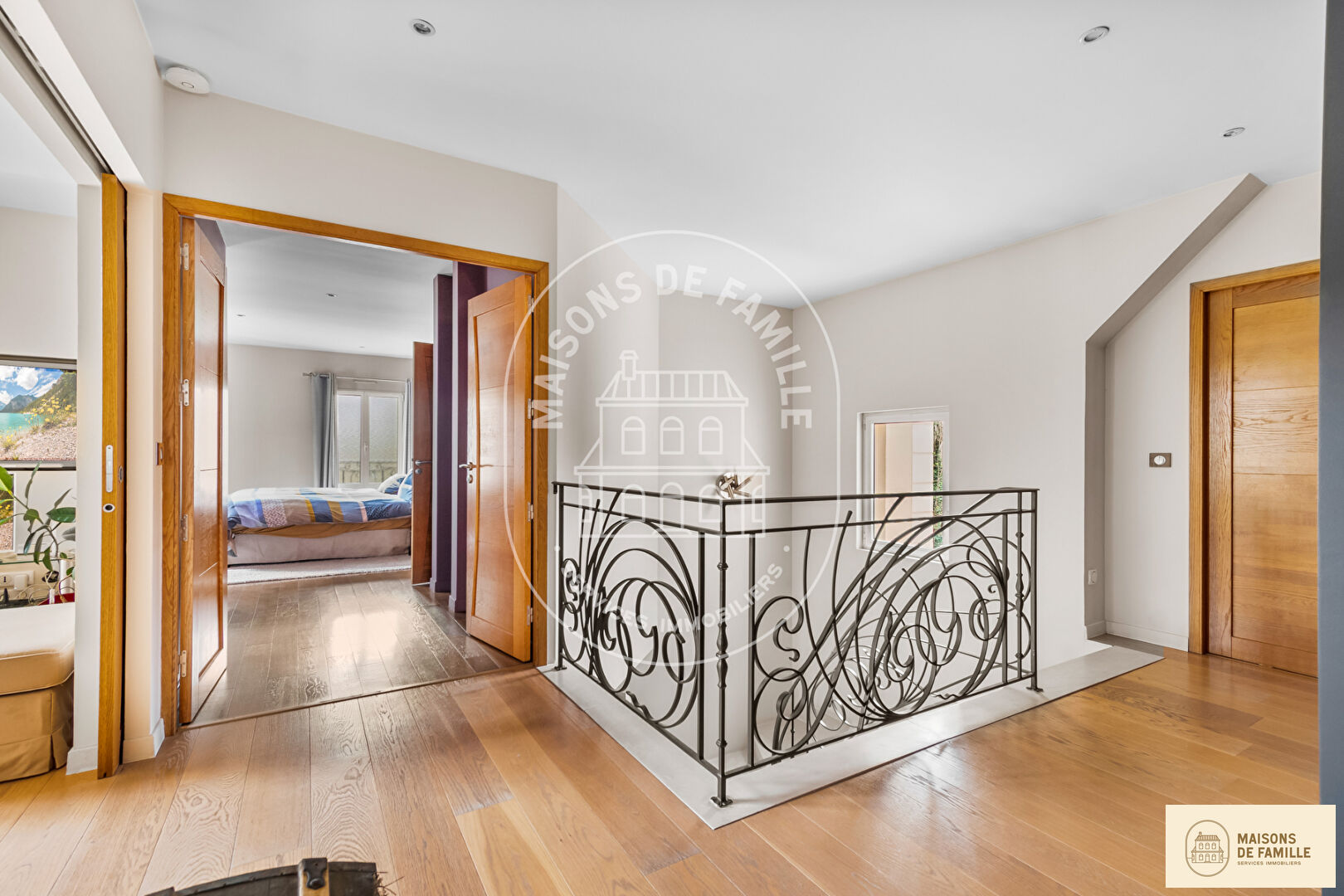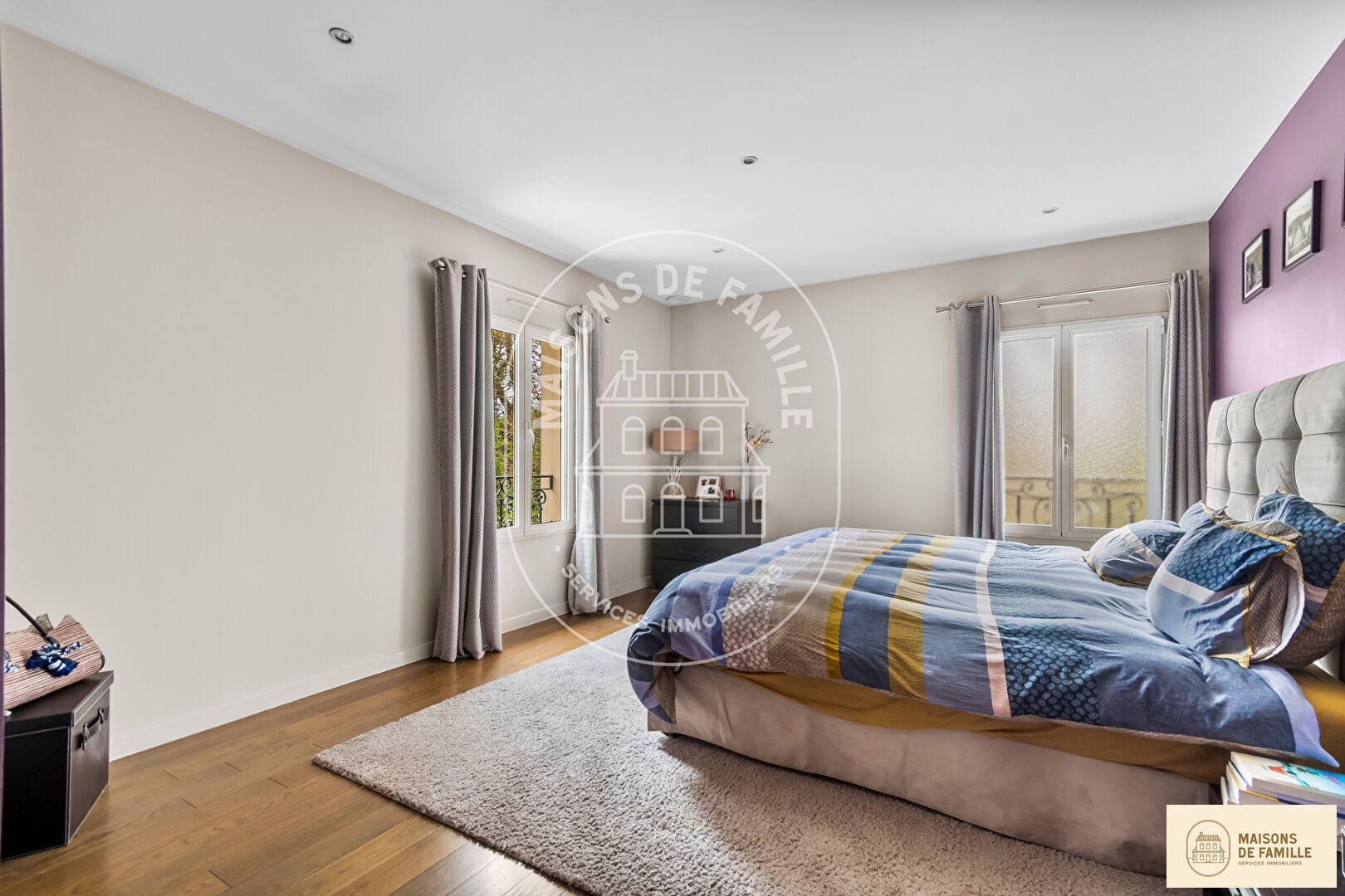 Exclusivité - Maisons de Famille Immobilier, l'expert de la vente de maisons dans l'Ouest parisien. Située à l'abri des regards, dans l'un des environnements résidentiels les plus prisés de Chatou, à la lisière immédiate du Vésinet, venez découvrir Aurélia, cette remarquable propriété contemporaine de 307m² avec sous-sol total, édifiée en 2007 sur un joli terrain arboré de 1683m², dans un véritable écrin végétal offrant une intimité absolue et une atmosphère paisible, à seulement quelques minutes des commodités et des accès vers Paris. Au rez-de-chaussée : une belle entrée ouvre sur un vaste double séjour traversant, baigné de lumière et prolongé par une terrasse exposée plein sud. S'y ajoutent une belle salle à manger , une cuisine dinatoire indépendante en chêne, entièrement équipée et dotée de son cellier attenant. Une suite parentale avec salle d'eau et WC privatifs, une lingerie ainsi qu'un WC invité complètent ce niveau. A l'étage : un large dégagement dessert une agréable salle télé ouvrant sur un balcon dominant le jardin, une spacieuse suite parentale avec dressing, salle de bains (douche à l'italienne et baignoire balnéo), une seconde suite avec salle d'eau et WC, ainsi qu'une chambre en duplex organisée en deux pièces. Enfin une cinquième chambre, une salle de bains commune avec douche et baignoire, et un WC indépendant. Le tout est accompagné d'un sous-sol total de 160m² avec une belle hauteur sous plafond qui comprend un grand garage, une chaufferie et de nombreux espaces de rangements. Une propriété rare, destinée aux acquéreurs en quête de discrétion, d'élégance et d'un cadre de vie privilégié aux portes de la capitale. Contact 7/7j Cédric 06.34.09.06.77 (2.80 % honoraires TTC à la charge de l'acquéreur.)