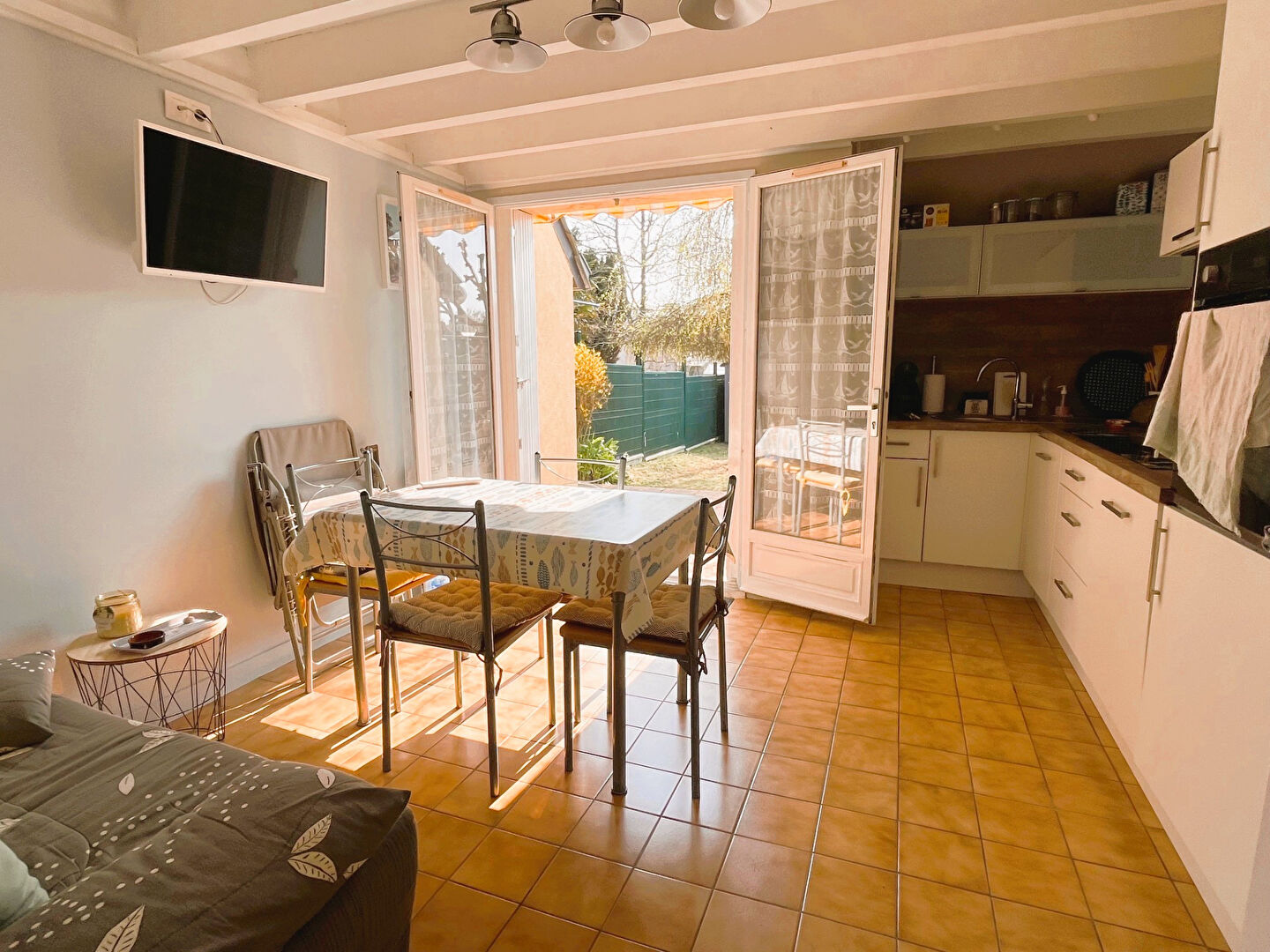 Dans une petite résidence au calme RDC : entrée, pièce de vie, coin cuisine, salle de douche avec wc. Etage : palier avec 2 chambres. Jardinet - Terrasse - Abri de jardin - Parking - Cellier. (4.76 % honoraires TTC à la charge de l'acquéreur.) Copropriété de 12 lots - dont 12 lots habitation. Charges annuelles : 412 euros.