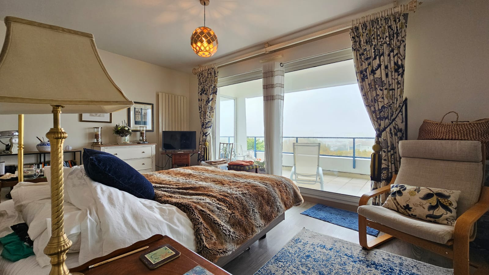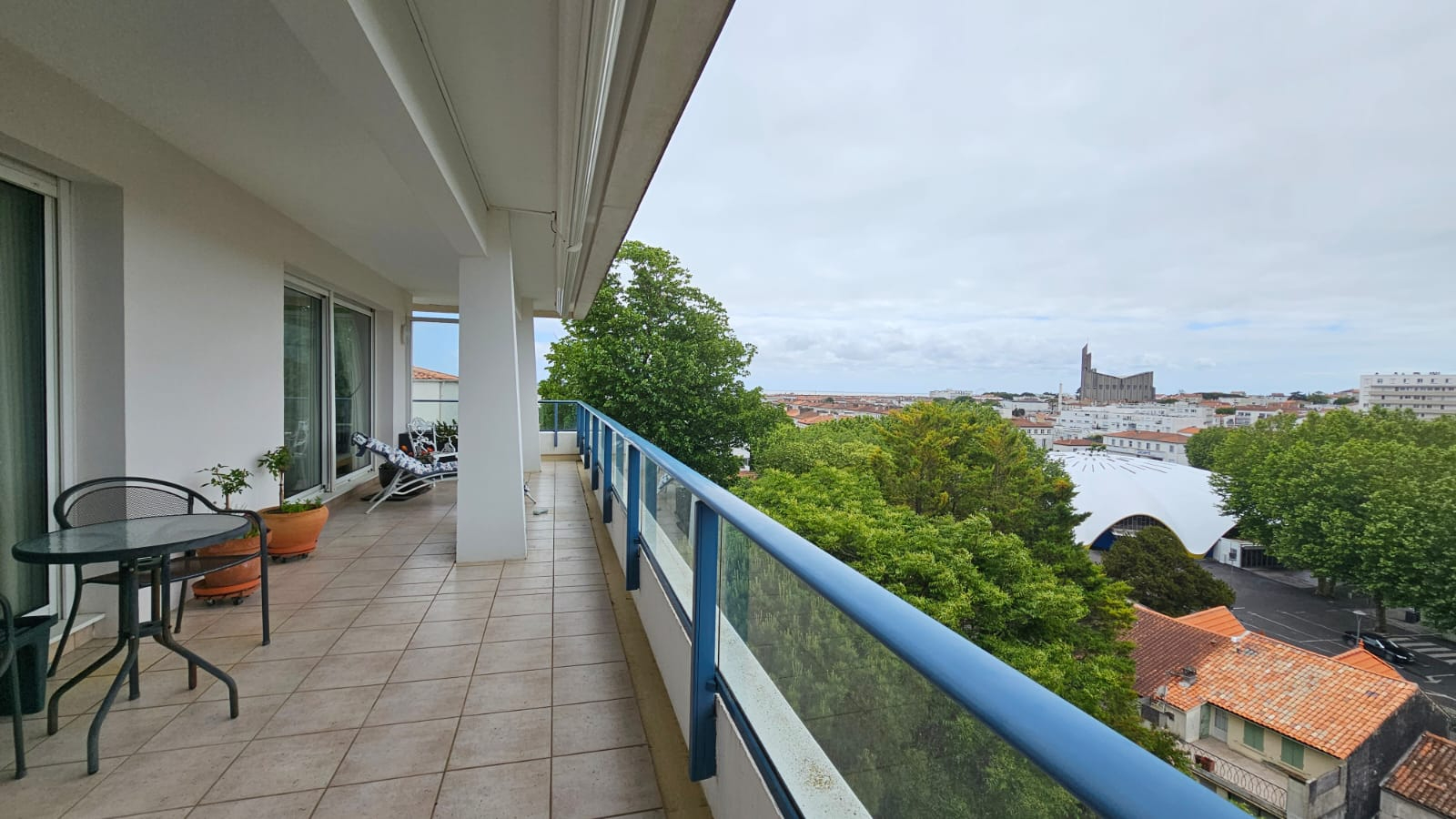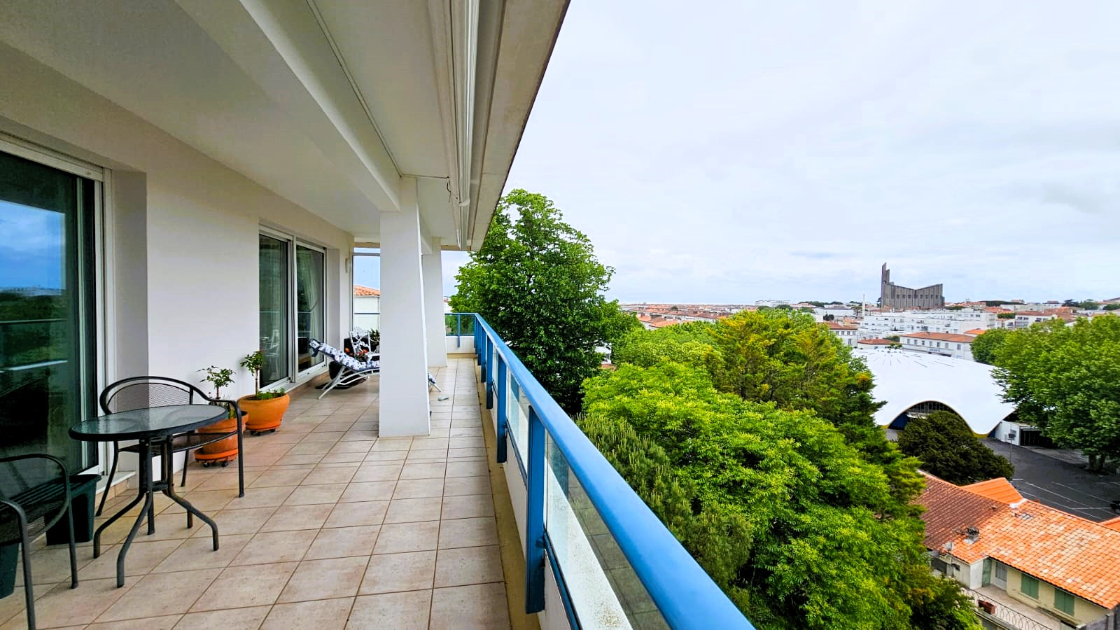 niché au 5e étage d'une résidence de standing sécurisée avec ascenseur, à seulement 150 mètres du Marché Central et des commerces du centre-ville de Royan, et à 750 mètres de la plage de la Grande Conche. Cet appartement traversant de 110 m2, baigné de lumière, offre une vue dégagée sur les toits de la ville, l'église Notre-Dame, le Marché Central et un bel aperçu mer. Le hall d'entrée avec placard dessert un séjour de plus de 40 m2, avec cuisine semi-ouverte, donnant sur une terrasse de 55 m2 exposée sud-ouest, véritable prolongement du séjour, idéale pour bronzer, dîner entre amis ou simplement admirer les couchers de soleil avec la mer à l'horizon. L'espace nuit comprend deux chambres dont une avec placard ouvrant chacune sur balcon filant, une salle d'eau, des WC, un espace parental composé d'un dégagement avec placard, d'une salle d'eau et d'une chambre avec placard ouvrant sur terrasse avec vue dégagée sur la ville de ROYAN son Marché Central et son Église. Cet appartement, avec sa vue panoramique, dispose également d'une cave avec électricité (éclairage et prises) ainsi que d'un grand garage pouvant accueillir une voiture et des deux-roues tout en offrant un grand espace de rangement. Le garage est également alimenté en électricité, ce qui permet l'ajout d'une prise renforcée pour recharger une voiture hybride ou électrique. (4.38 % honoraires TTC à la charge de l'acquéreur.) Copropriété de 83 lots - dont 30 lots habitation. Charges annuelles : 3936 euros.