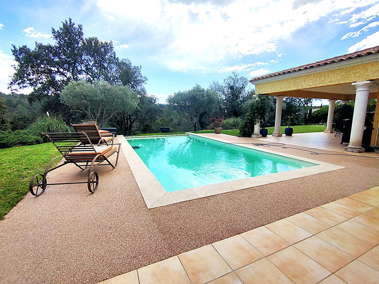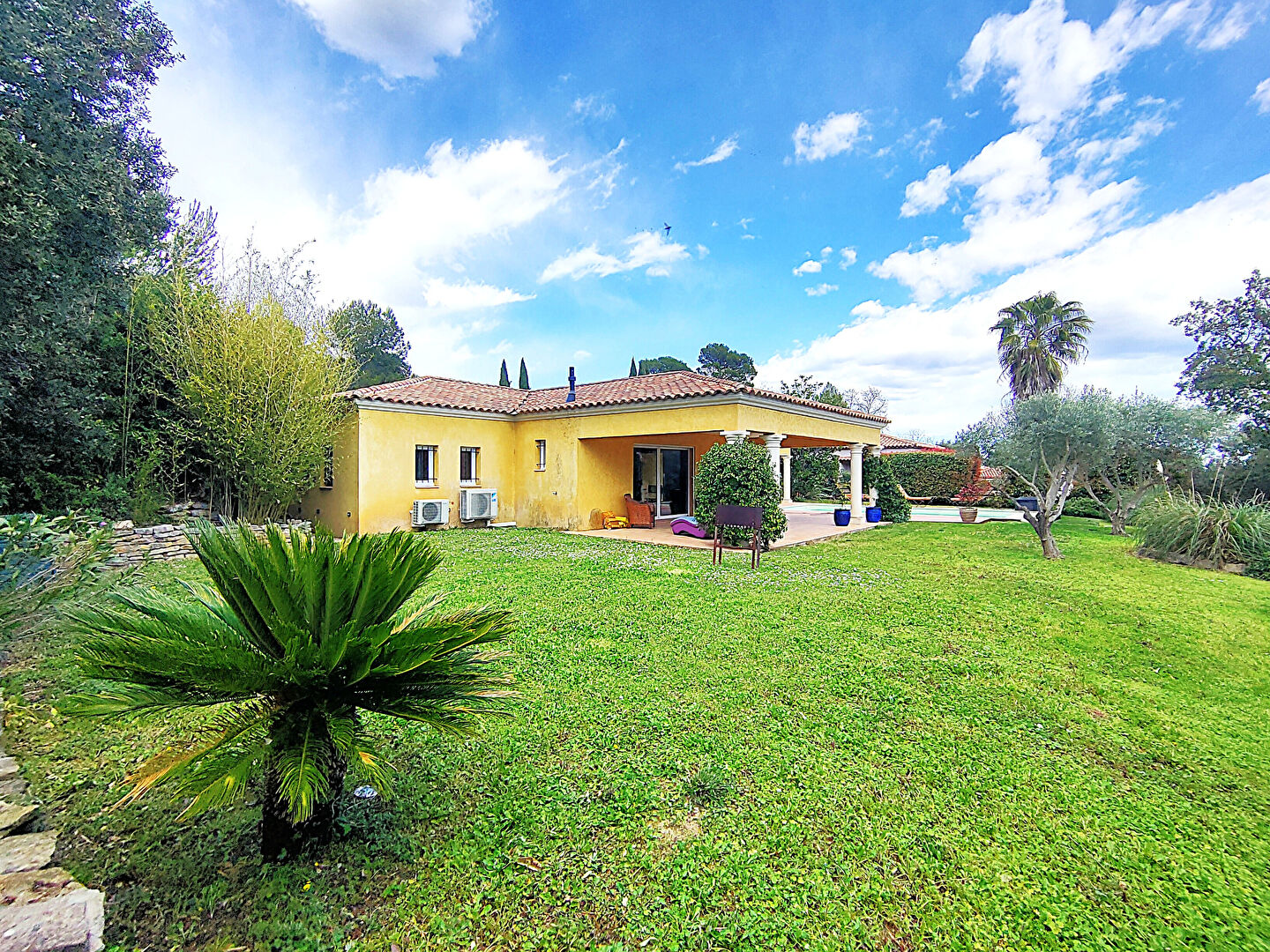A vendre avec vos agences SWEET HOME, dans le joli village de Flassans sur Issole, belle maison de plain-pied de type 4 de 119m² en très bon état général. Située dans un environnement privilégié, sur une parcelle de 1648m², cette villa, exposée sud, propose un espace de vie de 54m² climatisé (plus poêle à granules) avec sa cuisine équipée, trois chambres (dont une avec dressing, salle d'eau et W.C.), une salle de bains et un W.C. indépendant. Un garage avec une pièce supplémentaire complètent l'ensemble. Piscine 8x4 entretenue et sécurisée (fonctionnement au sel), grande terrasse. A visiter sans tarder ! Laurent RENERIC (EI) Agent Commercial - Numéro RSAC : 940829732 - Draguignan.