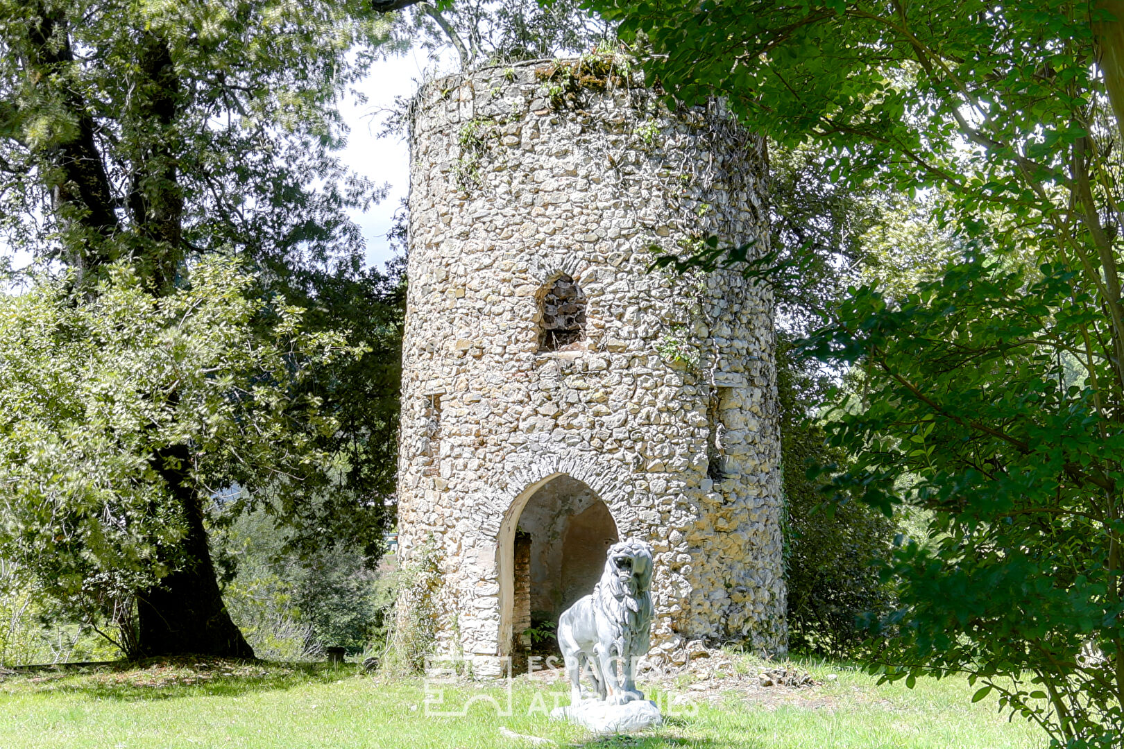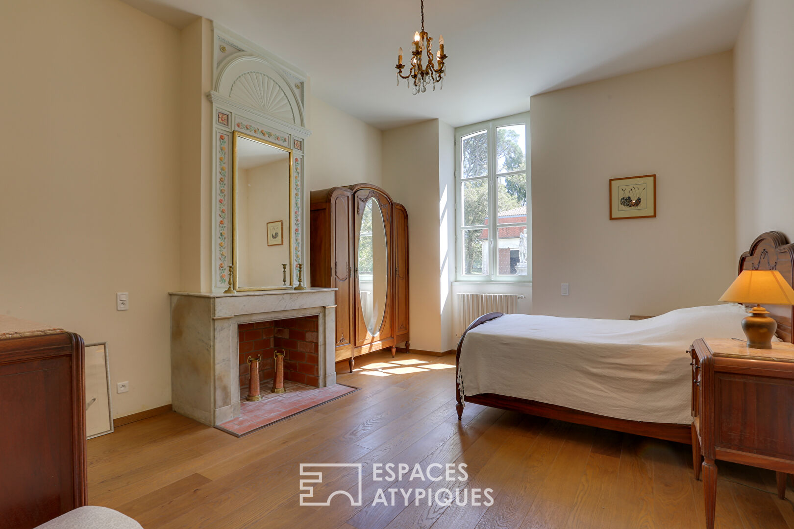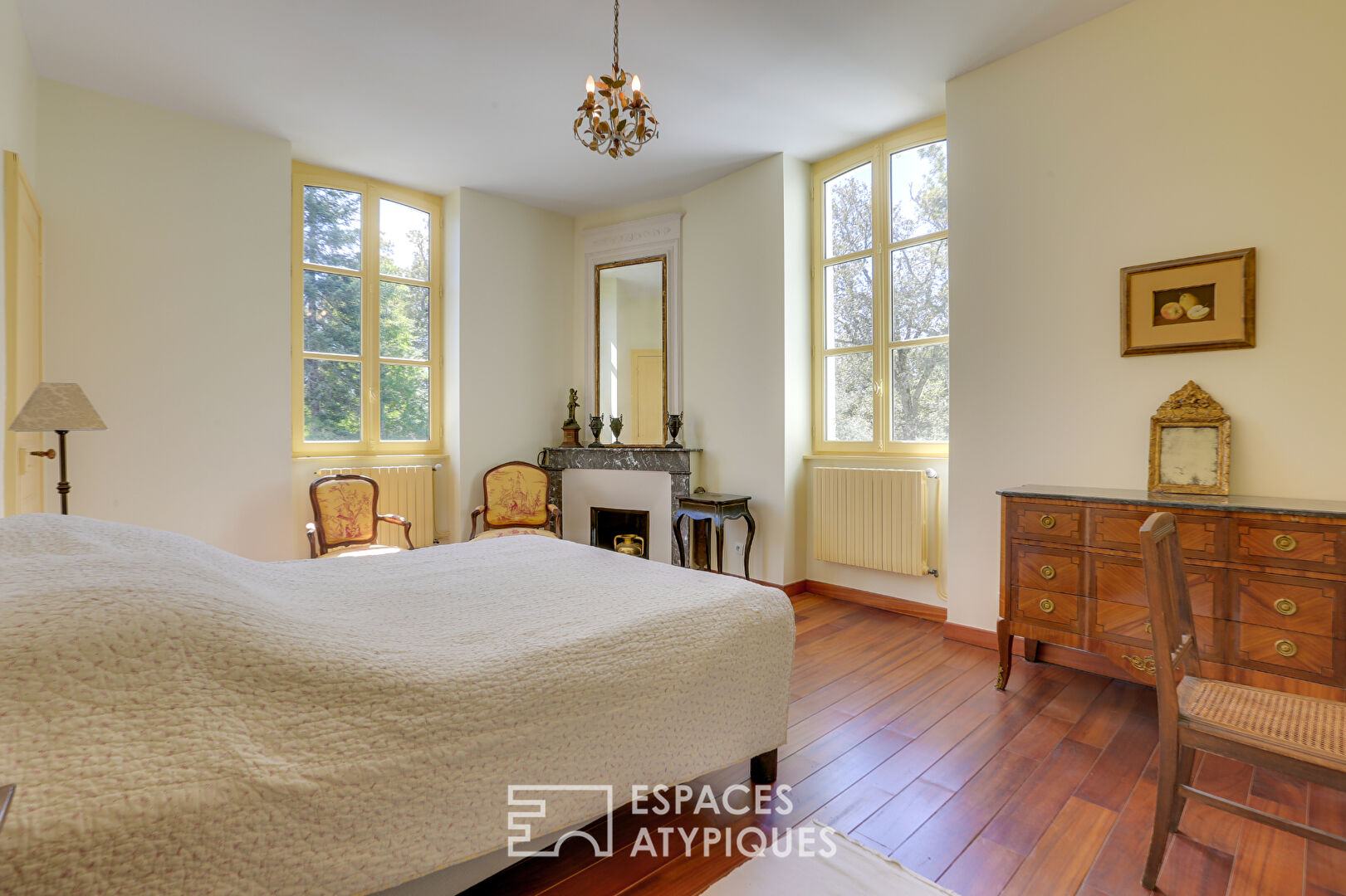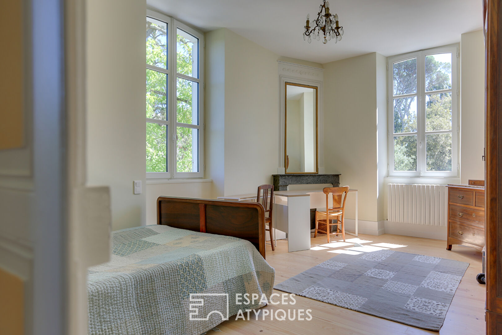 Érigée en 1863, cette élégante maison de maître s'apparente à un petit château, implantée au coeur d'un parc arboré de plus de 4,5 hectares. Avec ses 408 m² habitables, elle incarne le charme intemporel des demeures historiques. Le rez-de-chaussée accueille de vastes pièces de réception baignées de lumière, où cheminées anciennes, boiseries d'époque et carreaux de ciment créent une atmosphère raffinée. La cuisine familiale complète cet espace de vie convivial. Un escalier majestueux mène aux étages supérieurs, où plusieurs chambres confortables se déploient. Le deuxième étage abrite un grenier entièrement aménageable, offrant un potentiel supplémentaire remarquable. A l'extérieur, le parc dévoile une grande variété d'essences, ponctué par une chêneraie et un ancien château d'eau en pierre d'antan. La piscine chauffée, parfaitement intégrée dans son environnement, promet de précieux moments de détente en toute saison. De très vastes dépendances viennent compléter l'ensemble, laissant place à de multiples usages, qu'ils soient privés ou professionnels. Une authentique maison landaise avec son chai, à rénover, apporte une dimension patrimoniale et un potentiel de projet supplémentaire. Ce domaine unique conjugue élégance architecturale, nature préservée et possibilités d'aménagement infinies. Véritable refuge hors du temps, il séduira les amoureux de demeures de caractère en quête d'un lieu de vie d'exception au coeur des Landes. CLASSE ENERGIE : C CLASSE CLIMAT : C Montant moyen estimé des dépenses annuelles d'énergie pour un usage standard, établi à partir des prix de l'énergie de l'année 2025 : entre 4600 euros et 6280 euros. Contact au Donechay ANTHEAUME 06 15 32 72 13 RSAC n°849 648 704 Dax Donechay ANTHEAUME (EI) Agent Commercial - Numéro RSAC : 849 648 704 - Dax.