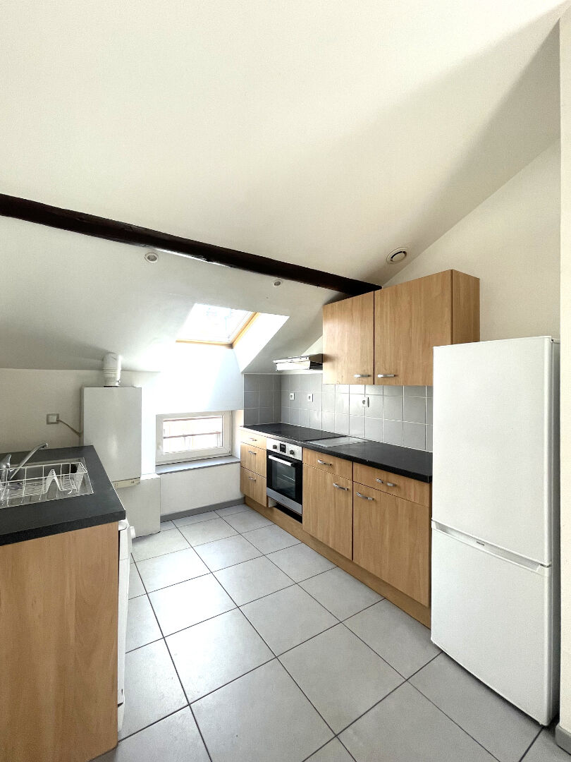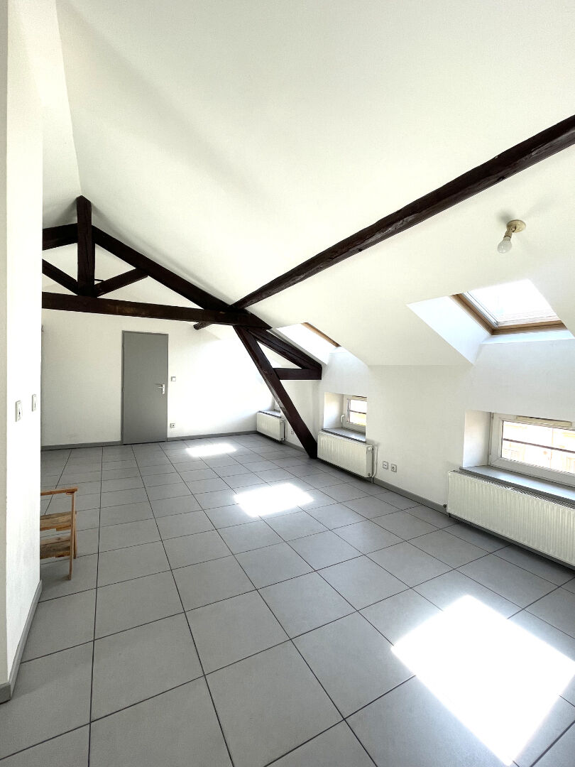 73 rue Jeanne d'Arc à Nancy, situé entre la gare et des termes, à proximités des commerces, un appartement en dernier étage, comprenant un salon spacieux et lumineux, une cuisine équipée ouverte ( plaques de cuisson, hotte, four, réfrigérateur-congélateur, lave vaisselle) , 3 chambres, coin buanderie, salle de bains avec baignoire et double vasque, un wc séparé, idéal pour une colocation mais peut également convenir à une famille. chauffage individuel gaz. disponible le 30 juin