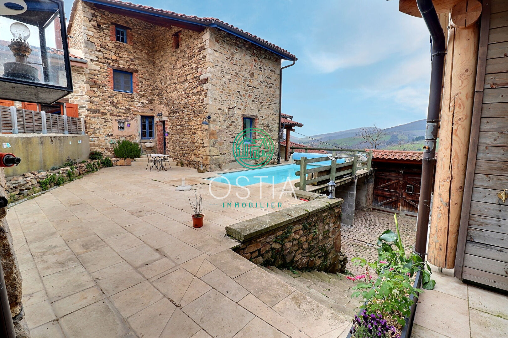 Dans petit hameau sur la commune de DOIZIEUX, bel ensemble immobilier en pierres comprenant : - Maison principale d'habitation (env.130m²) avec cuisine indépendante, séjour ouvert sur terrasse avec vue panoramique, 3 chambres, SDB / WC + combles aménagés (4ème chambre + salle d'eau / WC) Sous-sol à usage de garage et chaufferie (chaudière fuel) - Maison secondaire rénovée en 2007 et comprenant : vaste hall d'entrée, lumineuse pièce à vivre avec belle hauteur sous plafond (4m), chambre, salle d'eau / WC Accès direct sur terrasse couverte avec jacuzzi Chauffage PAC Piscine 6.5m x 4m avec belle vue dégagée Cadre bucolique, assainissement individuel 349 000 euros honoraires inclus charge vendeur Contactez Vincent TRABONA 06 82 71 10 11, agent commercial immatriculé au RSAC ST ETIENNE 482 048 766 04 77 52 88 80 www.ostiaimmobilier.fr Les informations sur les risques auxquels ce bien est exposé sont disponibles sur le site Géorisques : www.georisques.gouv.fr