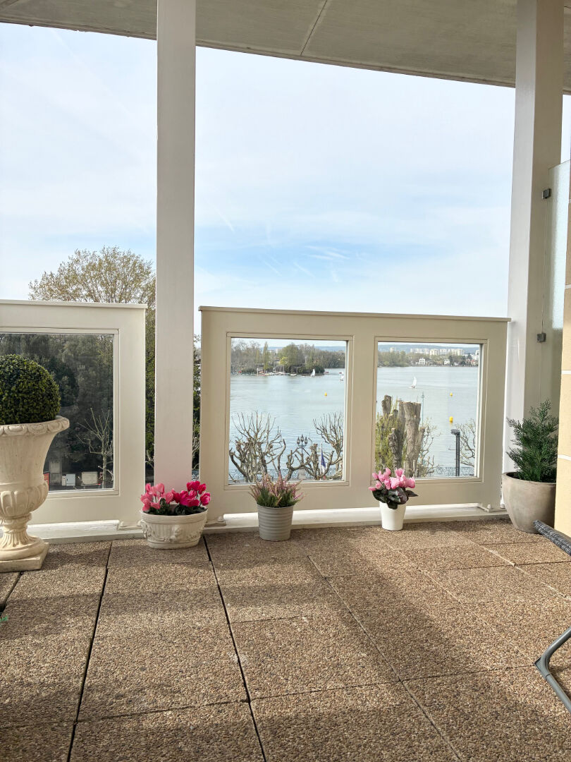 Au dernier étage d'un bel immeuble récent parfaitement entretenu avec ascenseur, magnifique appartement totalement rénové récemment bénéficiant d'une triple exposition (est, sud et ouest) et d'une superbe vue sur le lac et vous offrant : entrée avec placards, double séjour donnant accès à 3 terrasses, grande cuisine équipée avec salle à manger, 3 grandes chambres avec placards dont une suite parentale avec salle de bains privative, salle d'eau et 2 wc. Le tout avec une cave, un double box côte à côte et une place de parking en sous-sol. Un emplacement de rêve pour cet appartement rare !!! (3.48 % honoraires TTC à la charge de l'acquéreur.) Copropriété de 91 lots - dont 24 lots habitation. Charges annuelles : 2700 euros.