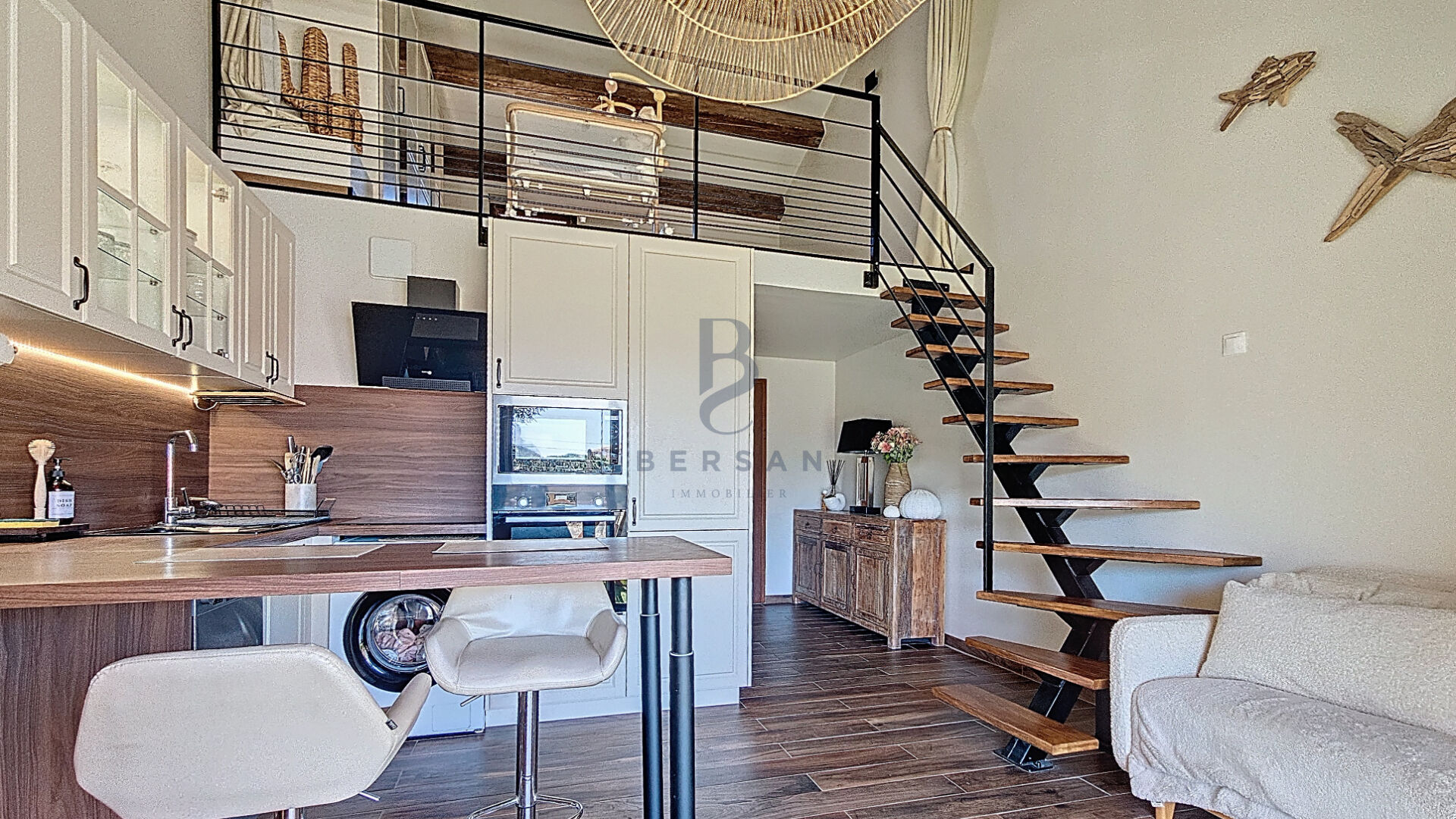 BERSAN Immobilier vous propose en EXCLUSIVITÉ ce T2 en duplex situé au coeur de Port Fréjus , à proximité immédiate des commerces et de la mer Situé au dernier étage, cet appartement entièrement rénové offre un cadre de vie agréable, avec une atmosphère chaleureuse et des prestations soignées Il se compose d'un espace de vie avec cuisine aménagée et équipée, ainsi que d'une chambre en mezzanine, apportant du caractère et une belle optimisation des volumes L'ensemble a été rénové avec des matériaux de qualité et vendu entièrement meublé, permettant une installation immédiate ou un investissement locatif Une place de parking privative complète ce bien Un appartement fonctionnel, bien situé et prêt à vivre, idéal en résidence secondaire ou pour un projet locatif L'équipe BERSAN Immobilier reste à votre disposition pour tout renseignement complémentaire ou organiser une visite Copropriété de 24 lots - dont 12 lots habitation. Charges annuelles : 615.4 euros.