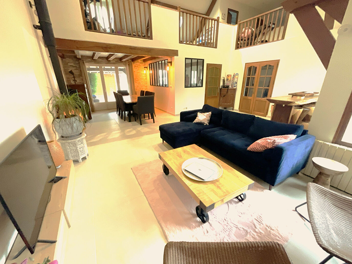 Nouveauté en Exclusivité ! A 6 min du Centre Village de Voisins le Btx - Idéalement située et AU CALME, COUP DE COEUR ASSURE pour cette SPACIEUSE maison familiale INDIVIDUELLE de 220 m² au sol (202 m² hab) en PARFAIT ETAT sur une très belle parcelle de plus de 1500 m² de terrain avec VUE DEGAGEE, SANS VIS A VIS ! L'entrée avec placard dessert un magnifique séjour semi-cathédrale de près de 50 m² avec poêle à bois récent, grande cuisine dinatoire équipée, 2 chambres (dont une suite parentale avec dressing et salle d'eau), wc séparés et accès au garage attenant de plus de 42 m². A l'étage, vous disposerez d'une mezzanine pouvant servir de bureau ou salle de jeux, 3 chambres supplémentaires, salle de bains, salle d'eau, buanderie et wc. Nombreux rangements. Piscine extérieure chauffée. Belle terrasse avec cabanon "bar d'extérieur" et brasero. Possibilité de garer jusqu'à 6 véhicules sur la propriété. De multiples possibilités d'exploitation. Rare sur le secteur.. Faites vite ! (4.00 % honoraires TTC à la charge de l'acquéreur.)