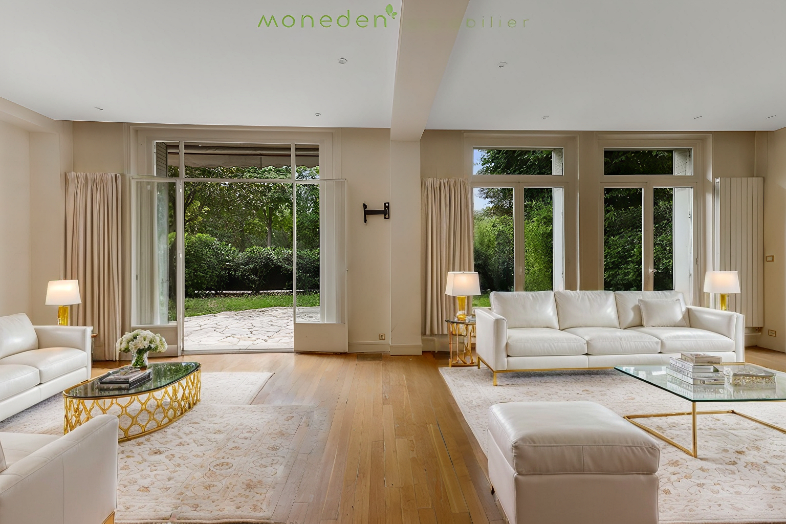 Neuilly-sur-Seine -Maurice Barrès Appartement d'exception de 250 m² avec jardin privatif exposé sud, face au Bois de Boulogne. Triple réception lumineuse (80 m², HSP 3m), 3 chambres ou 4+ bureau, dressings, cuisine équipée, salle de bain, salle d'eau. Studio et chambre de service avec accès indépendant (ou reliés). 3 caves. Possibilité d'un double box en sus du prix au sous-sol. Face au Bois de Boulogne, volumes exceptionnels et jardin plein sud ! un bien à réinventer dans une copropriété de standing. Prestige, volumes et adresse rare! Copropriété de 103 lots. Charges annuelles : 11256 euros.